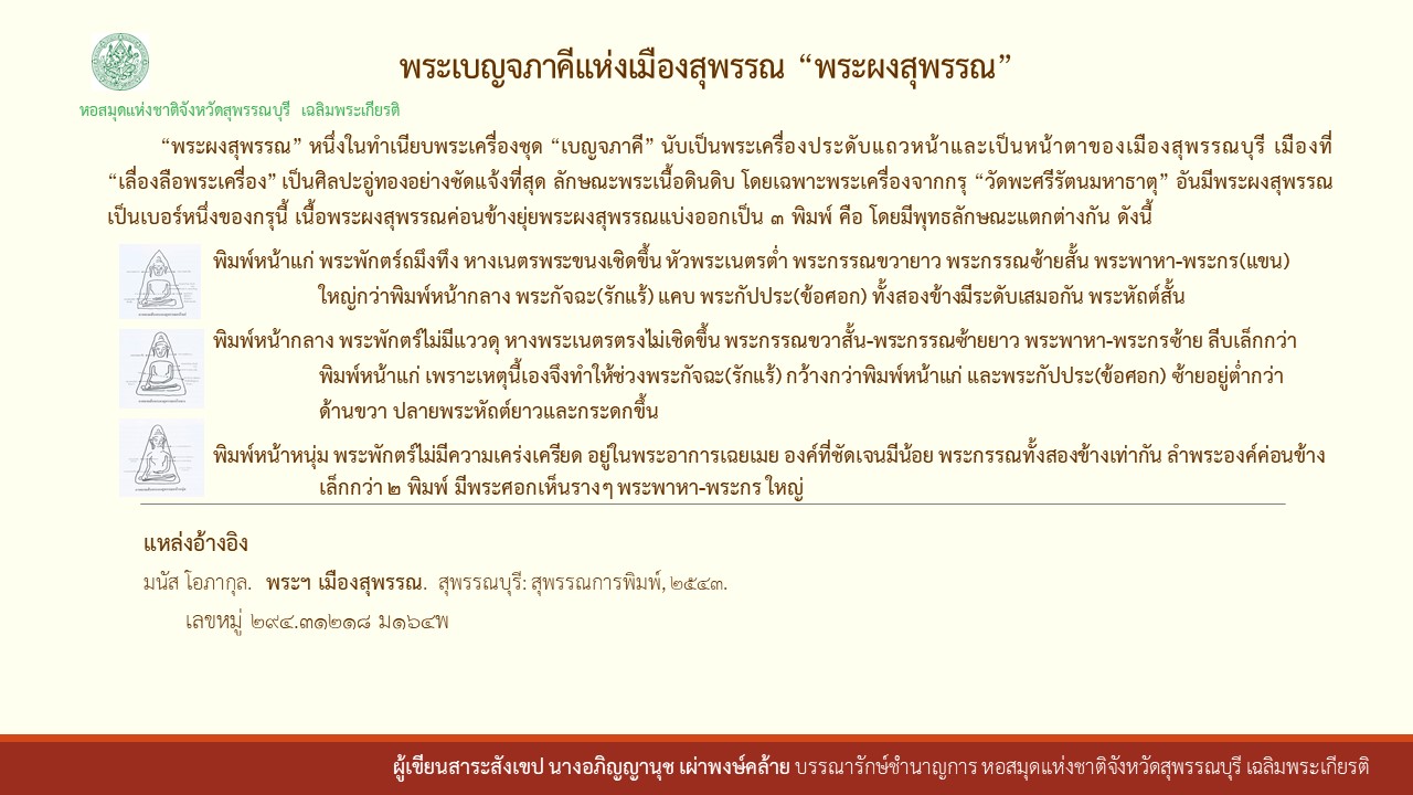 องค์ความรู้สุพรรณบุรี เรื่อง พระเบญจภาคีแห่งเมืองสุพรรณ "พระผงสุพรรณ"