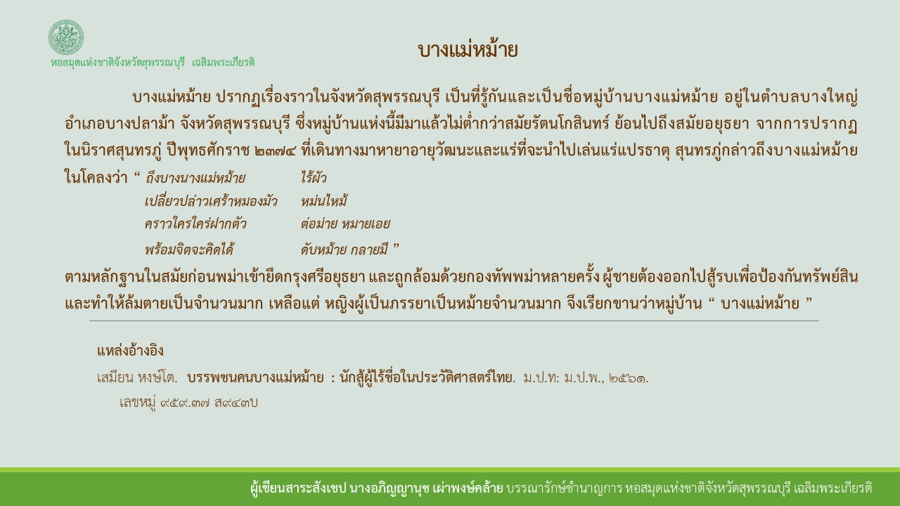 องค์ความรู้สุพรรณบุรี เรื่อง บางแม่หม้าย