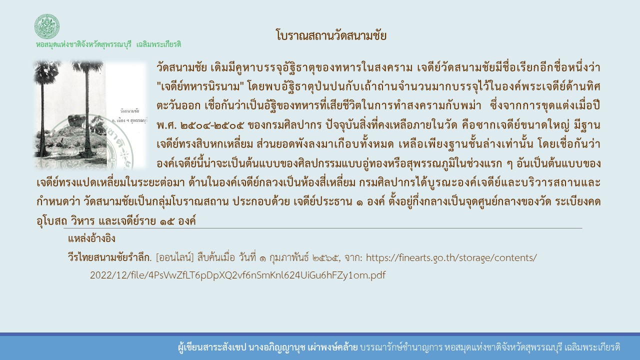 องค์ความรู้สุพรรณบุรี เรื่อง โบราณสถานวัดสนามชัย