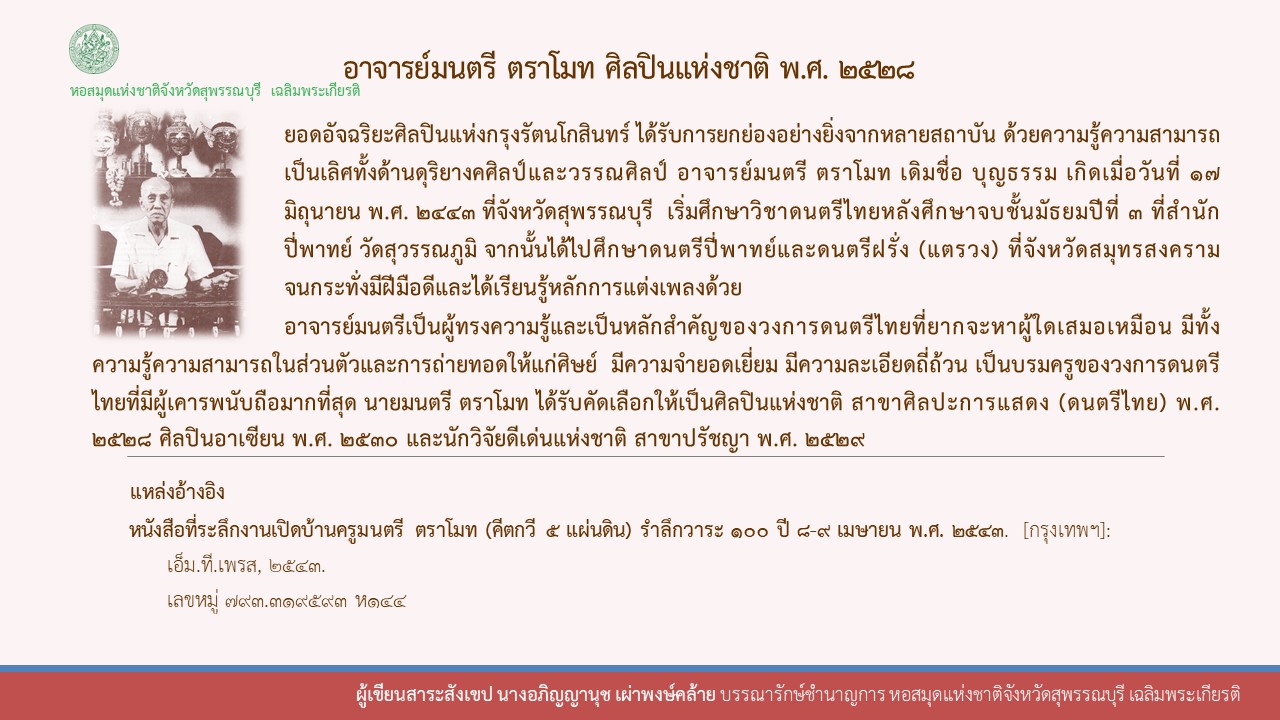 องค์ความรู้สุพรรณบุรี เรื่อง ครูมนตรี ตราโมท ศิลปินแห่งชาติ ปี พ.ศ.๒๕๒๘