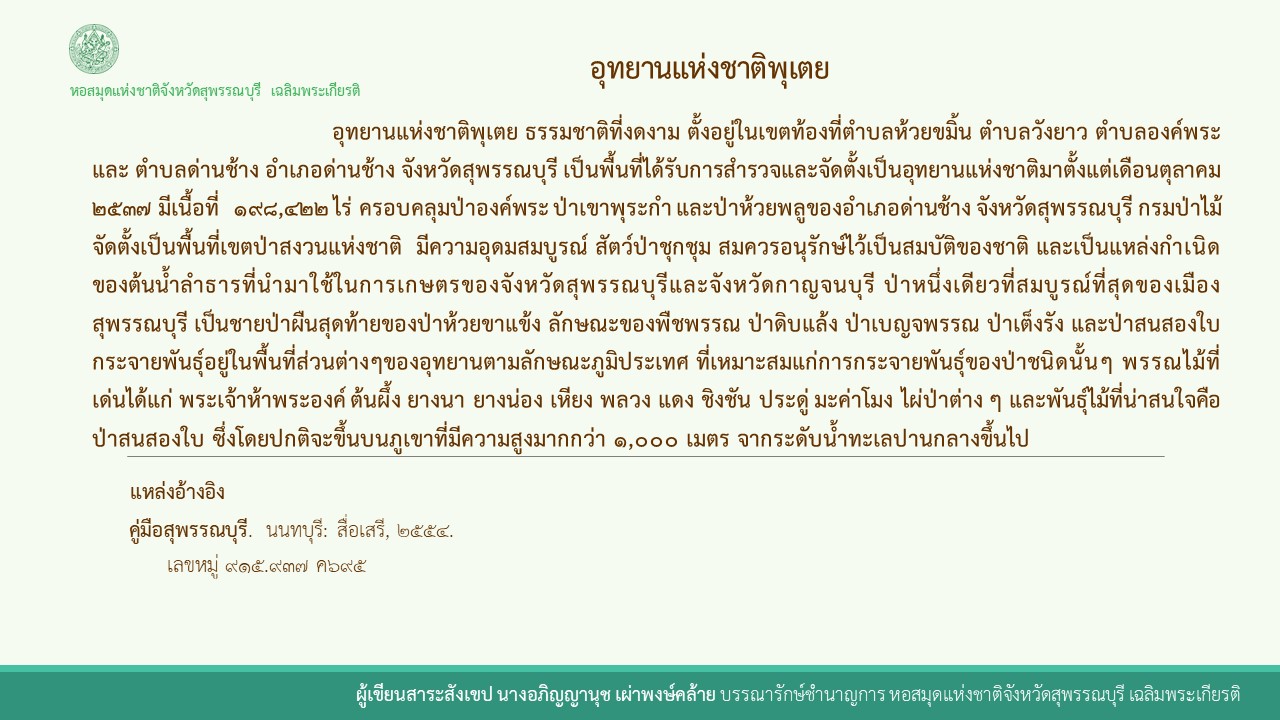 องค์ความรู้สุพรรณบุรี เรื่อง อุทยานแห่งชาติพุเตย