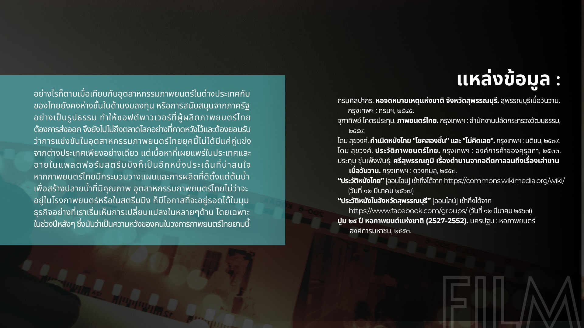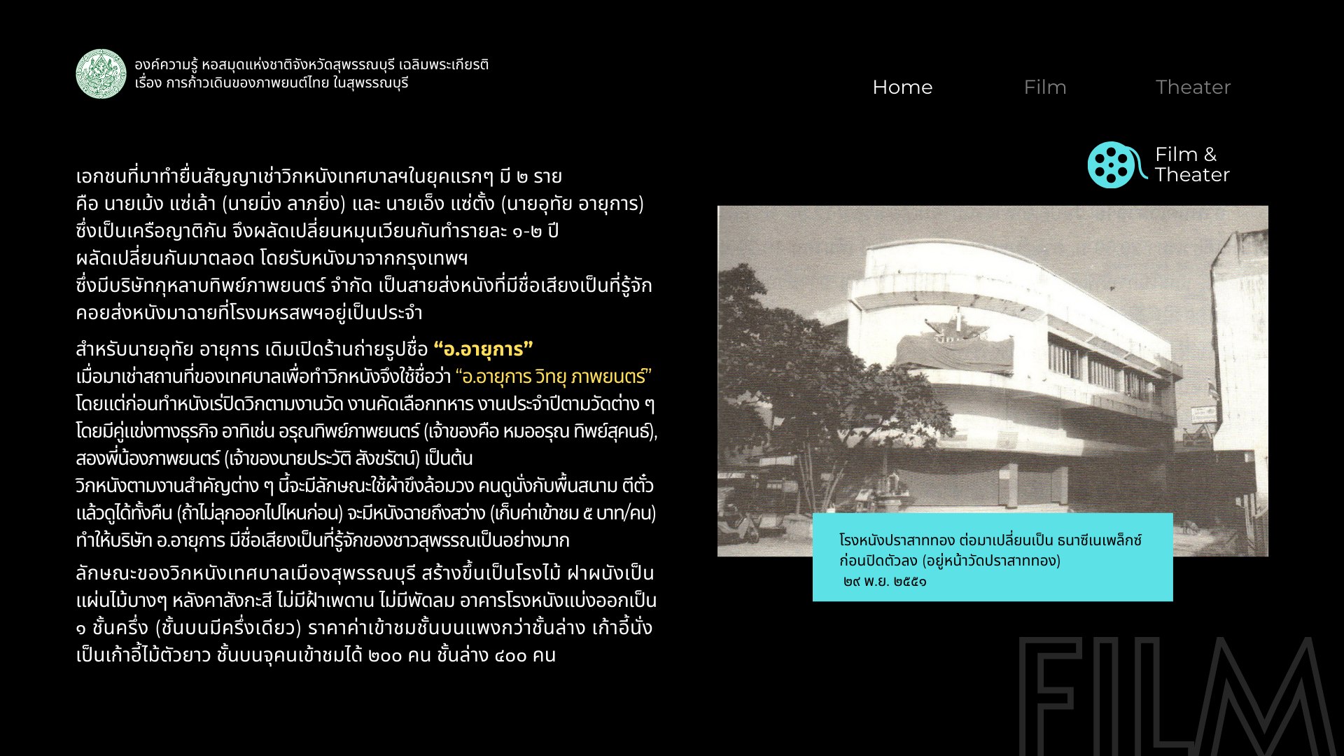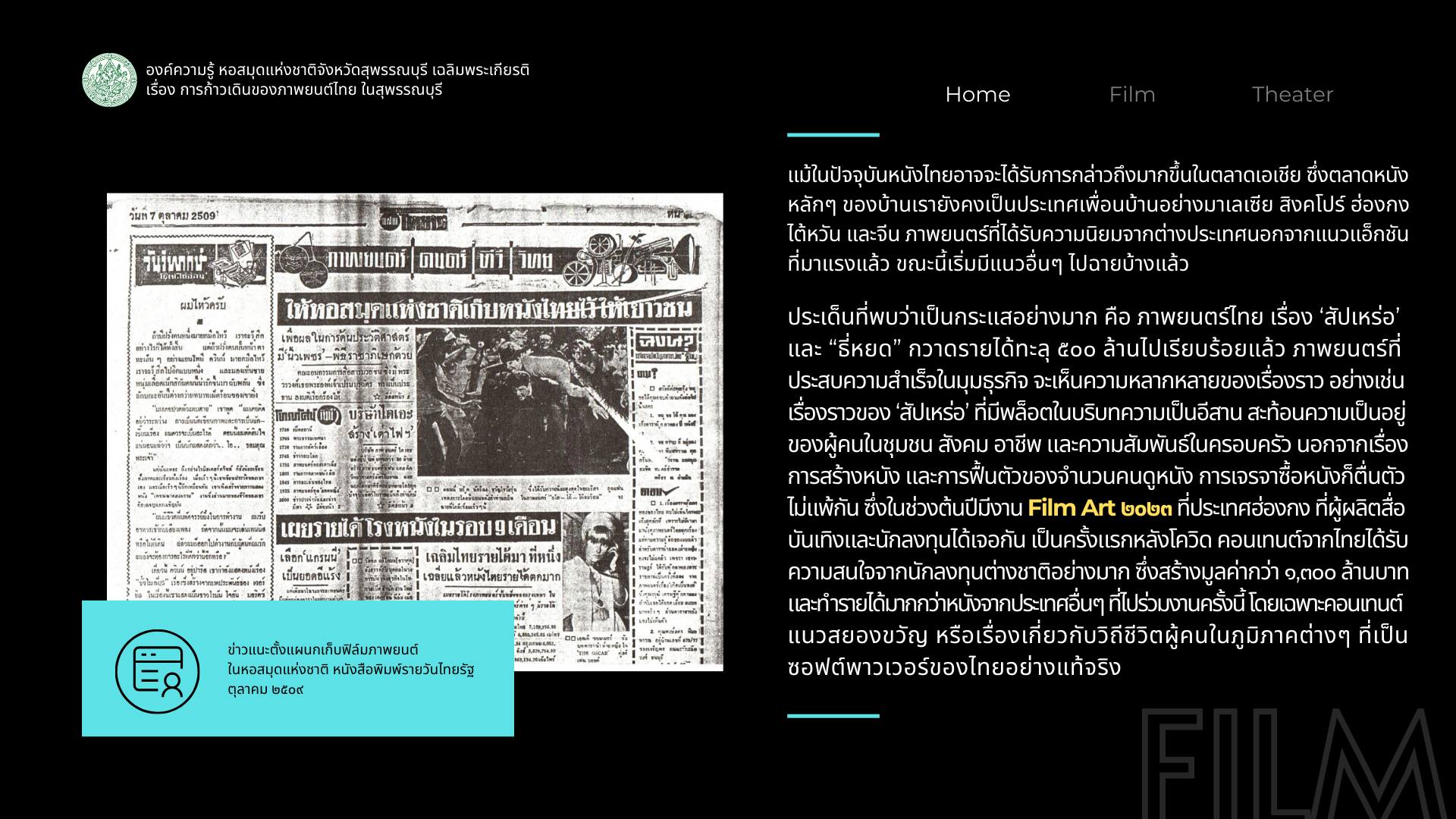 องค์ความรู้ เรื่อง การก้าวเดินของภาพยนตร์ไทยในสุพรรณบุรี