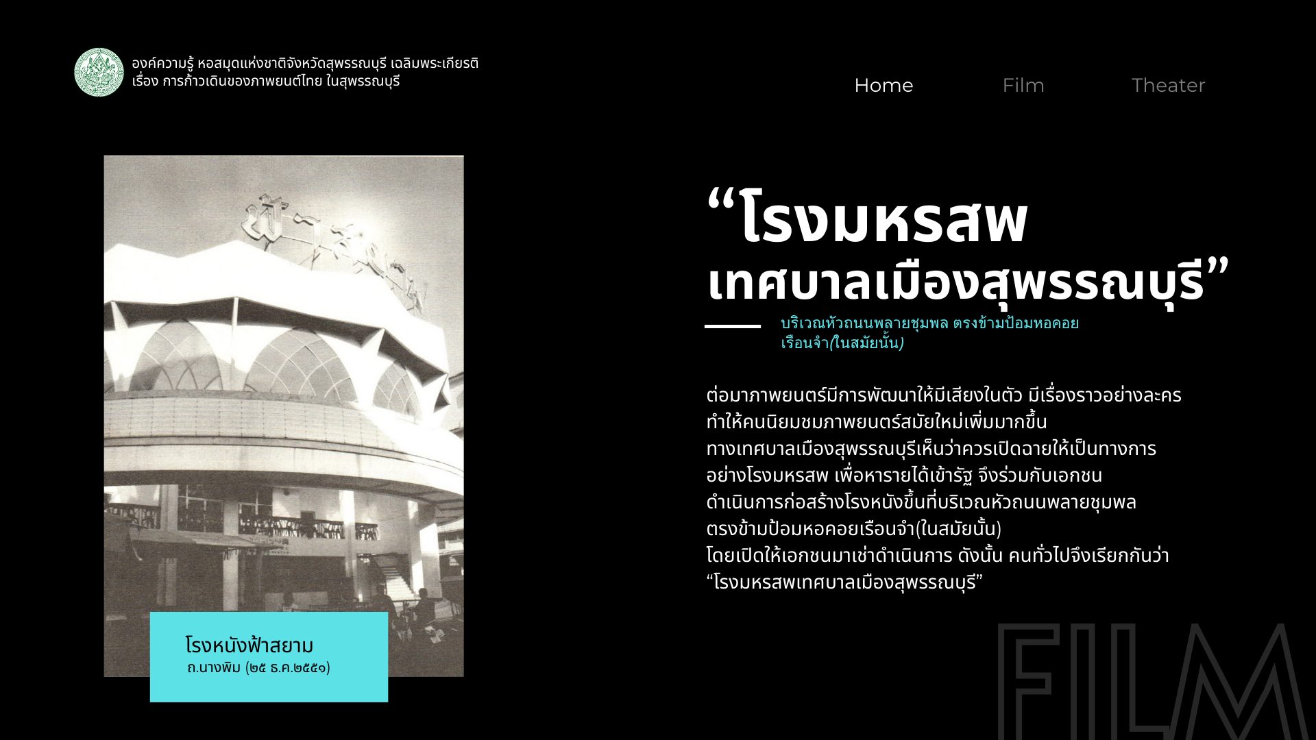 องค์ความรู้เรื่อง การก้าวเดินของภาพยนตร์ไทยในสุพรรณบุรี