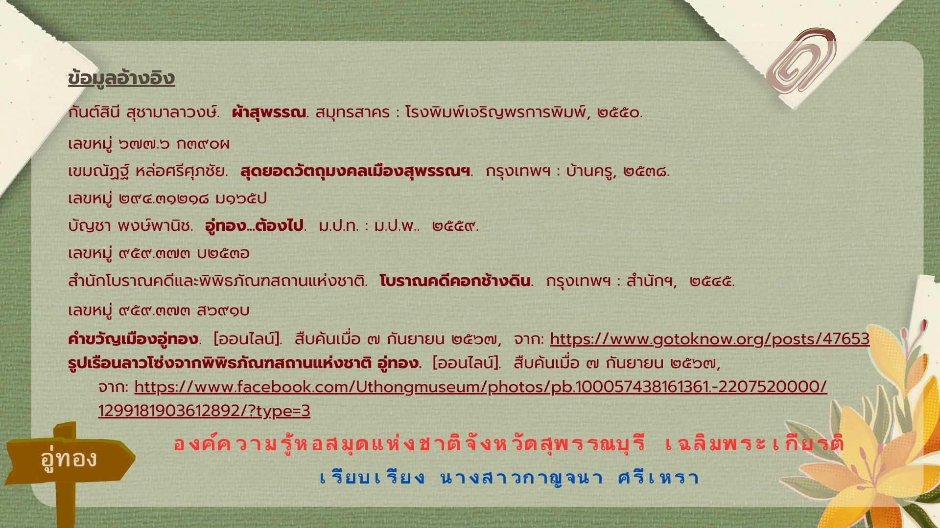 องค์ความรู้ เรื่อง คำขวัญ "เมืองอู่ทอง"