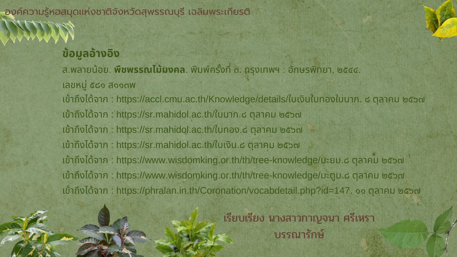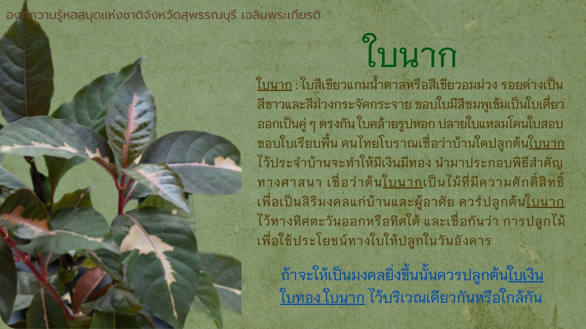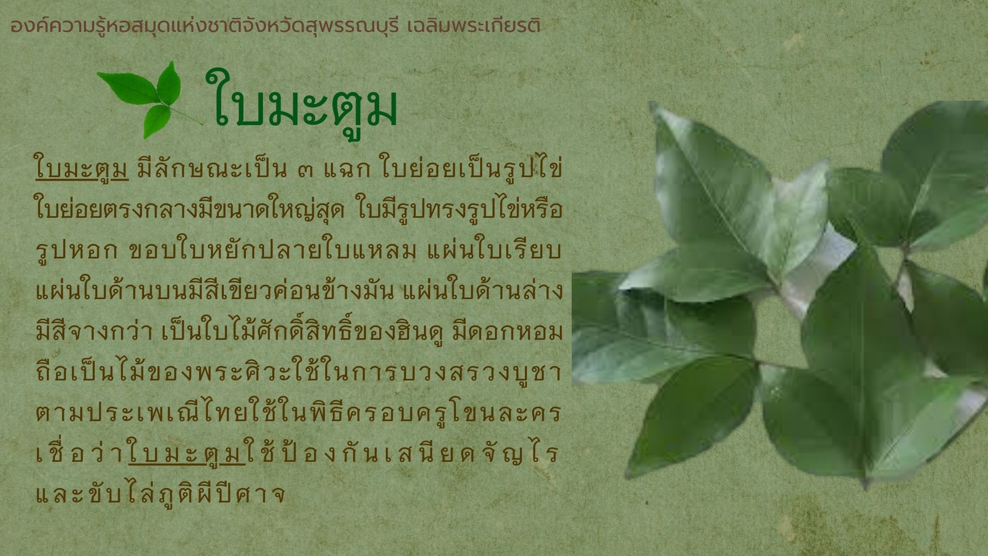 องค์ความรู้ เรื่อง ใบไม้มงคล
