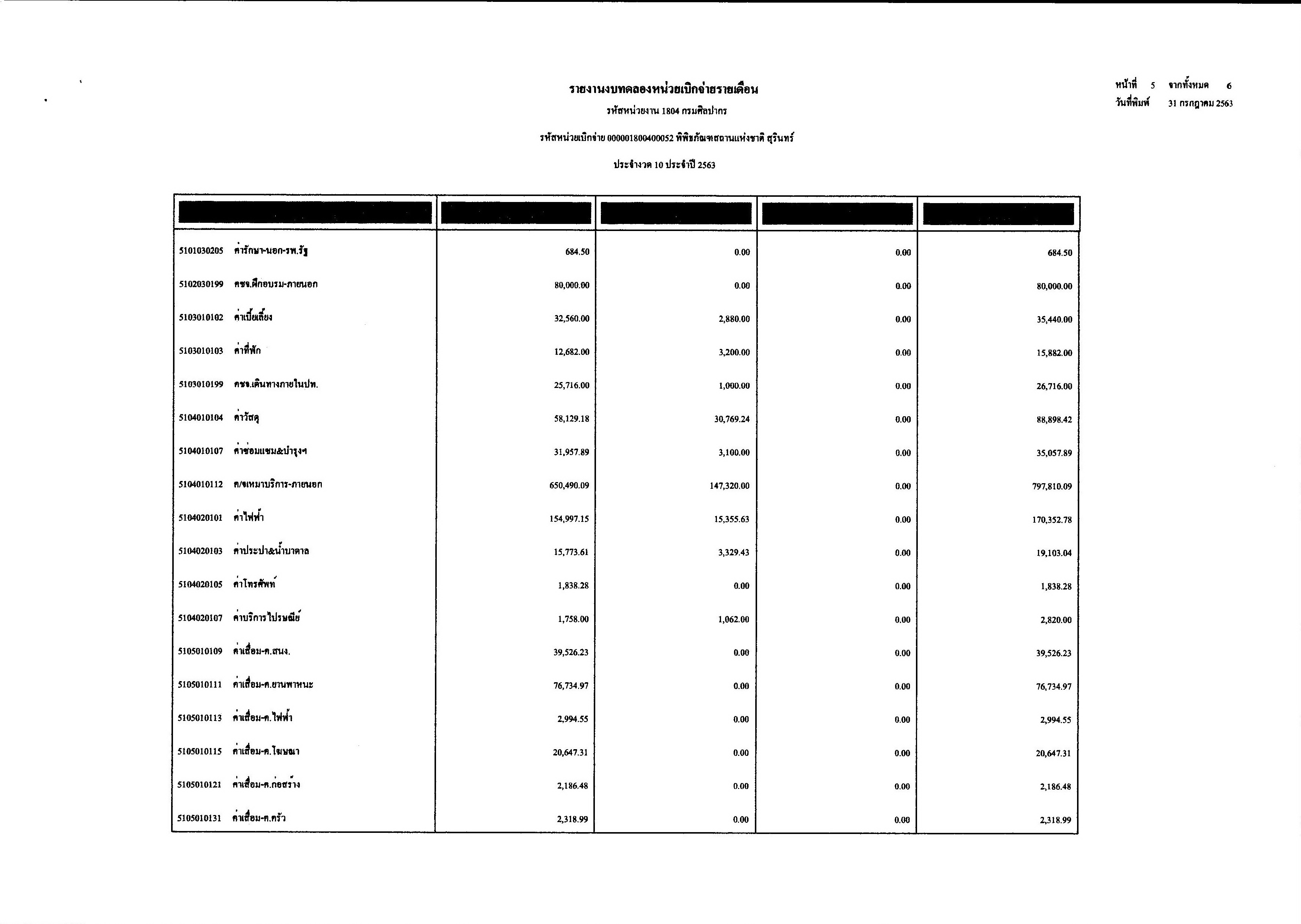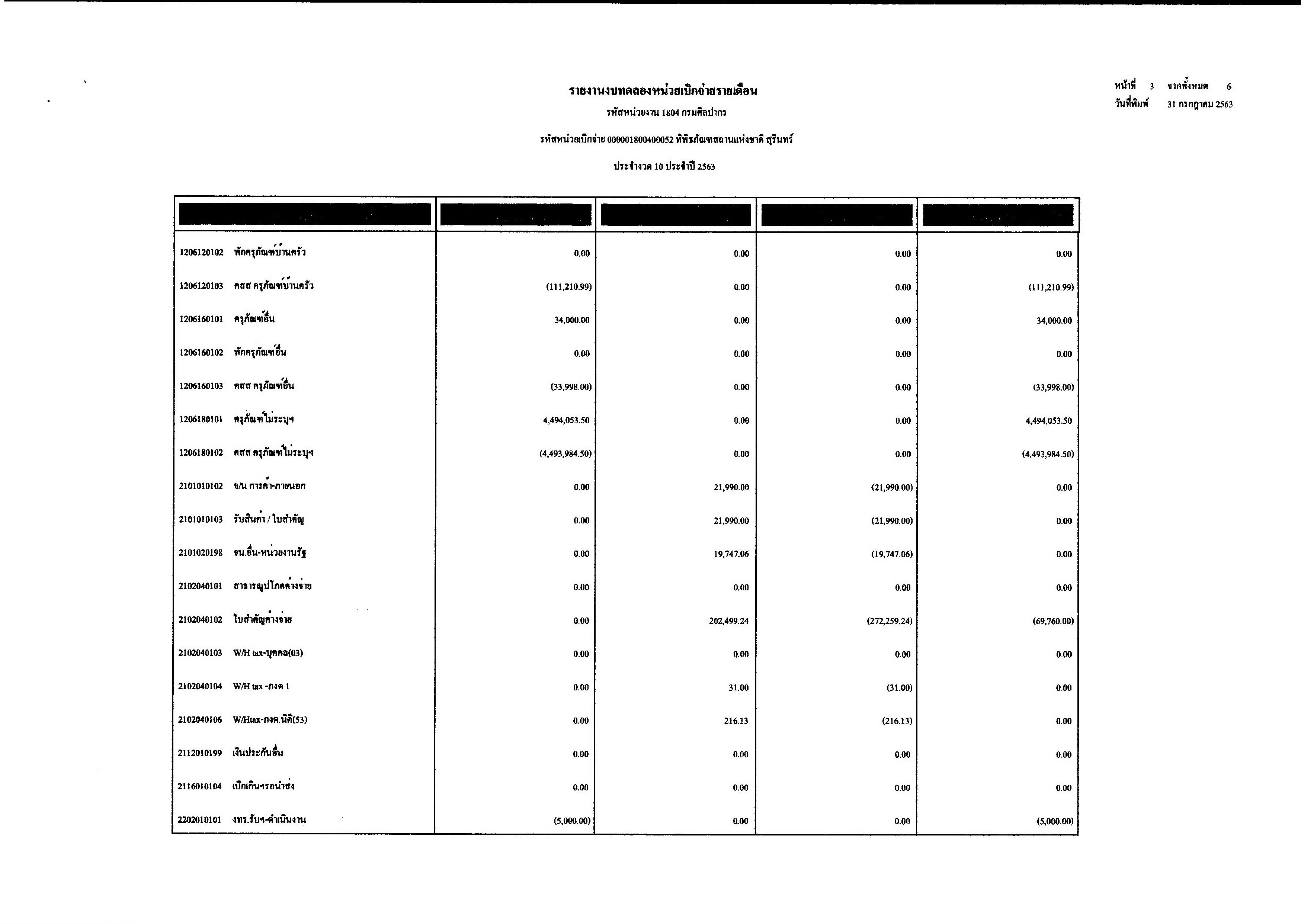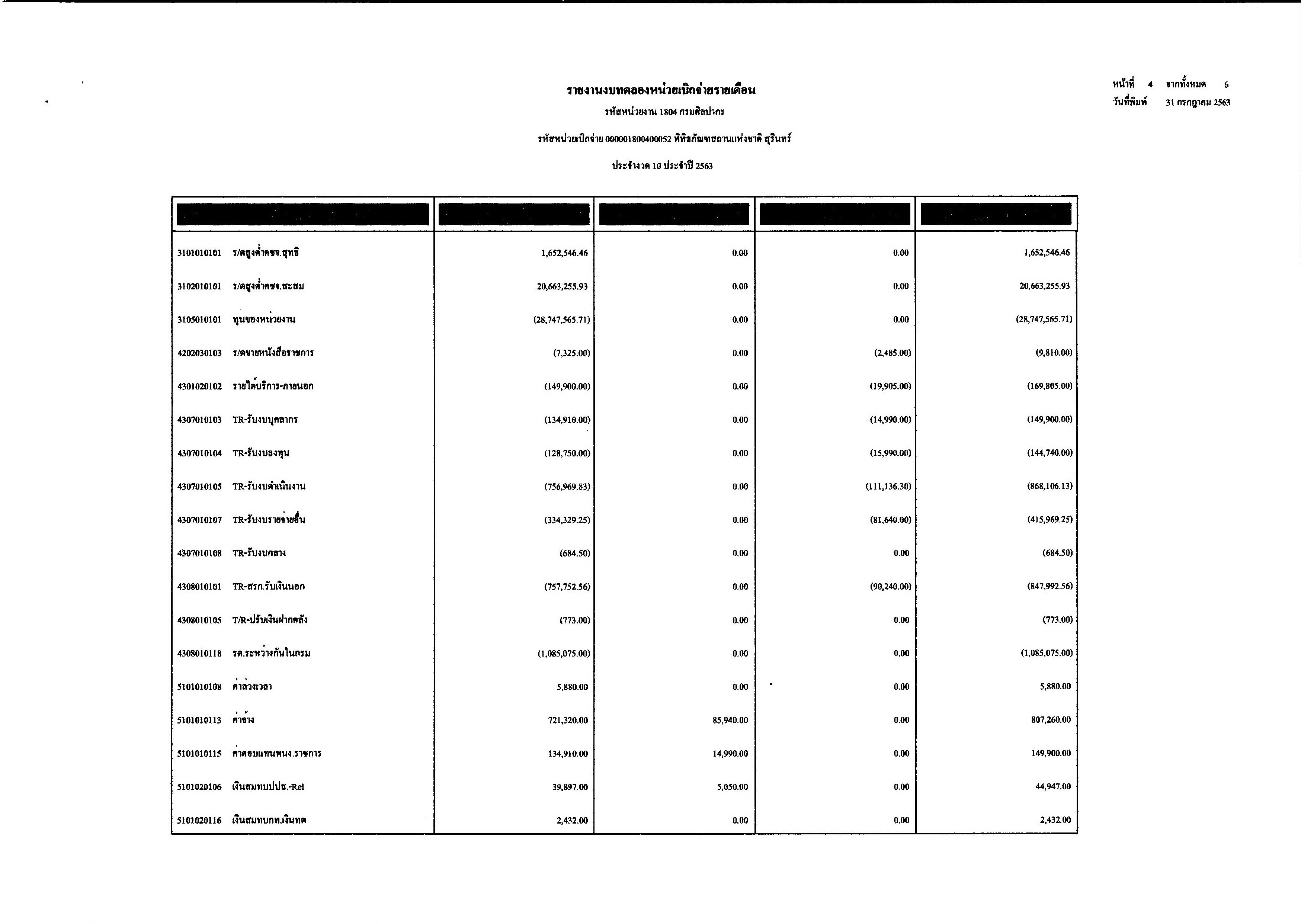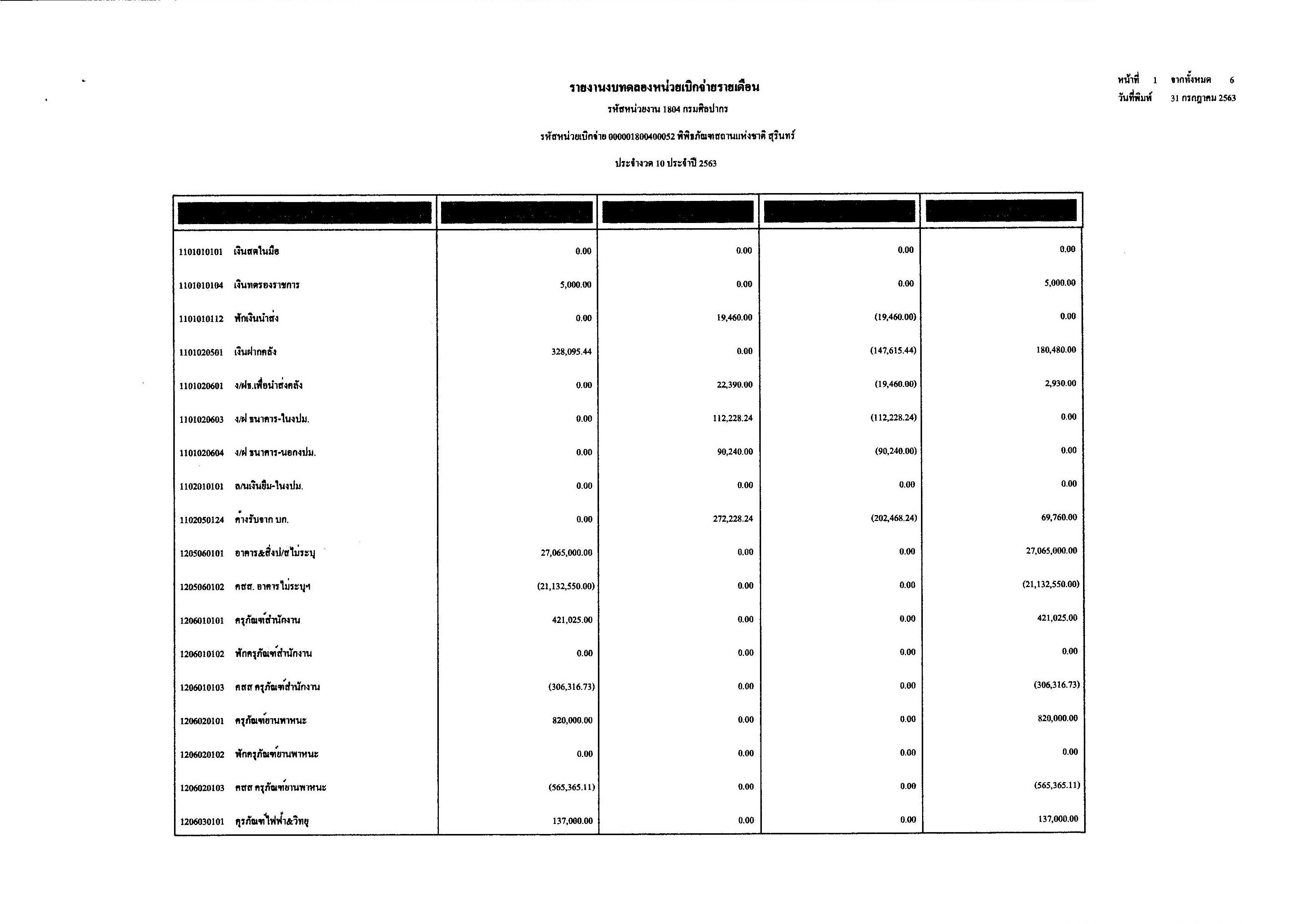 รายงานงบทดลองประจำเดือนกรกฏาคม พ.ศ.๒๕๖๓