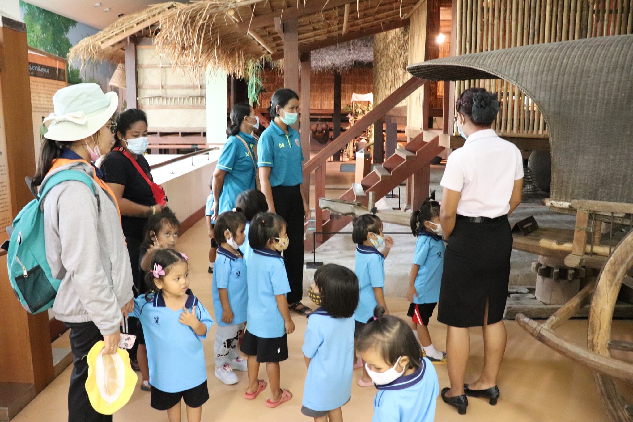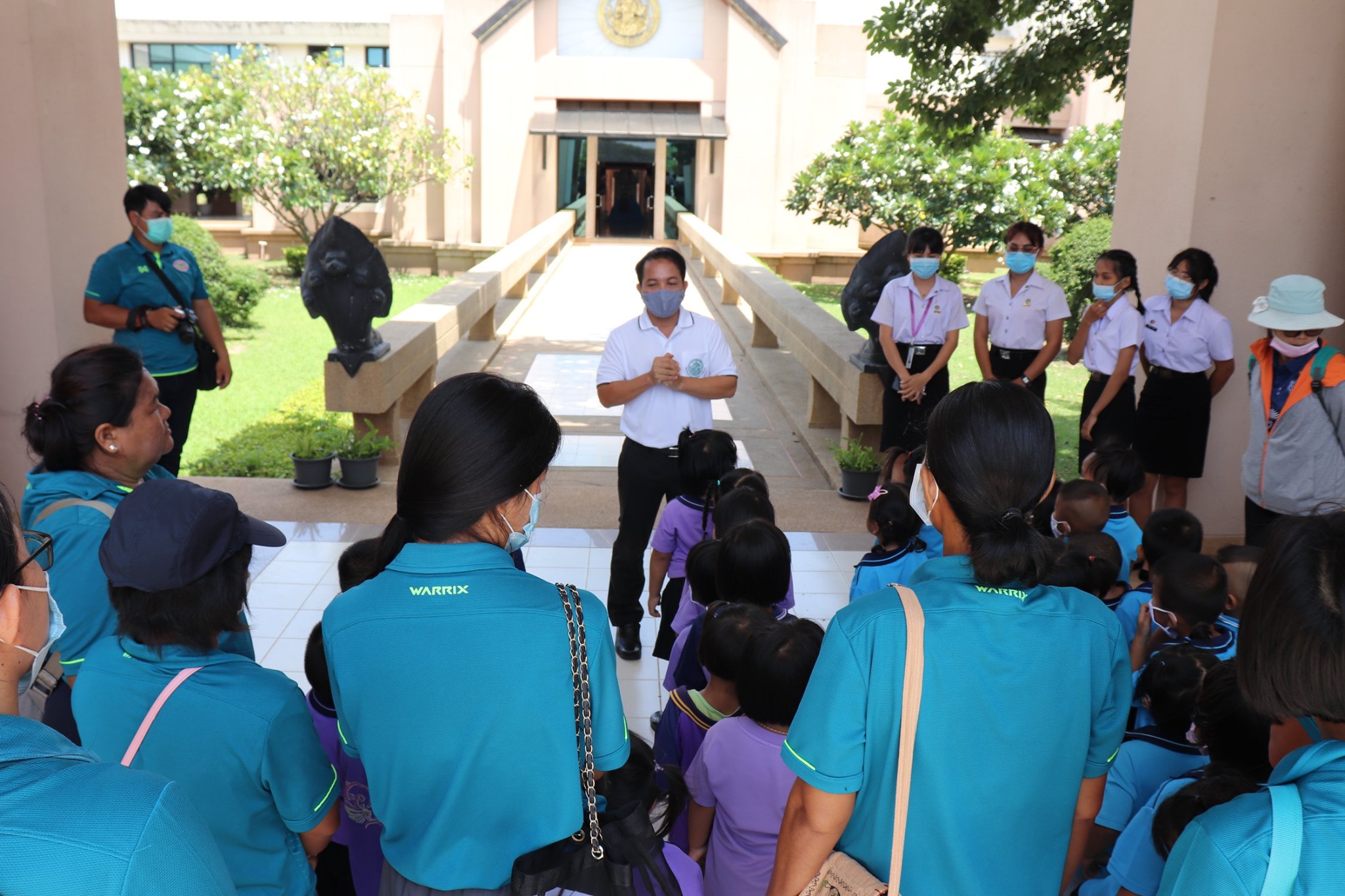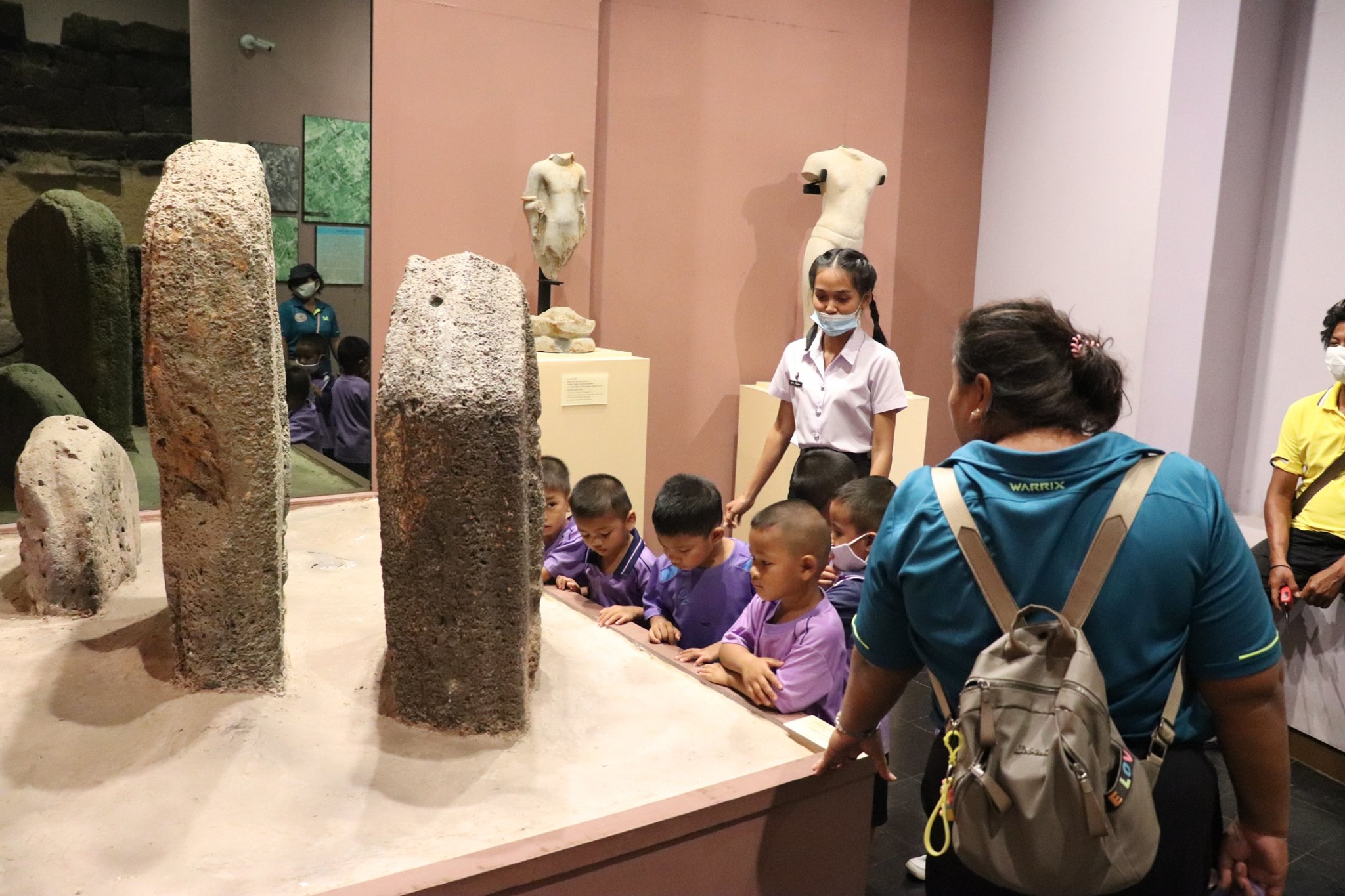 วันพุธที่ ๒ กันยายน พ.ศ.๒๕๖๓ เวลา ๑๓.๐๐ น. น้องๆ นักเรียนศูนย์พัฒนาเด็กเล็กสำนักงานเทศบาลตำบลเมืองแก อำเภอท่าตูม จังหวัดสุรินทร์จำนวนนักเรียน ๔๐ คน คุณครู ๑๕ คน เข้าเยี่ยมชมพิพิธภัณฑสถานแห่งชาติ สุรินทร์ โดยแบ่งการบรรยายนำชมออกเป็น ๔ กลุ่มย่อย กลุ่มล่ะ ๑๐ คน เพื่อป้องกันการแพร่ระบาดของเชื้อไวรัสโคโร่น่า - ๑๙(Covid - 19) โดยมีนายกรภัทร์ สุขใหญ่ พนักงานประจำพิพิธภัณฑ์ และน้องๆ นักศึกษาฝึกประสบการณ์วิชาชีพ ให้การต้อนรับและบรรยายนำชม