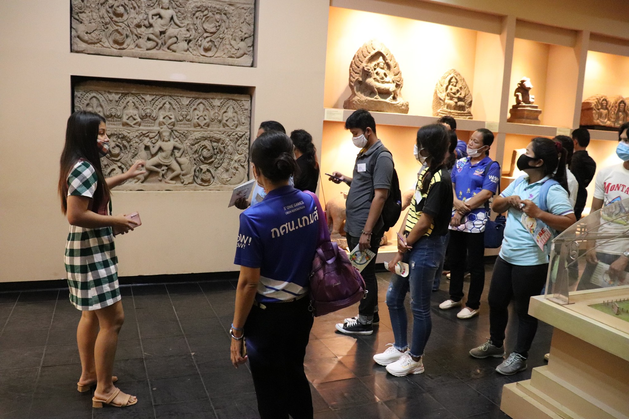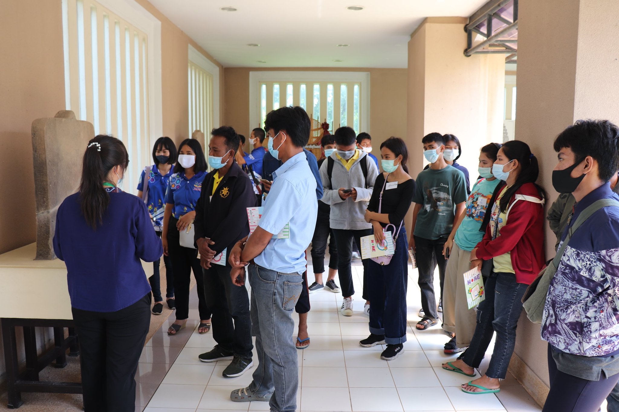 วันศุกร์ที่ ๑๑ กันยายน พ.ศ.๒๕๖๓ เวลา ๑๐.๐๐ น. คณะนักศึกษาศูนย์การศึกษานอกระบบและการศึกษาตามอัธยาศัย อำเภอไพรบึง จังหวัดศรีสะเกษ จำนวนนักศึกษา ๔๕ คน อาจารย์ ๑๐ คน เข้าเยี่ยมชมพิพิธภัณฑสถานแห่งชาติ สุรินทร์ โดยแบ่งการบรรยายนำชมออกเป็น ๒ กลุ่มย่อย เพื่อป้องกันการแพร่ระบาดของเชื้อไวรัสโคโรน่า - ๑๙ (Covid - 19) โดยมีนางสาวกมลรัตน์ ชวนสบาย ภัณฑารักษ์ปฏิบัติการ และนางสาวอาภาภรณ์ เปล่งปลั่งศรี นักวิชาการวัฒนธรรม ให้การต้อนรับและบรรยายนำชม