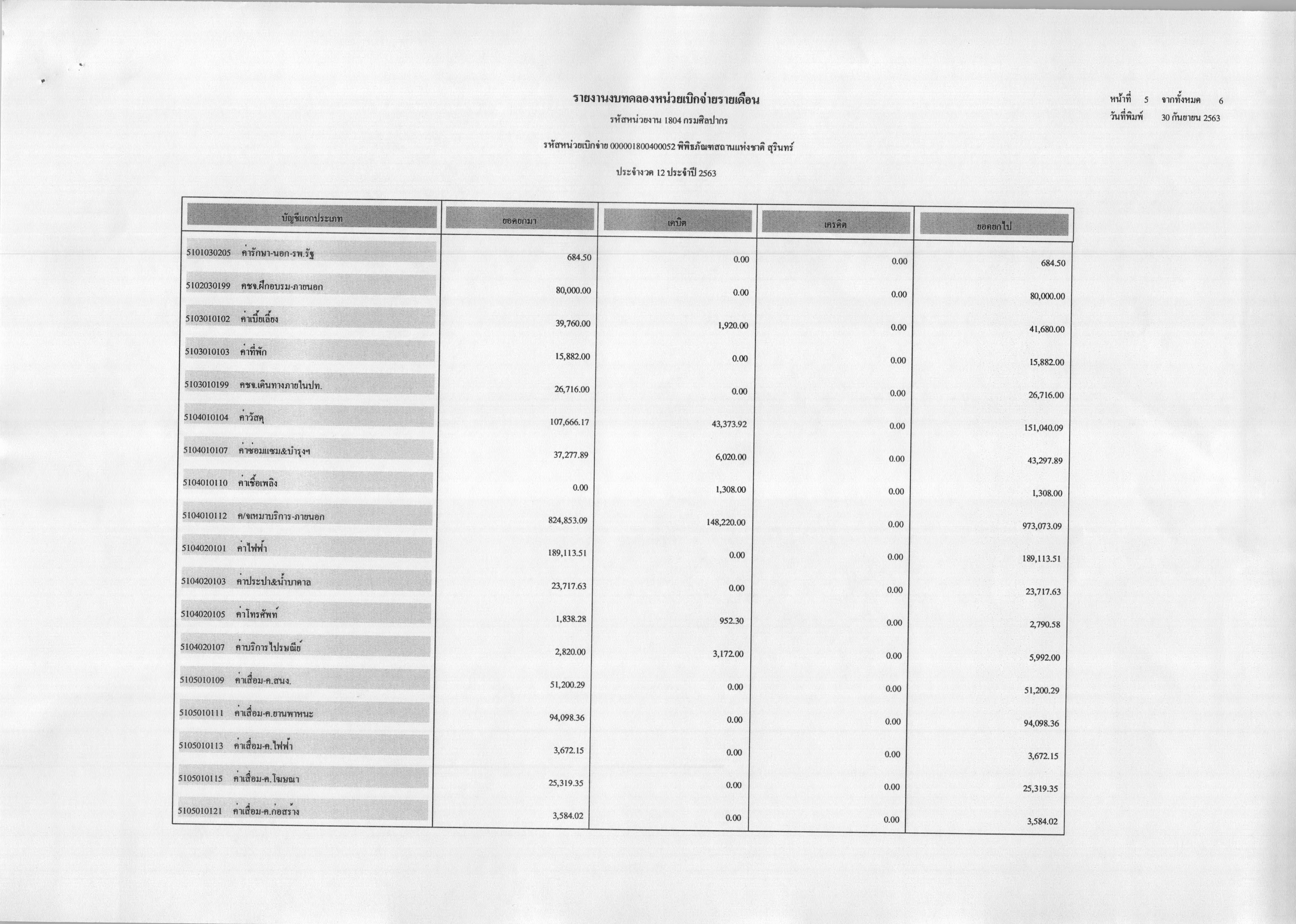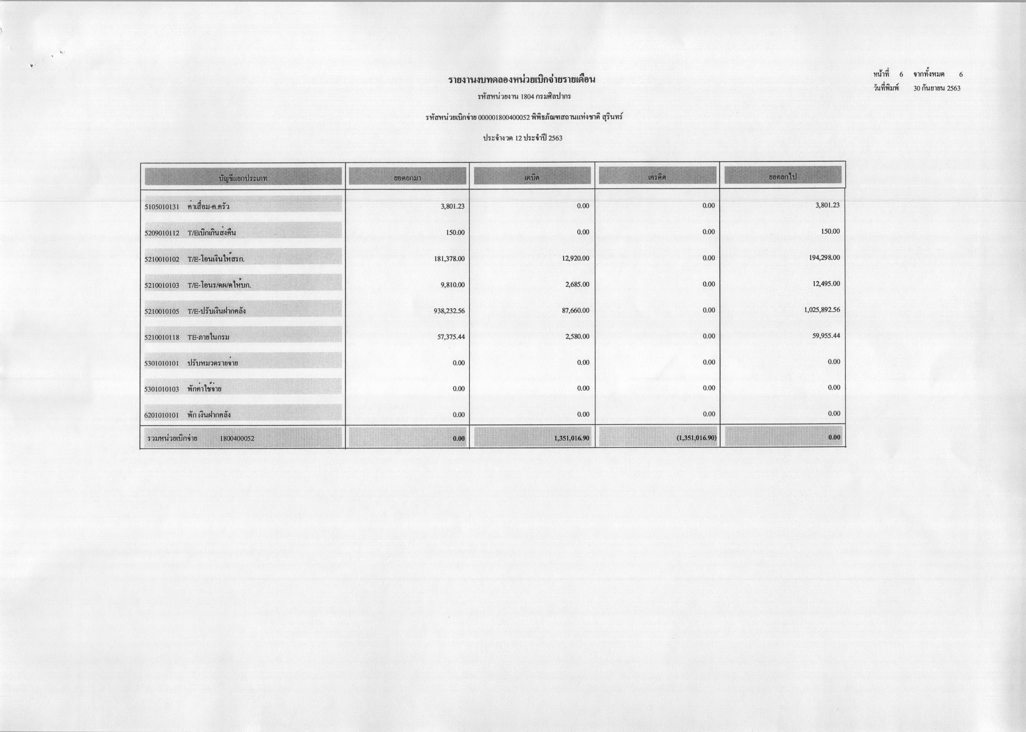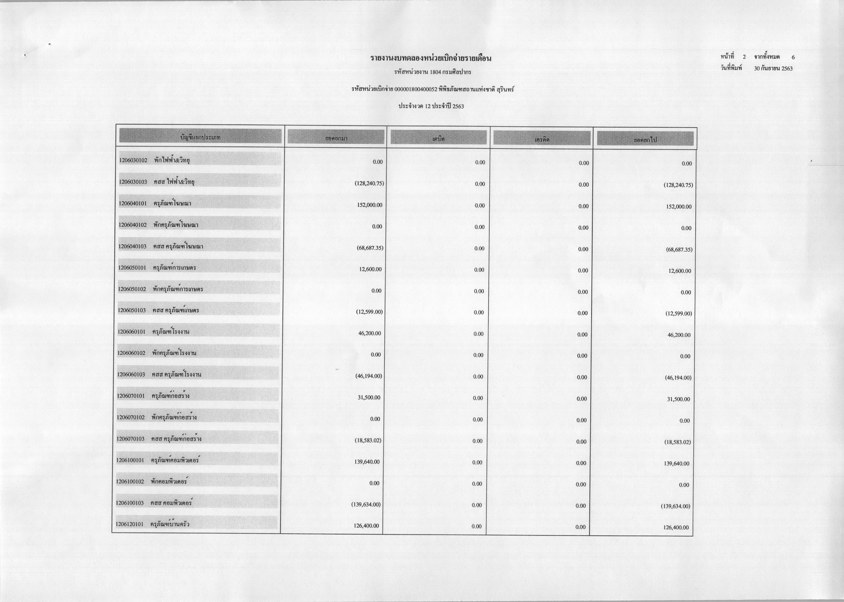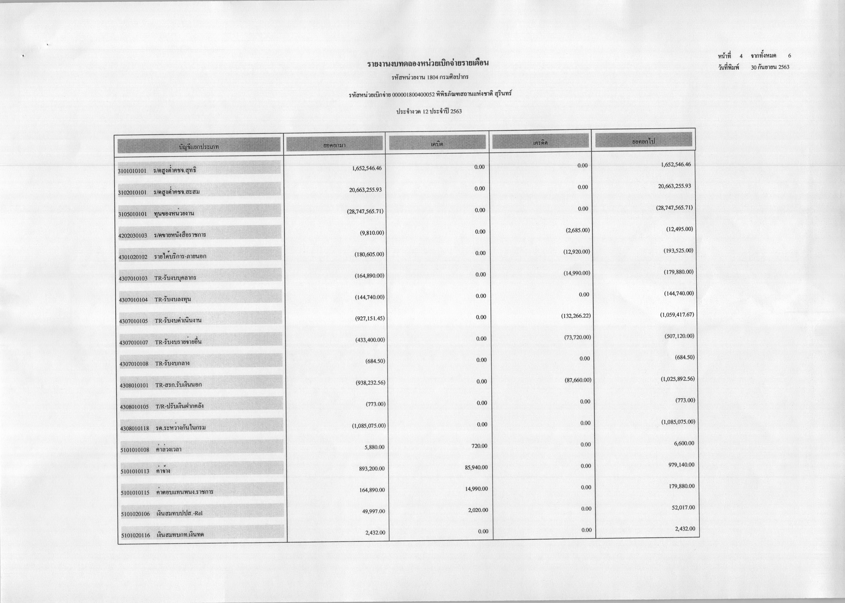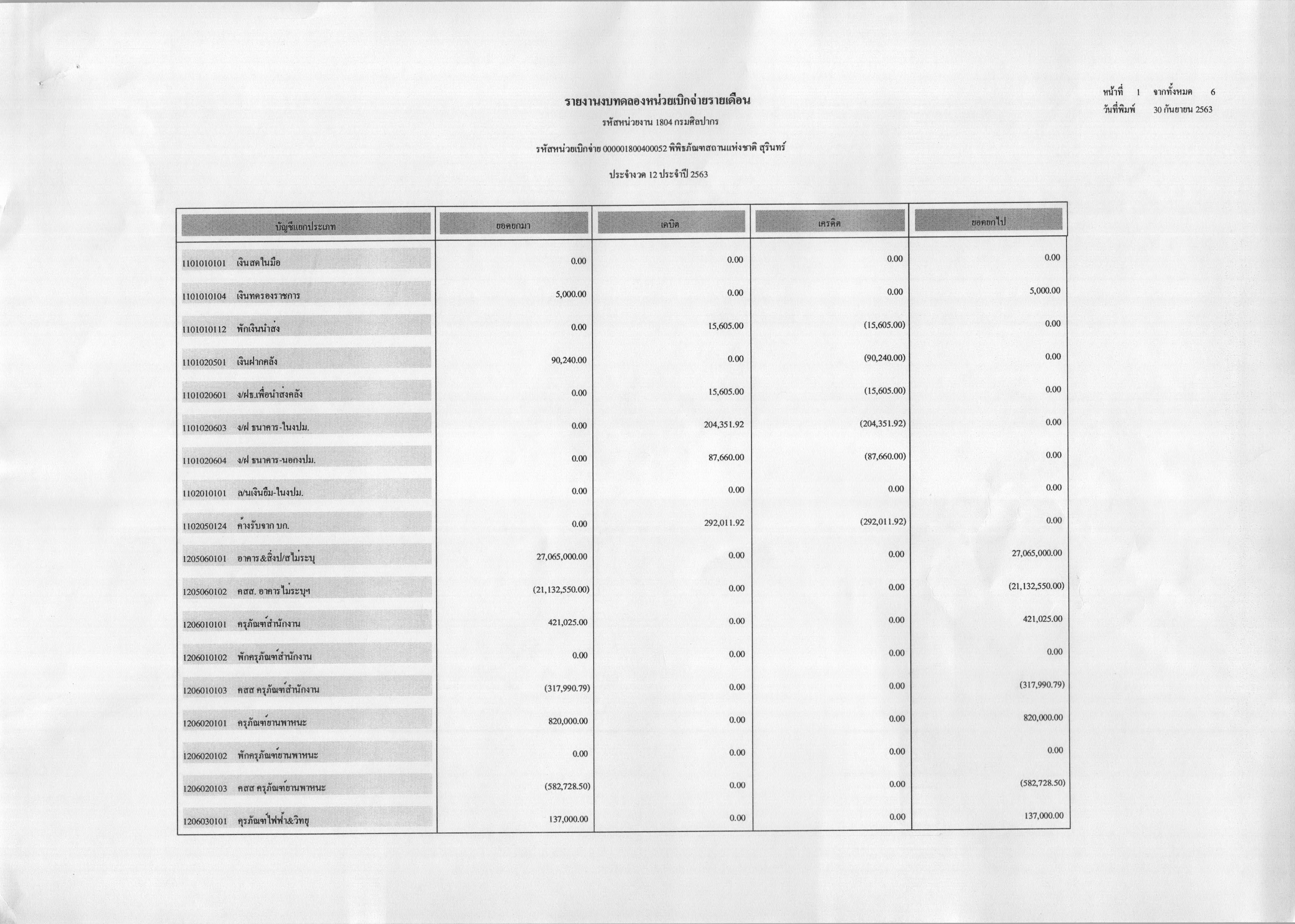 รายงานงบทดลองประจำเดือนกันยายน ๒๕๖๓
