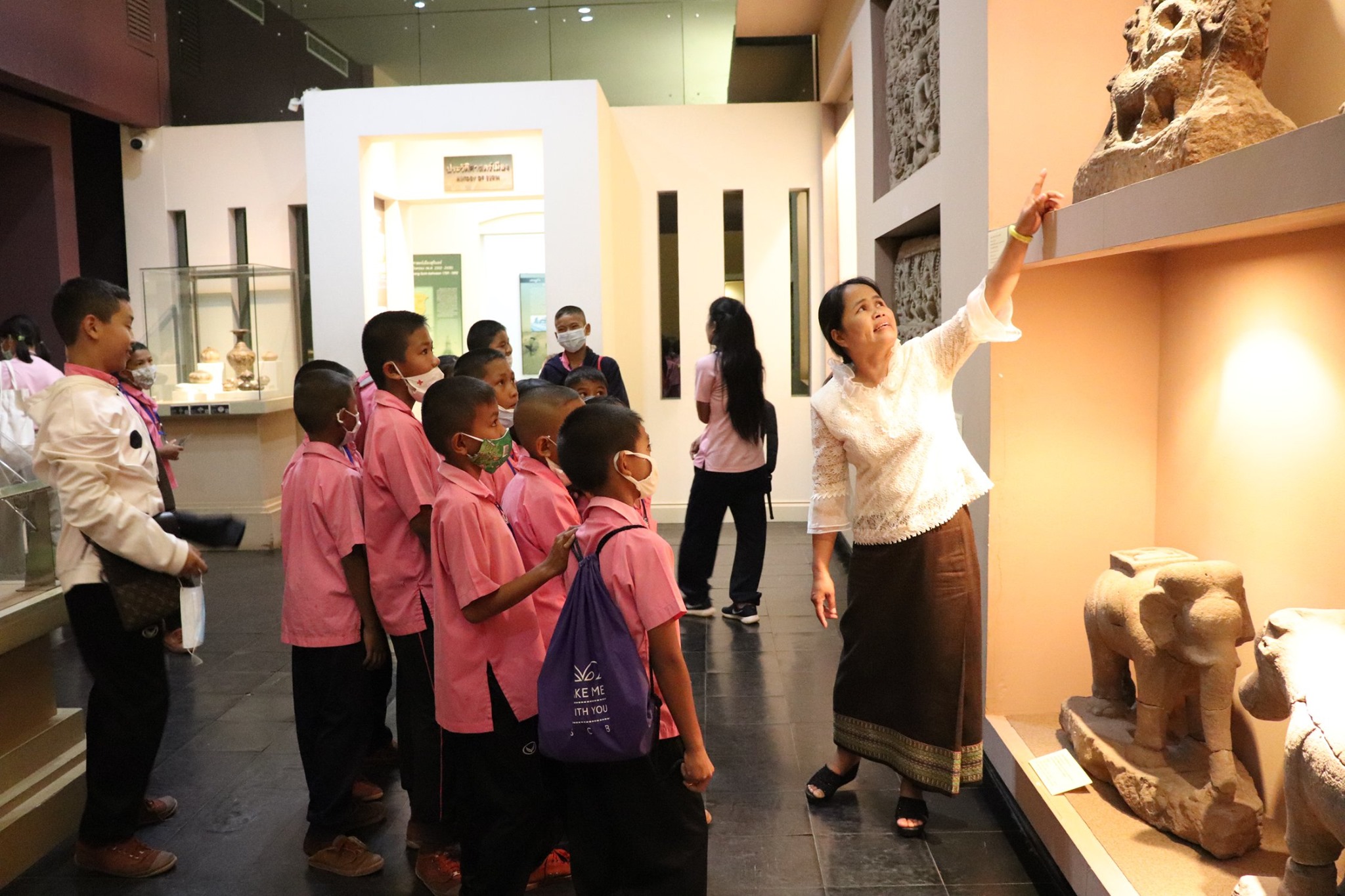 วันศุกร์ที่ ๒ ตุลาคม พ.ศ.๒๕๖๓ เวลา ๑๔.๐๐ น. น้องๆ นักเรียนชั้นประถมศึกษาที่ ๑ - ๓ โรงเรียนบ้านตาเมาะ ตำบลลำดวน อำเภอลำดวน จังหวัดสุรินทร์ จำนวนคุณครูและนักเรียน ๔๖ คน เข้าเยี่ยมชมพิพิธภัณฑสถานแห่งชาติ สุรินทร์ โดยแบ่งการบรรยายนำชมออกเป็น ๒ กลุ่มย่อย เพื่อป้องกันการแพร่ระบาดของเชื้อโควิด - ๑๙ โดยมีนางนางสาวกมลรัตน์ ชวนสบาย ภัณฑารักษ์ปฏิบัติการ และนางศรีสุดา ศรีสด พนักงานประจำพิพิธภัณฑ์ ให้การต้อนรับและบรรยายนำชม