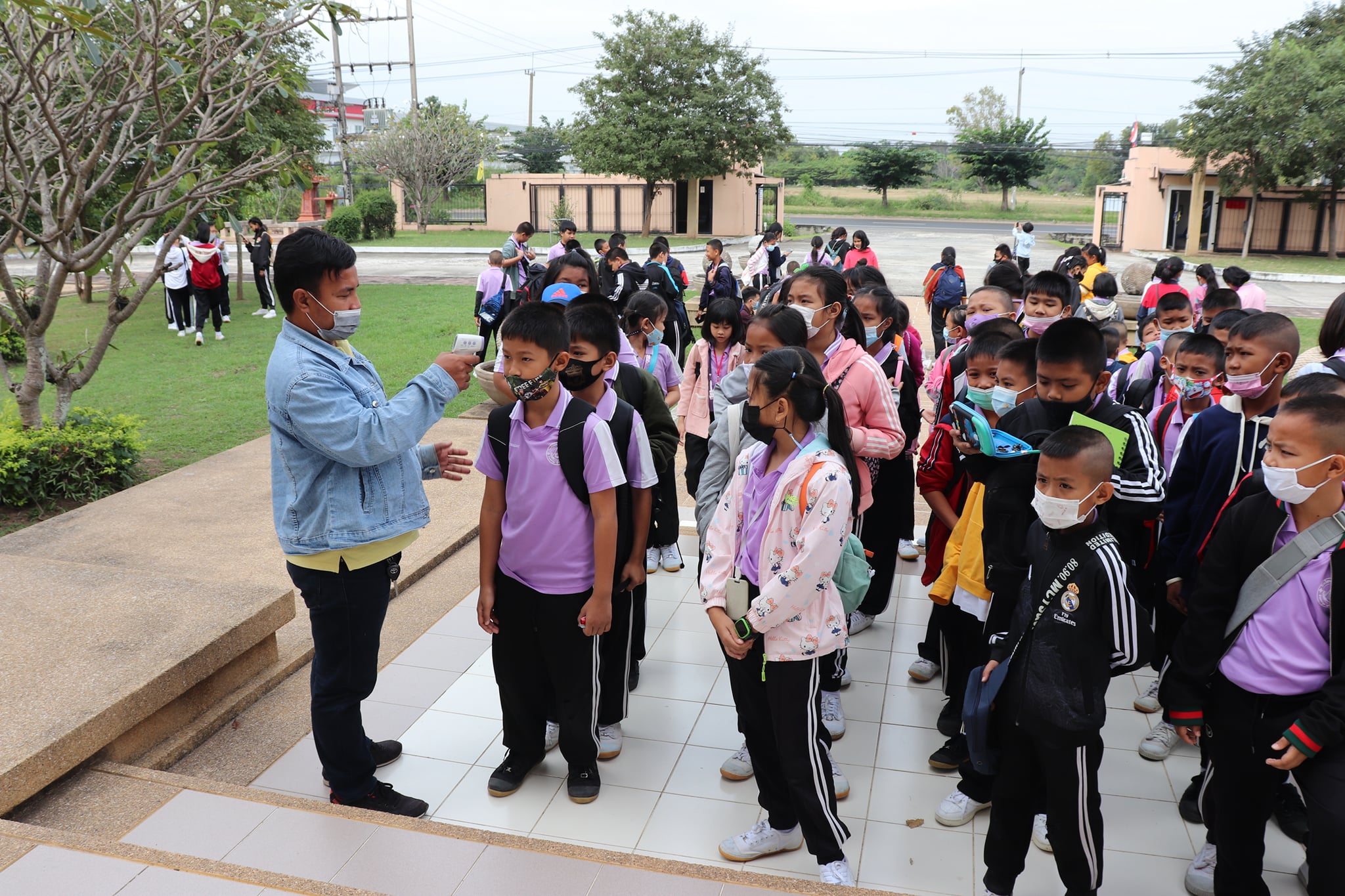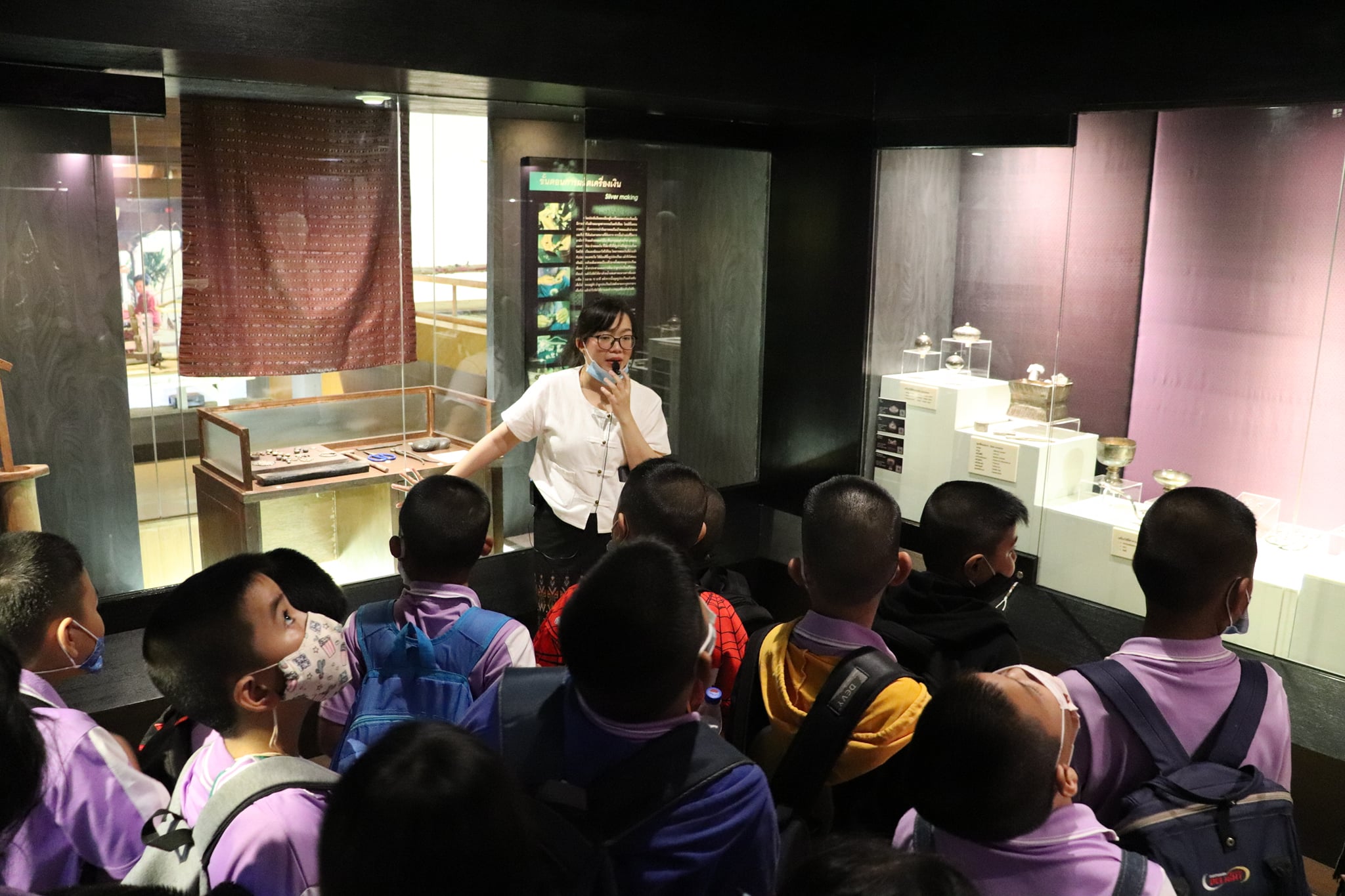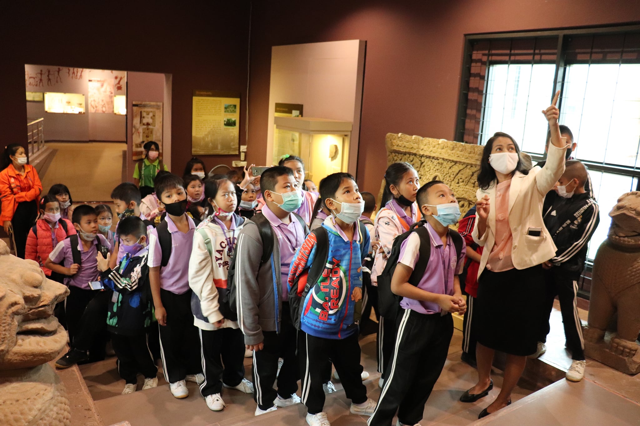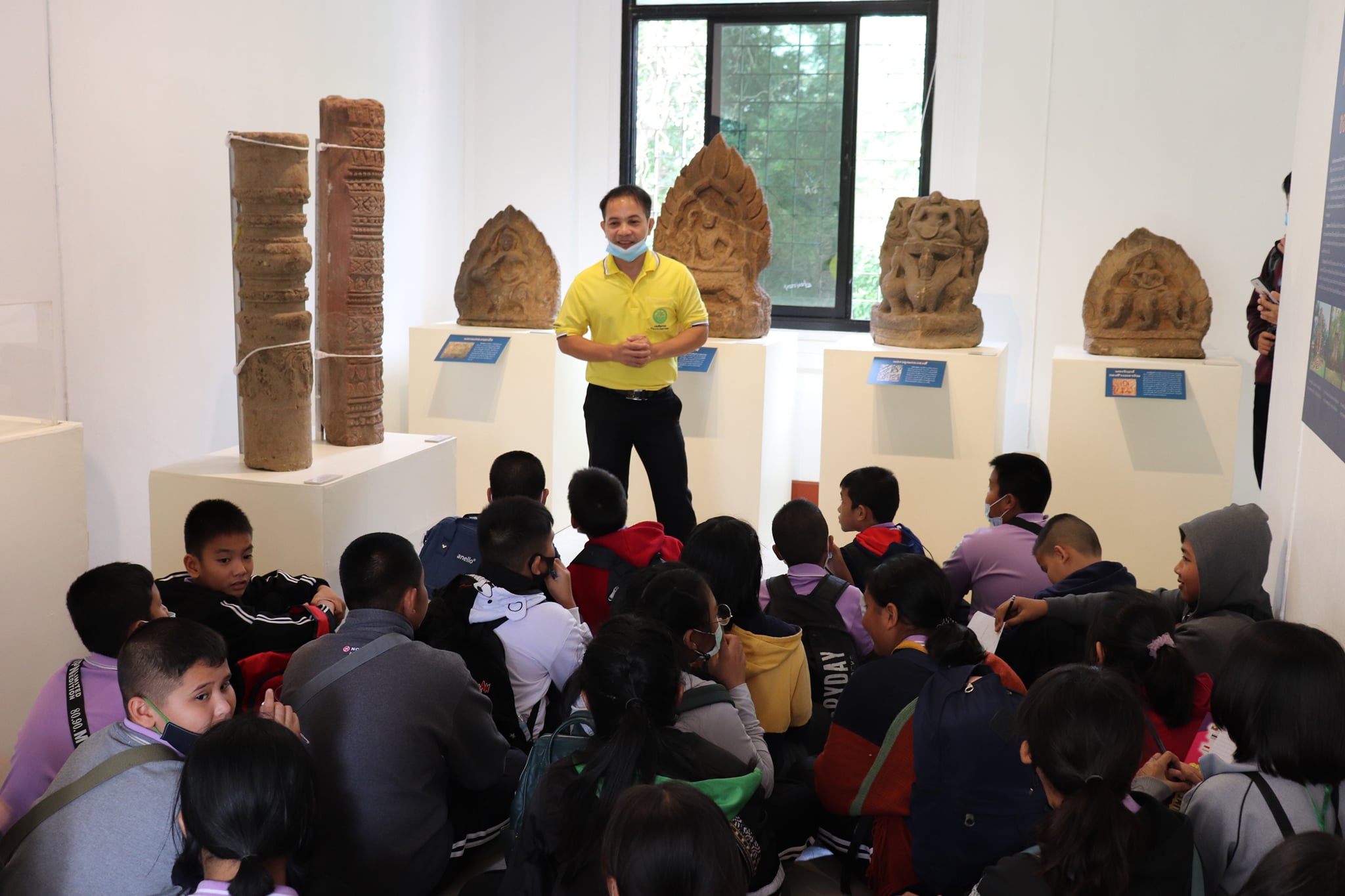 วันพุธที่ ๑๑ พฤศจิกายน พ.ศ. ๒๕๖๓ เวลา ๐๙.๓๐ น. นักเรียนชั้นประถมศึกษาที่ ๔ และ ๖ โรงเรียนอนุบาลทองอุ่น ตำบลท่าตูม อำเภอท่าตูม จังหวัดสุรินทร์ จำนวนนักเรียน ๑๒๐ คน คุณครู ๕ คน เข้าเยี่ยมชมพิพิธภัณฑสถานแห่งชาติ สุรินทร์ โดยแบ่งการบรรยายนำชมออกเป็น ๔ กลุ่มย่อย เพื่อป้องกันการแพร่ระบาดของเชื้อโควิด - ๑๙ โดยมีนางสาวพรเพ็ญ บุญญาทิพย์ หัวหน้าพิพิธภัณฑสถานแห่งชาติ สุรินทร์ นางสาวกมลรัตน์ ชวนสบาย ภัณฑารักษ์ปฏิบัติงาน นายกรภัทร์ สุขใหญ่ พนักงานประจำพิพิธภัณฑ์ และนางถนอม หลวงกลาง พนักงานประจำพิพิธภัณฑ์ ให้การต้อนรับและบรรยายนำชม