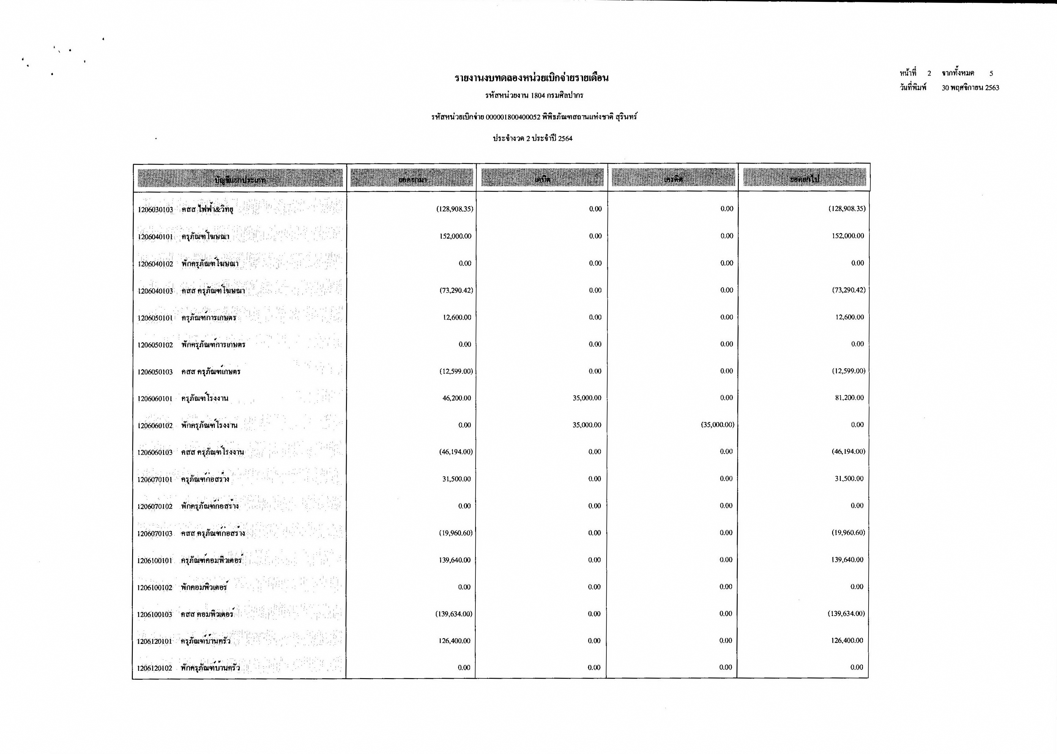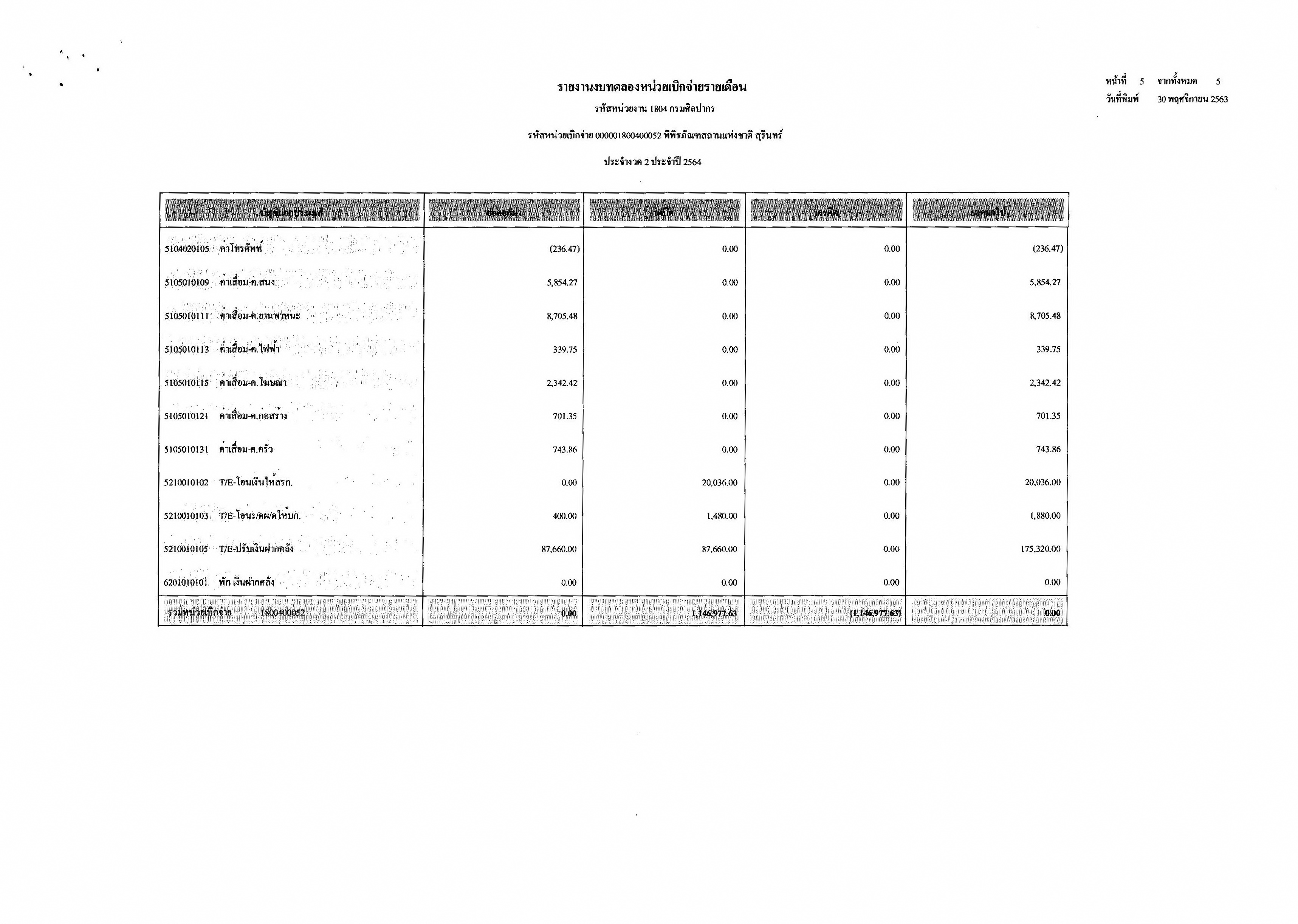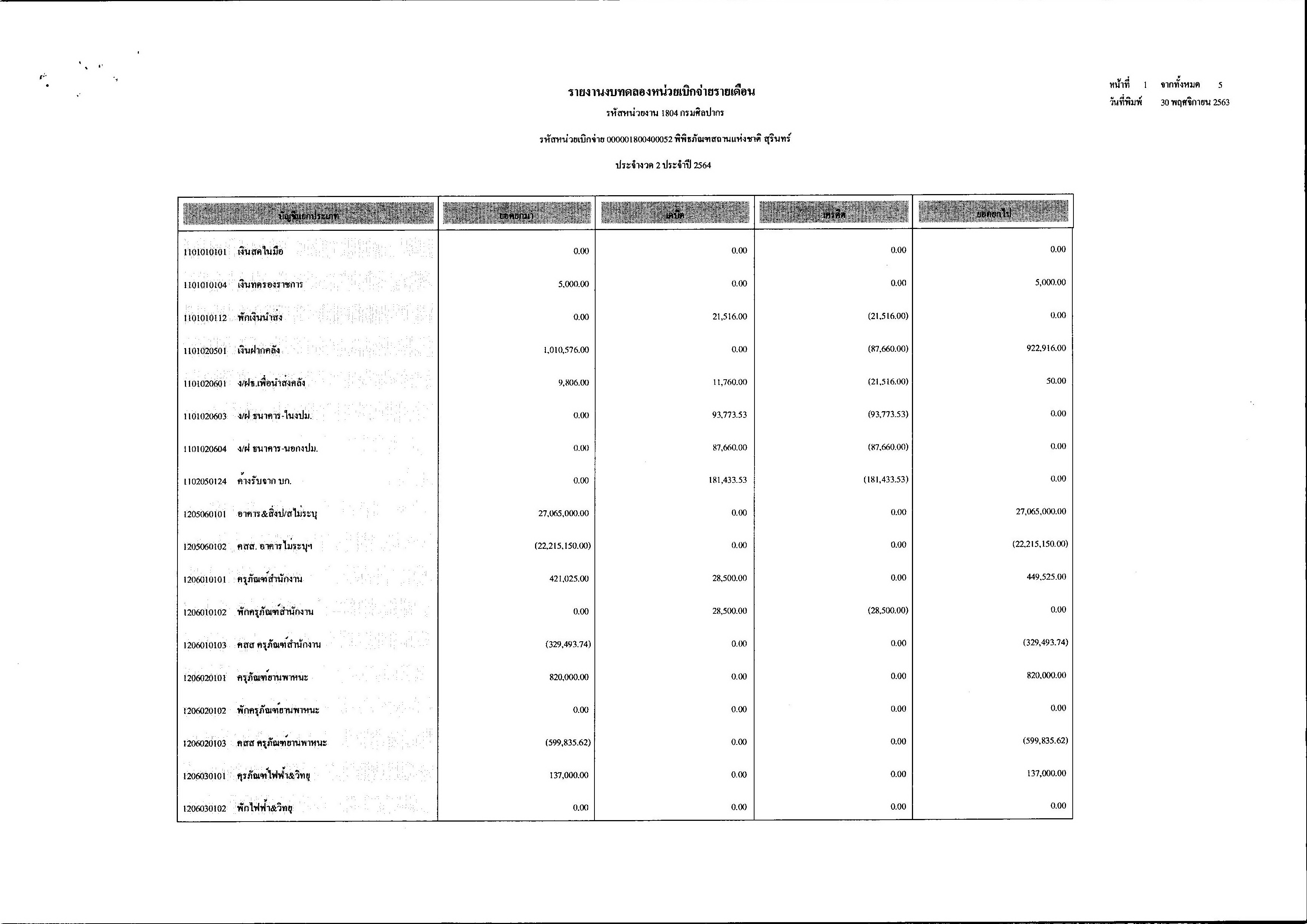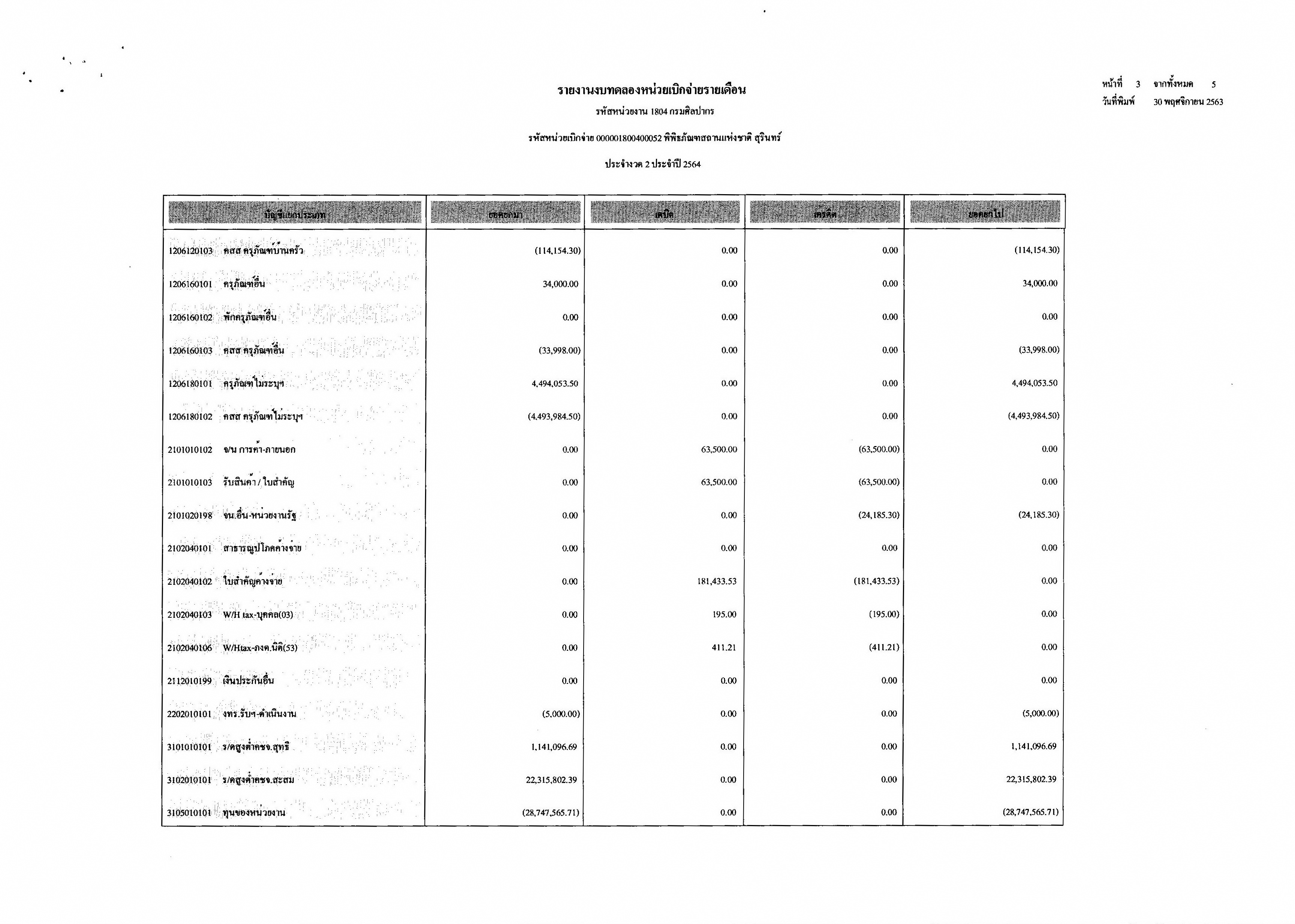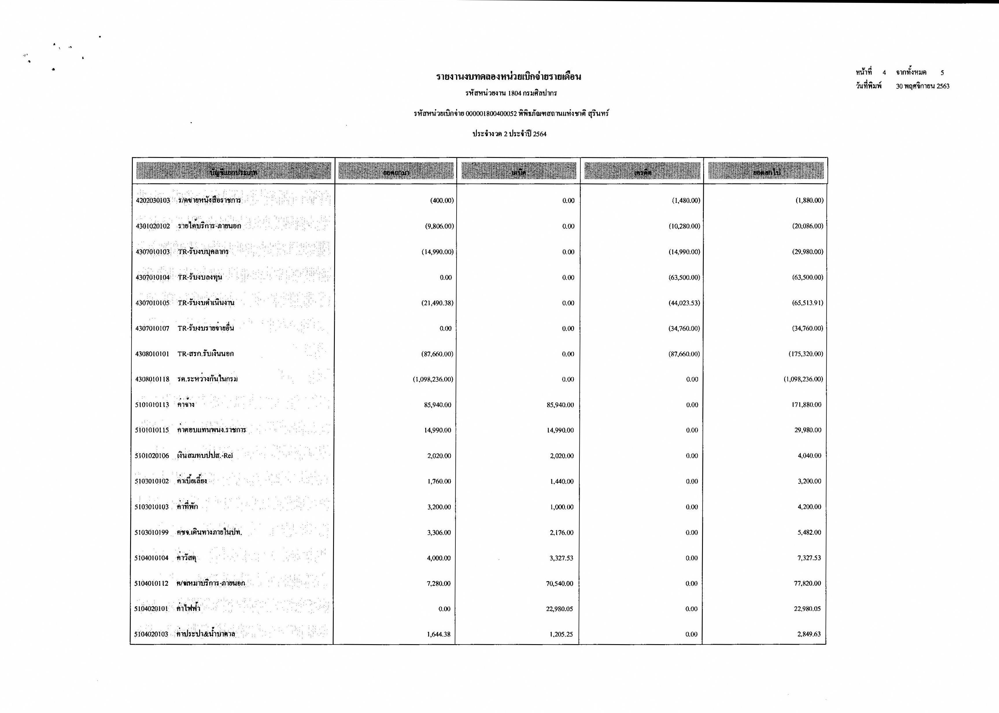 รายงานงบทดลองประจำเดือนพฤศจิกายน ๒๕๖๓