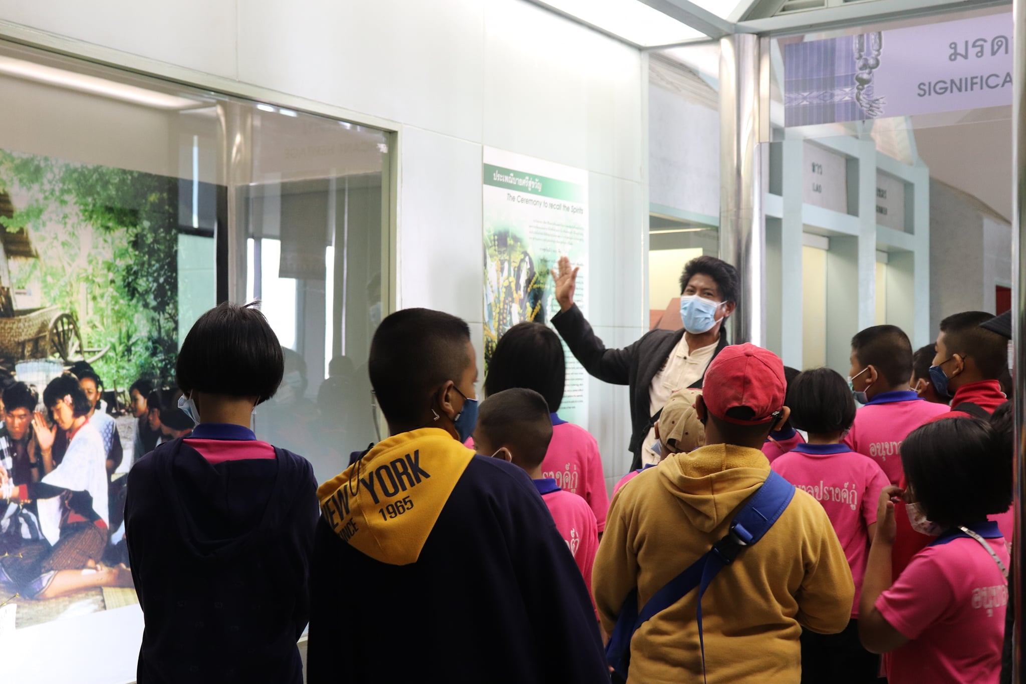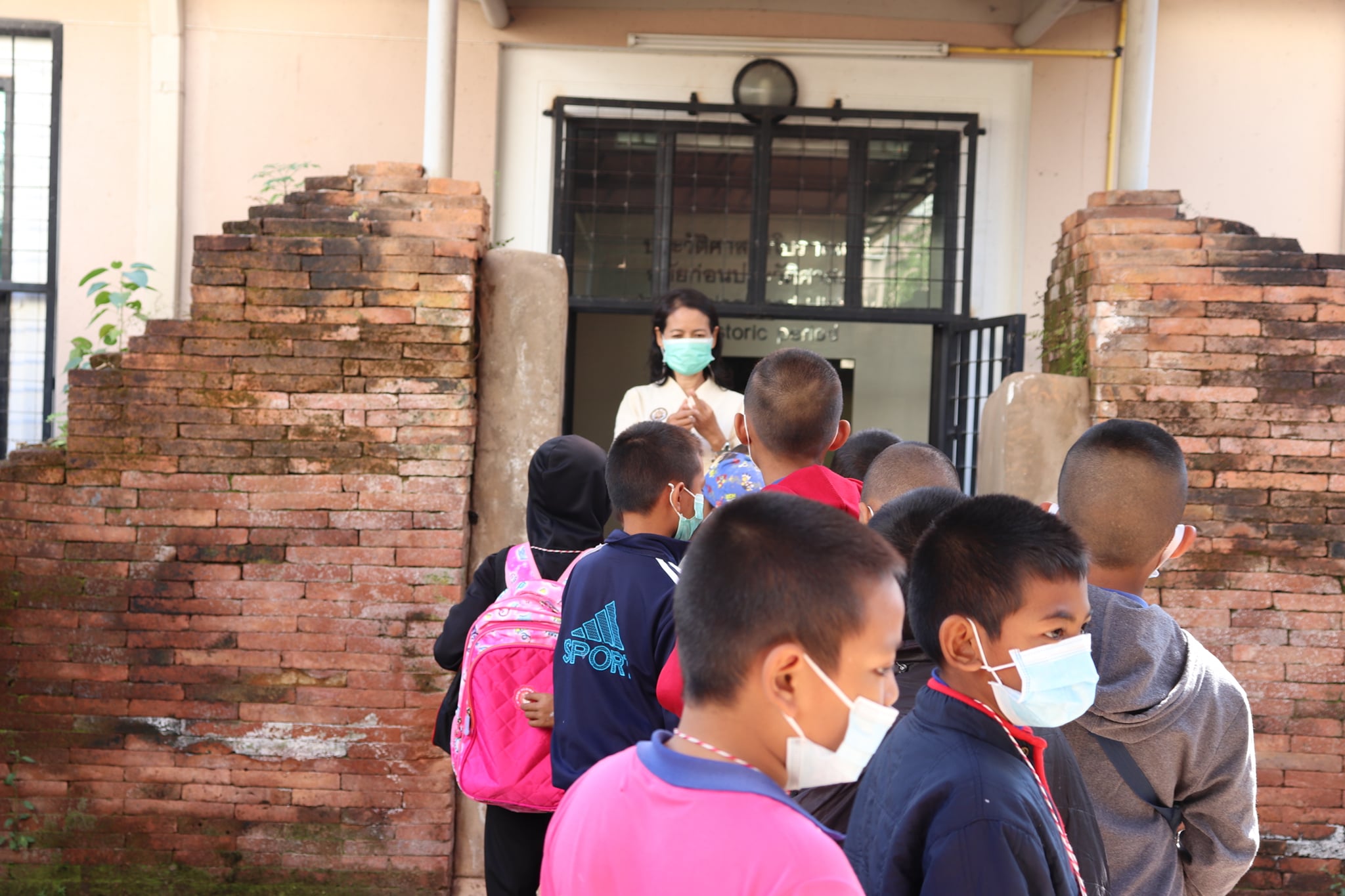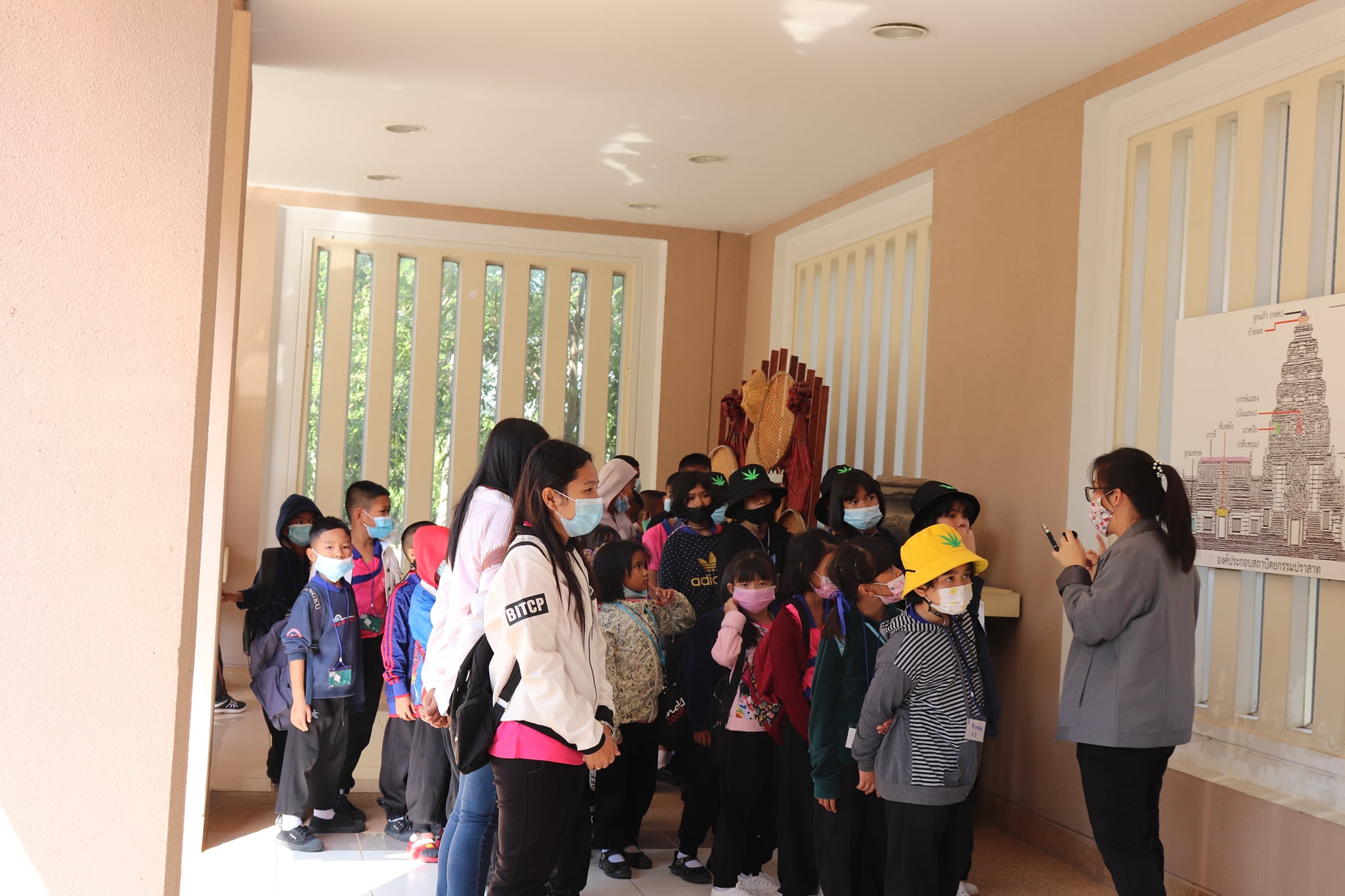 วันศุกร์ที่ ๔ ธันวาคม พ.ศ. ๒๕๖๓ เวลา ๐๙.๓๐ น. นักเรียนชั้นประถมศึกษาที่ ๑ - ๖ โรงเรียนอนุบาลปรางค์กู่ ตำบลพิมาย อำเภอปรางค์กู่ จังหวัดศรีสะเกษ จำนวนนักเรียน ๑๖๗ คน คุณครู ๑๐ คน เข้าเยี่ยมชมพิพิธภัณฑสถานแห่งชาติ สุรินทร์ โดยแบ่งการบรรยายนำชมออกเป็น ๕ กลุ่มย่อย เพื่อป้องกันการแพร่ระบาดของเชื้อโควิด - ๑๙ โดยมีนางสาวกมลรัตน์ ชวนสบาย ภัณฑารักษ์ปฏิบัติงาน นางถนอม หลวงกลาง นางศรีสุดา ศรีสด นางสาวอภิญญา สุขใหญ่ และนายแก่นแก้ว หอมนวล พนักงานประจำพิพิธภัณฑ์ ให้การต้อนรับและบรรยายนำชม