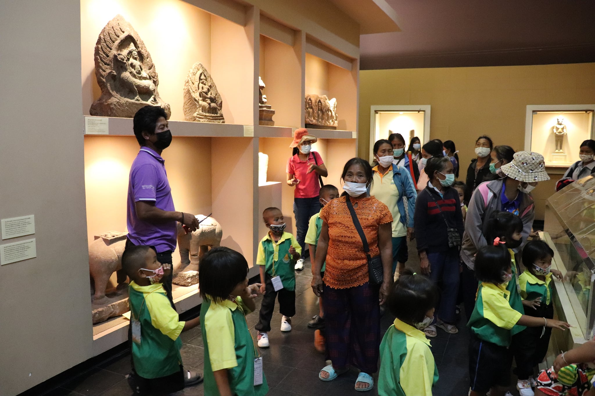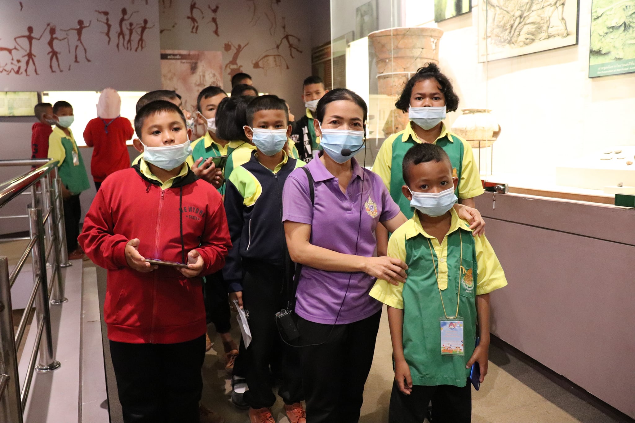 วันเสาร์ที่ ๑๙ ธันวาคม พ.ศ. ๒๕๖๓ เวลา ๑๓.๓๐ น. นักเรียนชั้นอนุบาล ๒ ถึงชั้นประถมศึกษาที่ ๖ โรงเรียนบ้านหนองสะแกสน ตำบลปราสาท อำเภอขุขันธ์ จังหวัดศรีสะเกษ จำนวนนักเรียน ๙๒ คน คุณครูและผู้ปกครอง ๒๓ คน เข้าเยี่ยมชมพิพิธภัณฑสถานแห่งชาติ สุรินทร์ โดยแบ่งการบรรยายนำชมออกเป็น ๓ กลุ่มย่อย เพื่อป้องกันการแพร่ระบาดของเชื้อโควิด - ๑๙ โดยมีนางสาวอภิญญา สุขใหญ่ นางศรีสุดา ศรีสด และนายแก่นแก้ว หอมนวล พนักงานประจำพิพิธภัณฑ์ ให้การต้อนรับและบรรยายนำชม