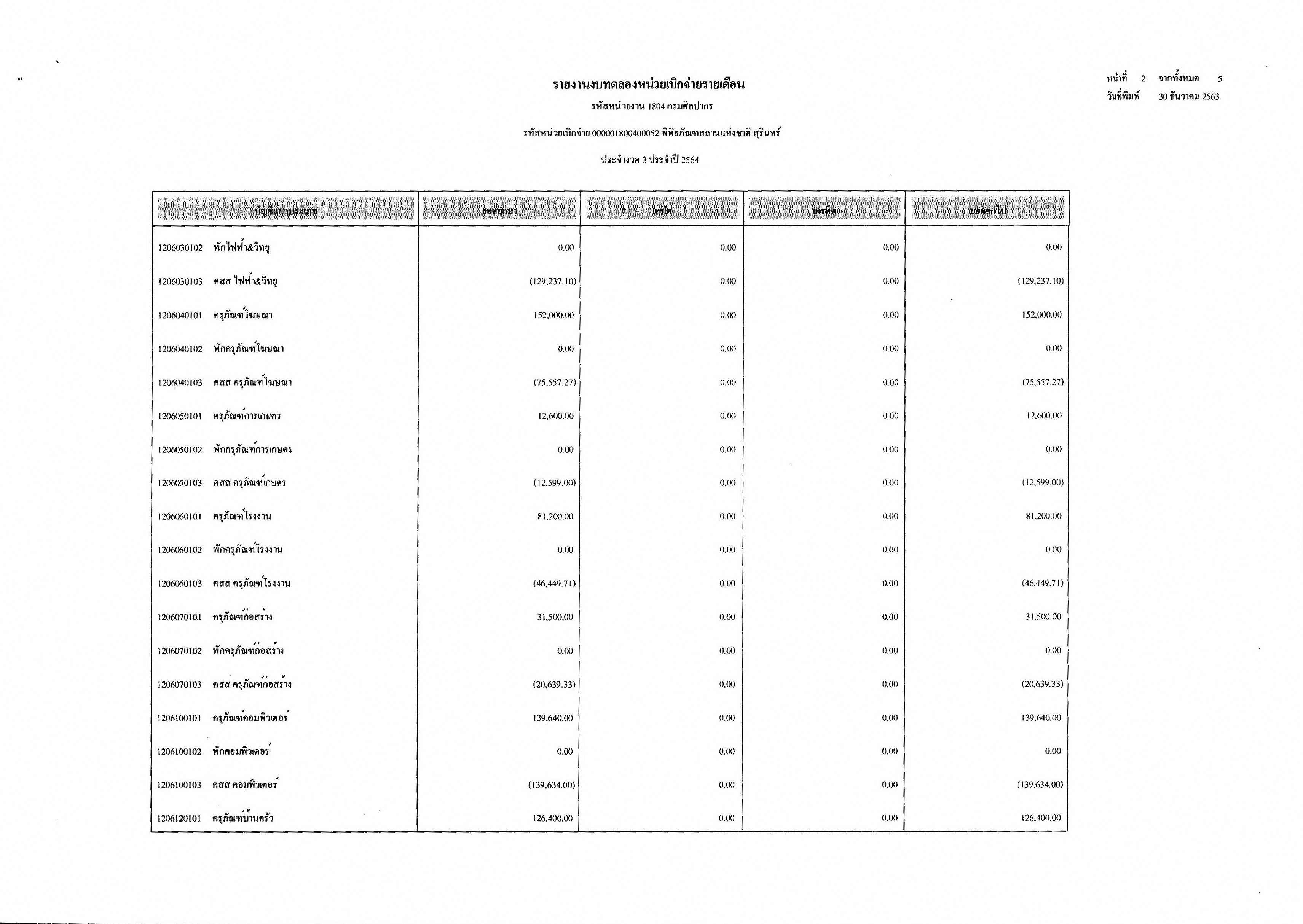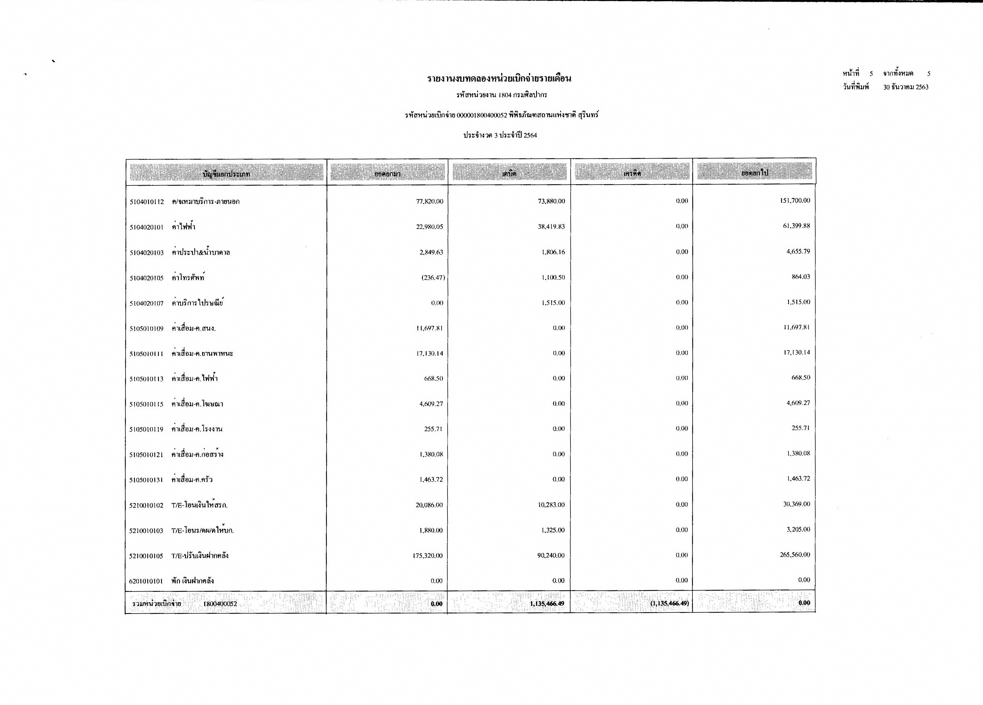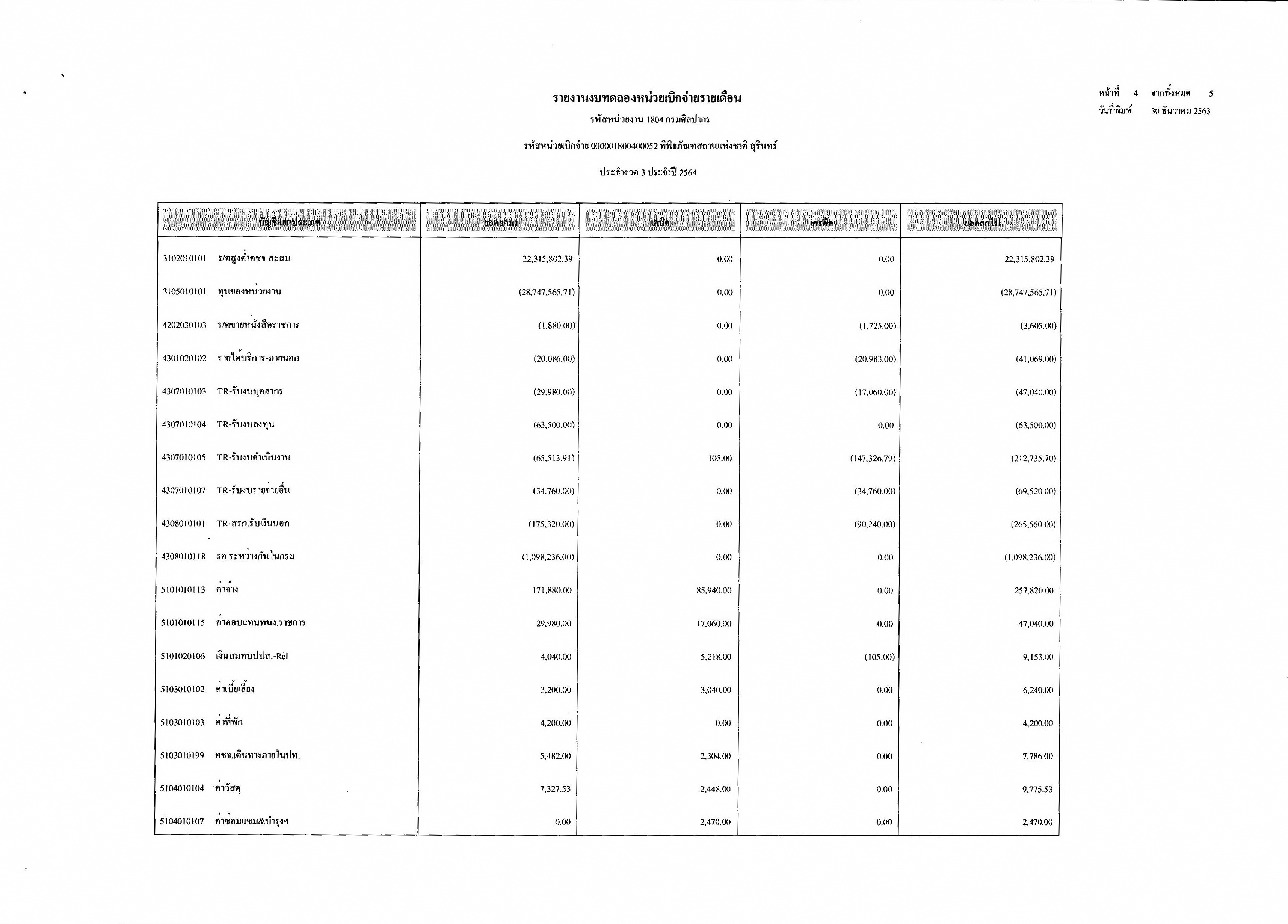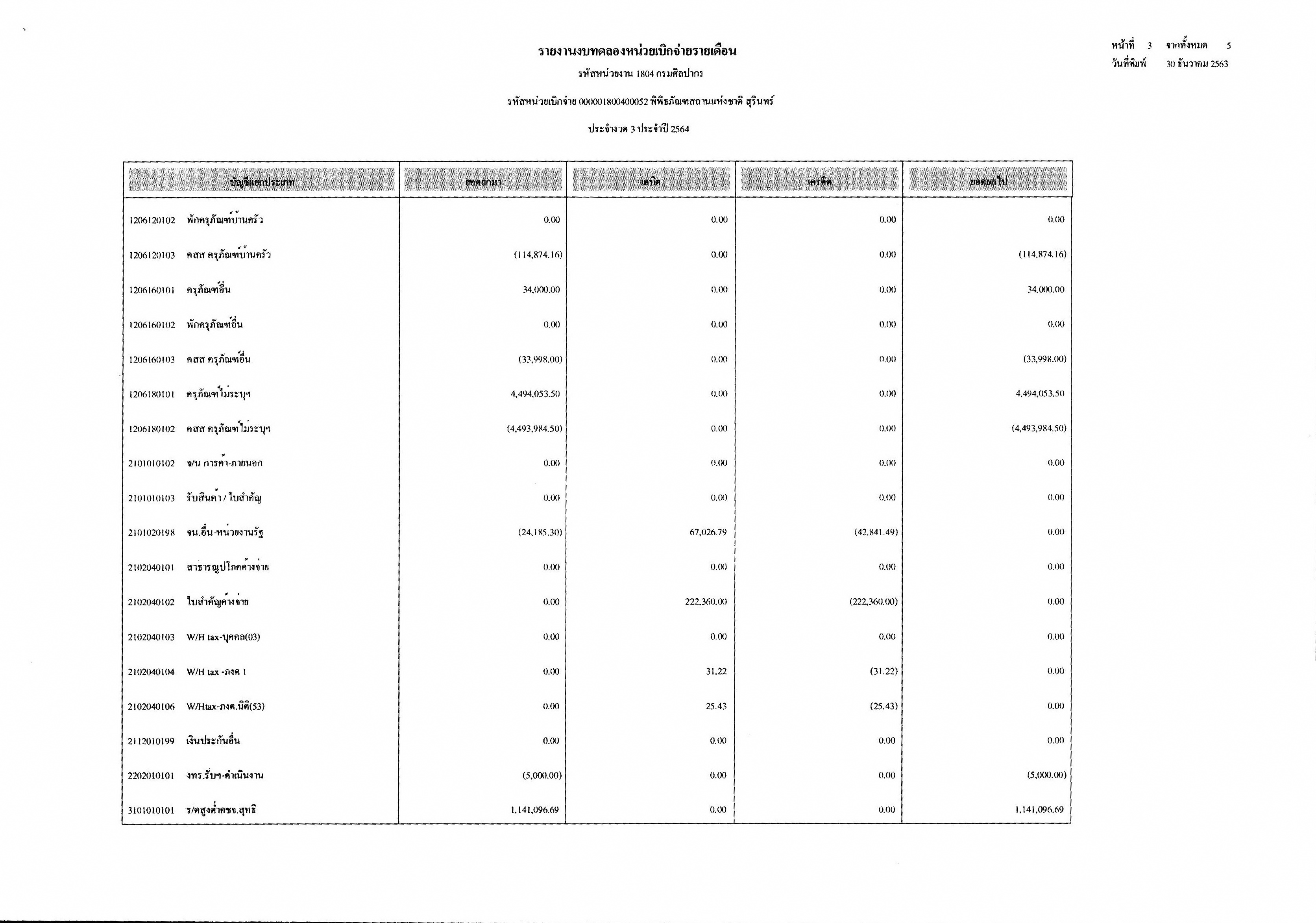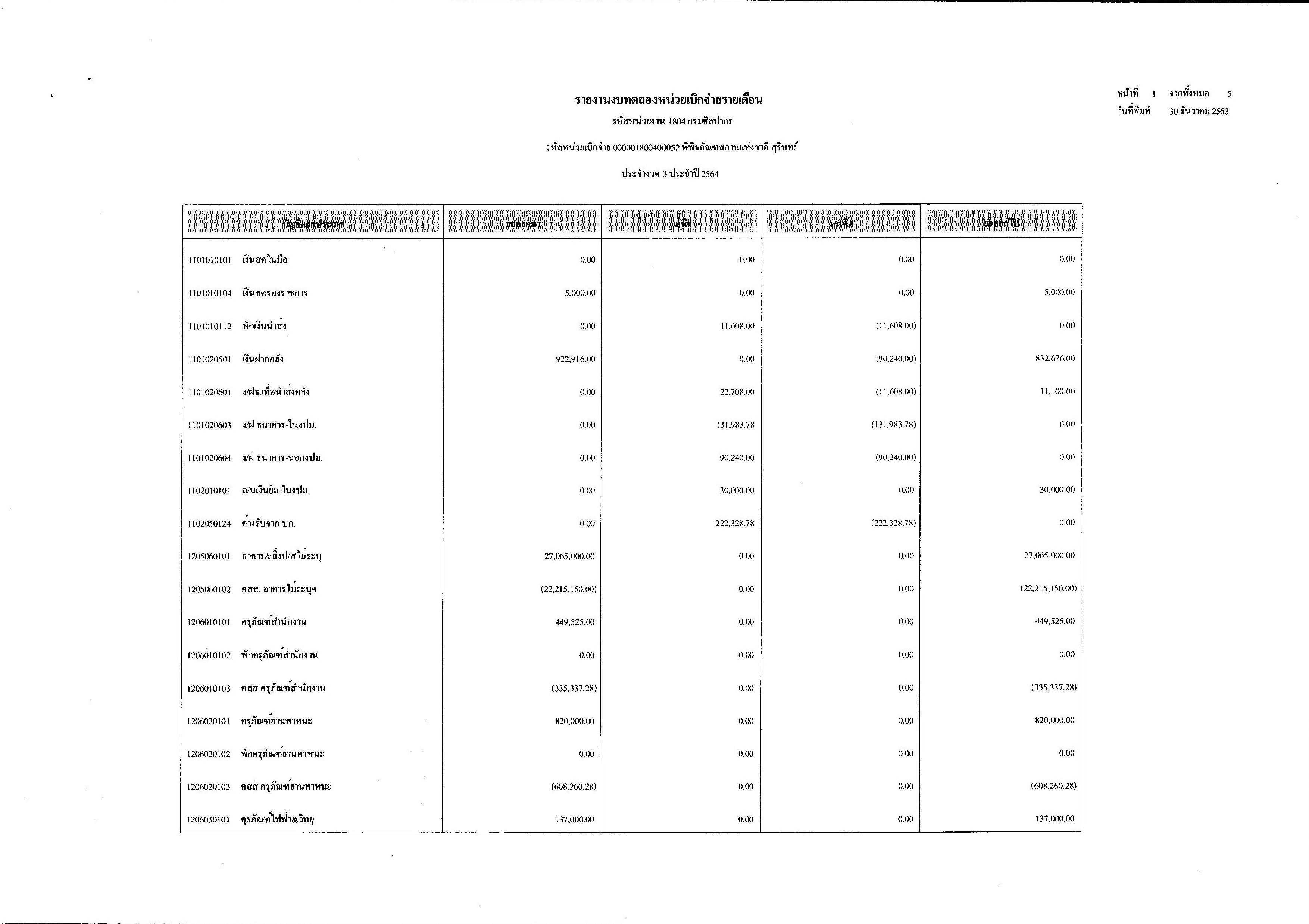 รายงานงบทดลองประจำเดือนธันวาคม พ.ศ. ๒๕๖๓