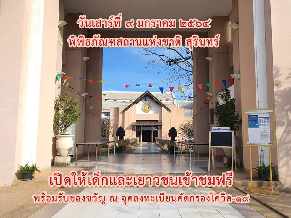 เนื่องจากสถานการณ์การแพร่ระบาดของเชื้อไวรัสโควิด - ๑๙ พิพิธภัณฑสถานแห่งชาติ สุรินทร์ จึงงดการจัดกิจกรรมวันเด็กแห่งชาติ ประจำปี พ.ศ. ๒๕๖๔ ในวันเสาร์ที่ ๙ มกราคม พ.ศ. ๒๕๖๔ แต่ยังคงเปิดให้เด็กและเยาวชนเข้าชมฟรี พร้อมมอบของขวัญสำหรับผู้เข้าชมนิทรรศการพิพิธภัณฑสถานแห่งชาติ สุรินทร์ โดยมีการปฏิบัติตามมาตรการป้องกันการแพร่ระบาดของเชื้อไวรัสโควิด - ๑๙ อย่างเคร่งครัด โดยมีผู้เข้าชมในวันนี้จำนวนทั้งสิ้น ๑๙๖ คน