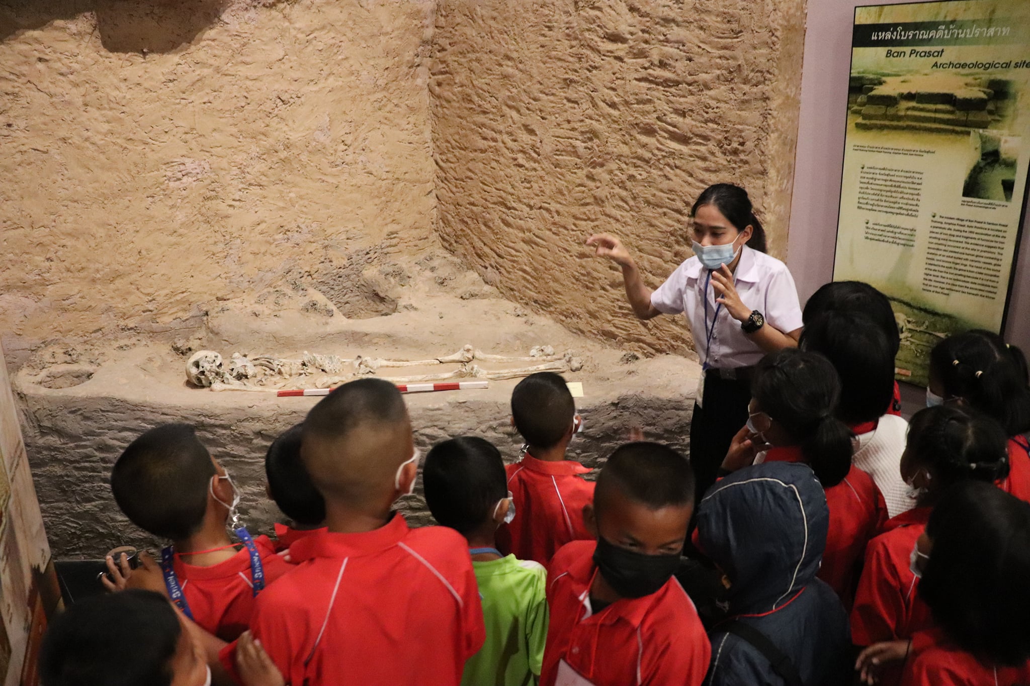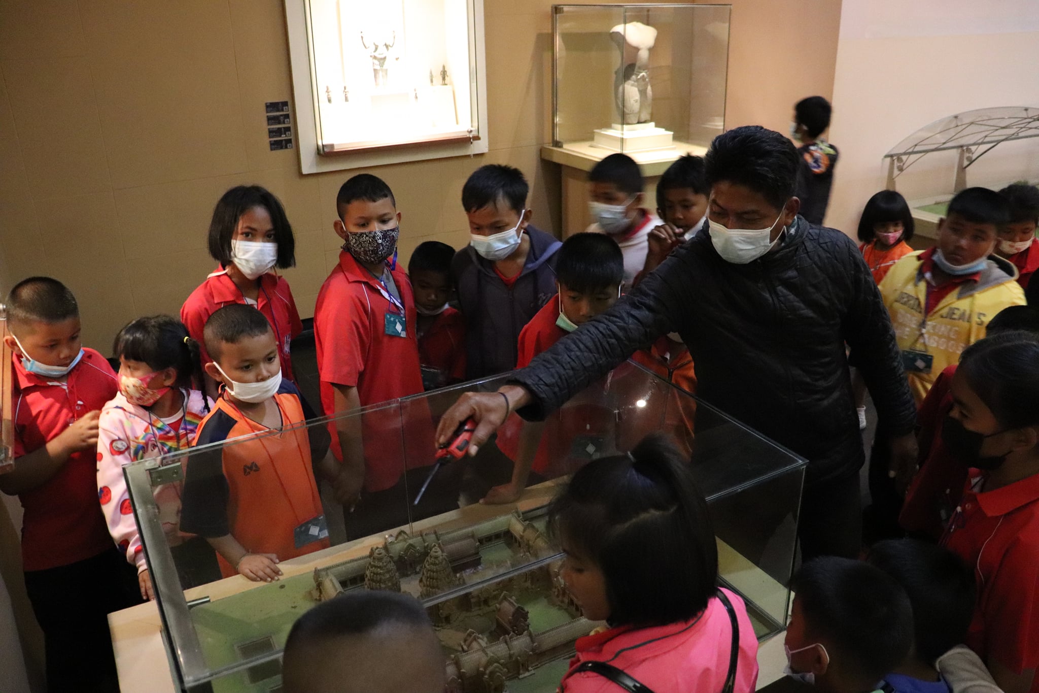 วันศุกร์ที่ ๒๙ มกราคม พ.ศ. ๒๕๖๔ เวลา ๑๑.๐๐ น. นักเรียนชั้นประถมศึกษาที่ ๑ - ๖ โรงเรียนบ้านหนองบัวมิตรภาพ ที่ ๘๕ ตำบลหนองบัว อำเภอท่าตูม จังหวัดสุรินทร์ จำนวนนักเรียน ๒๑๐ คน คุณครู ๑๕ คน เข้าเยี่ยมชมพิพิธภัณฑสถานแห่งชาติ สุรินทร์ โดยแบ่งการบรรยายนำชมออกเป็น ๗ กลุ่มย่อย เพื่อป้องกันการแพร่ระบาดของเชื้อโควิด - ๑๙ โดยมีนายกรภัทร์ สุขใหญ่ นางถนอม หลวงกลาง นางศรีสุด สีสด นายแก่นแก้ว หอมนวล พนักงานประจำพิพิธภัณฑ์ และน้องๆ นักศึกษาฝึกประสบการณ์วิชาชีพให้การต้อนรับและบรรยายนำชม
