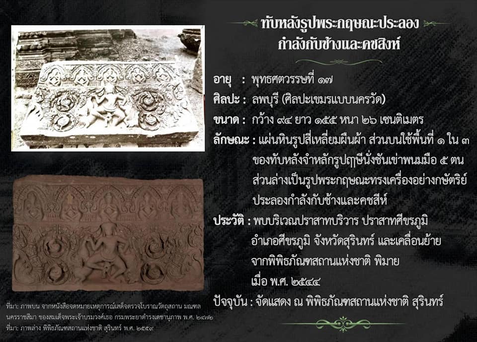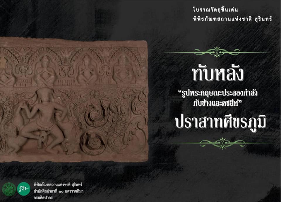 รัว รืง มืง สะเร็น สัปดาห์นี้ขอนำเสนอโบราณวัตถุชิ้นเด่น "ทับหลังปราสาทศีขรภูมิ จำหลักภาพพระกฤษณะประลองกำลังกับช้างและคชสีห์"