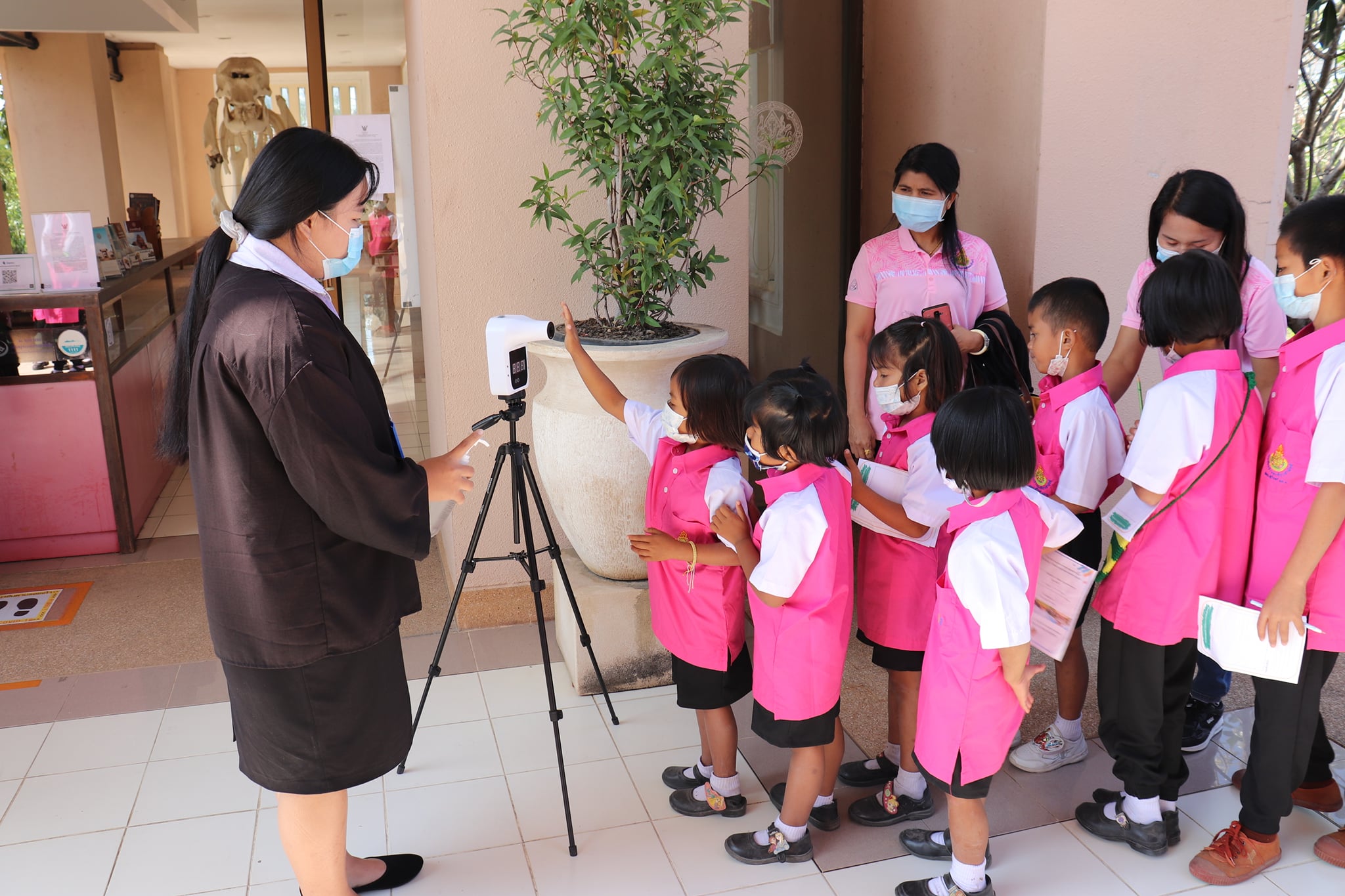 วันศุกร์ที่ ๑๙ กุมภาพันธ์ พ.ศ. ๒๕๖๔ เวลา ๐๙.๓๐ น. นักเรียนชั้นอนุบาล ๒ ถึงชั้นประถมศึกษาที่ ๖ โรงเรียนบ้านตะเคียนสามัคคี ตำบลตรมไพร อำเภอศีขรภูมิ จังหวัดสุรินทร์ จำนวนนักเรียน ๔๐ คน คุณครู ๙ คน เข้าเยี่ยมชมพิพิธภัณฑสถานแห่งชาติ สุรินทร์ โดยแบ่งการบรรยายนำชมออกเป็น ๓ กลุ่มย่อย เพื่อป้องกันการแพร่ระบาดของเชื้อโควิด - ๑๙ และปฏิบัติตามมาตรการป้องกันการแพร่ระบาดของเชื้อโควิด - ๑๙ โดยมี นางถนอม หลวงกลาง นางศรีสุดา ศรีสด และนายแก่นแก้ว หอมนวล พนักงานประจำพิพิธภัณฑ์ ให้การต้อนรับและบรรยายนำชม