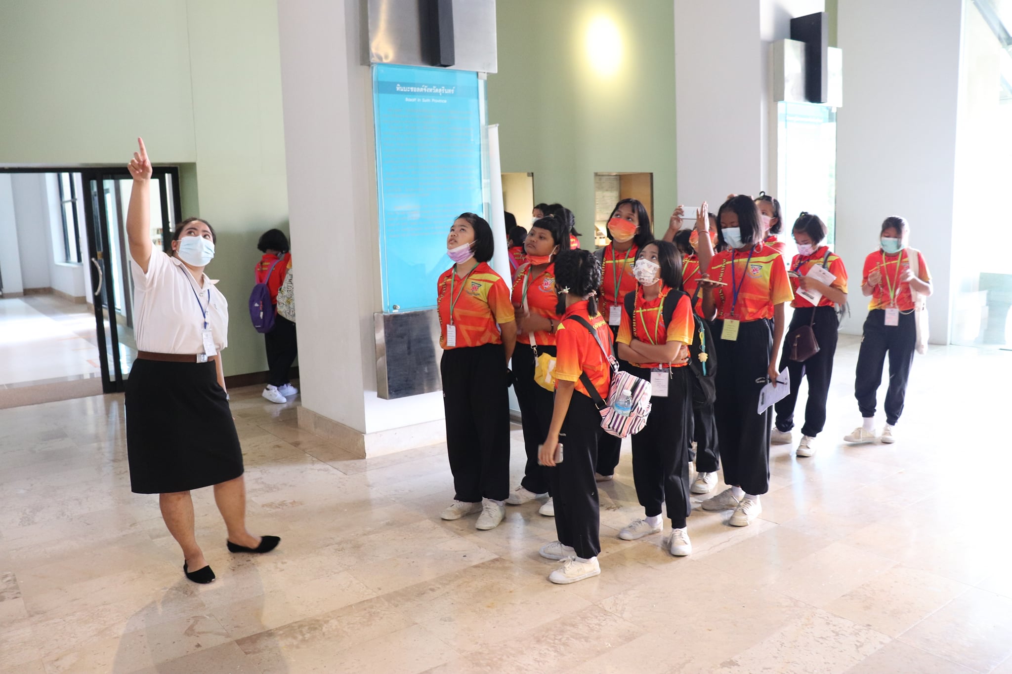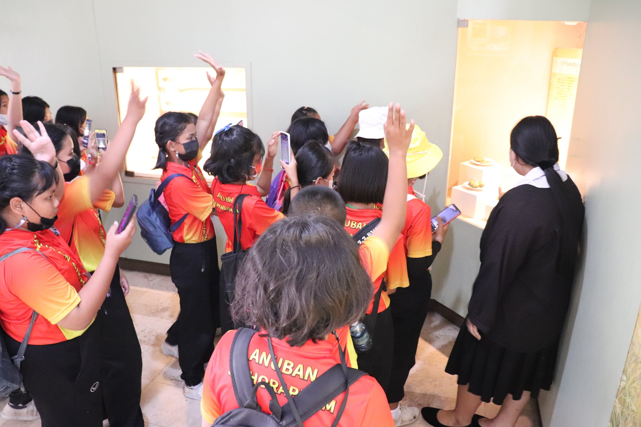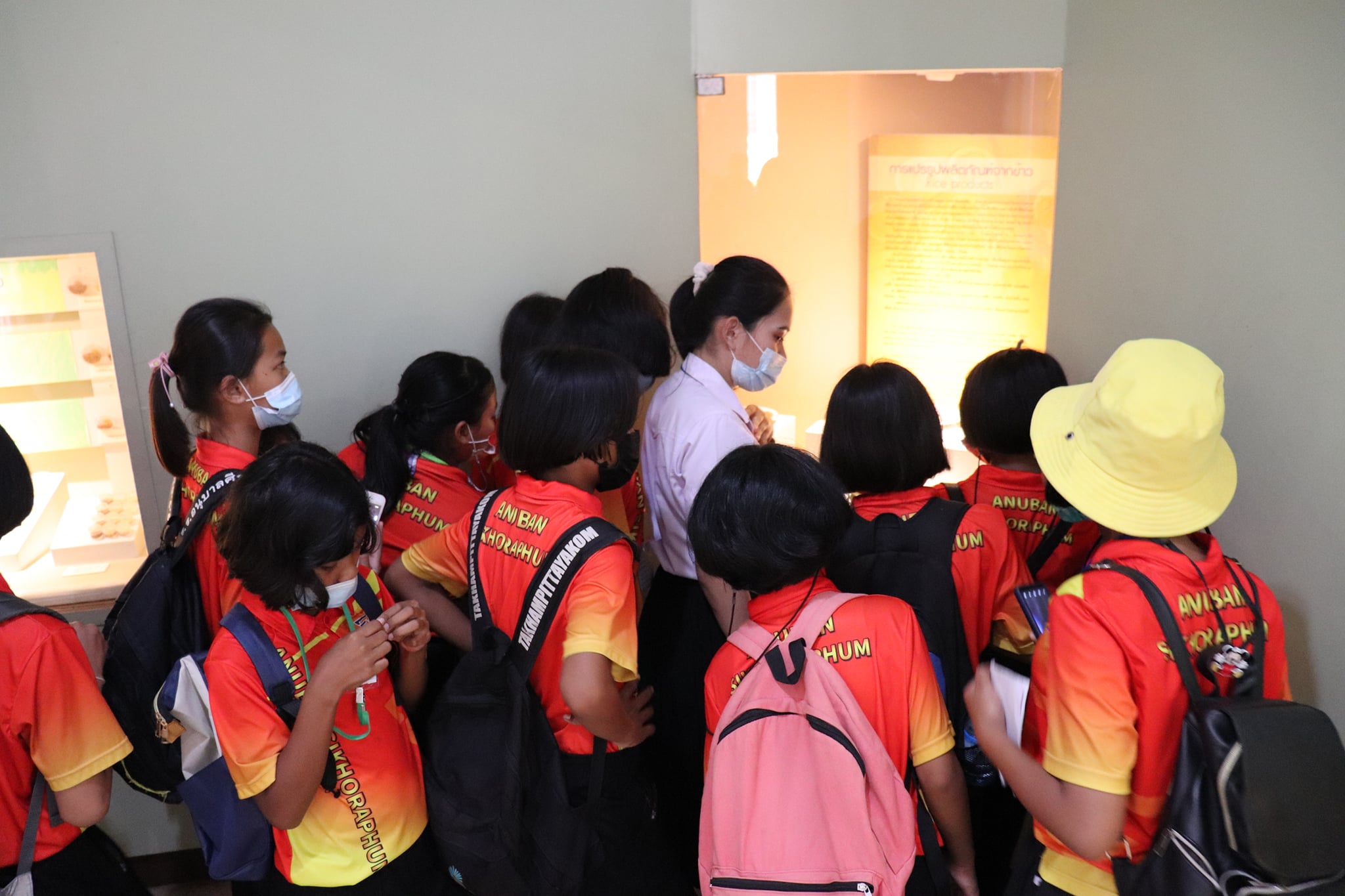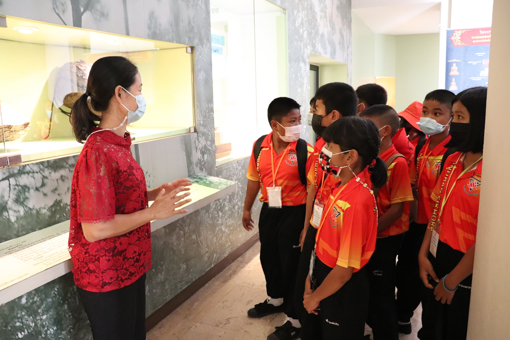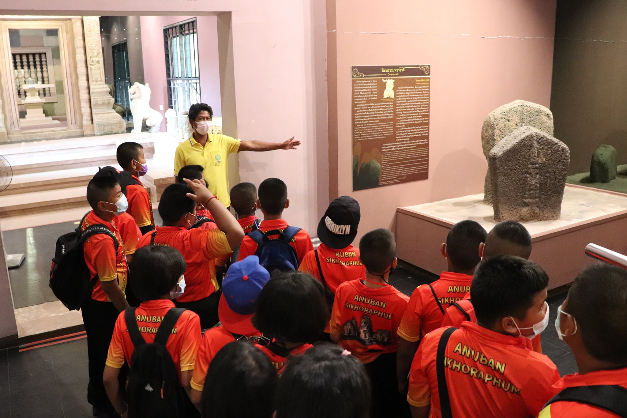 วันพุธที่ ๑๐ มีนาคม พ.ศ. ๒๕๖๔ เวลา ๑๐.๓๐ น. นักเรียนชั้นประถมศึกษาที่ ๕ โรงเรียนอนุบาลศีขรภูมิ ตำบลระแงง อำเภอศีขรภูมิ จังหวัดสุรินทร์ จำนวนนักเรียน ๑๕๐ คน คุณครู ๑๐ คน เข้าเยี่ยมชมพิพิธภัณฑสถานแห่งชาติ สุรินทร์ โดยแบ่งการบรรยายนำชมออกเป็น ๘ กลุ่มย่อย เพื่อป้องกันการแพร่ระบาดของเชื้อโควิด - ๑๙ โดยมีนางสาวอาภาภรณ์ เปล่งปลั่งศรี นักวิชาการวัฒธรรม นางถนอม หลวงกลาง นางศรีสุดา ศรีสด นางสาวอภิญญา สุขใหญ่ นายแก่นแก้ว หอมนวล พนักงานประจำพิพิธภัณฑ์ และน้องๆ นักศึกษาฝึกประสบการณ์วิชาชีพ ให้การต้อนรับและบรรยายนำชม