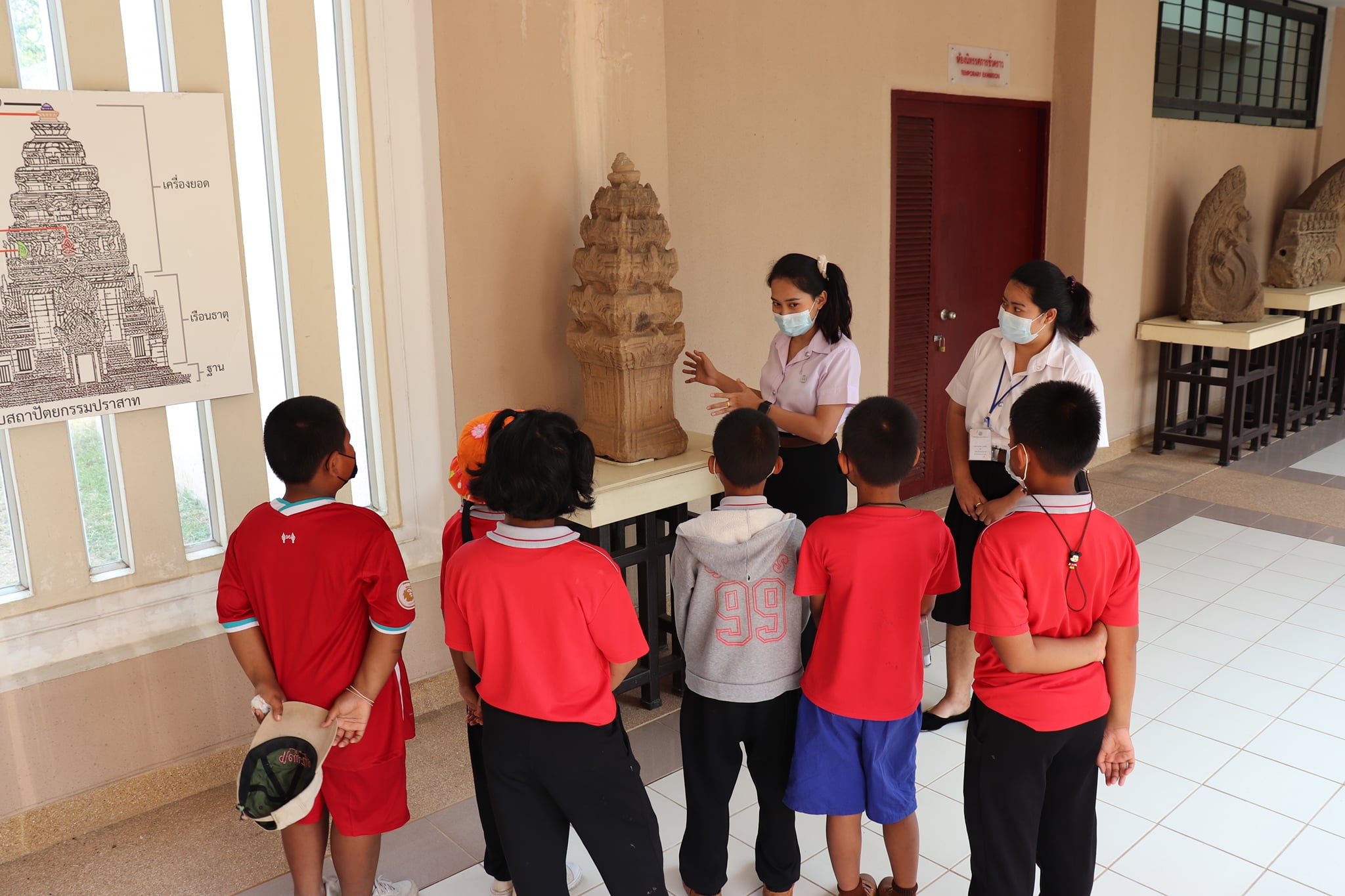 วันเสาร์ที่ ๑๓ มีนาคม พ.ศ. ๒๕๖๔ เวลา ๑๐.๐๐ น. นักเรียนชั้นประถมศึกษาที่ ๓ โรงเรียนบ้านกะเลาะศรีพัฒนา ตำบลหมื่นศรี อำเภอสำโรงทาบ จังหวัดสุรินทร์ จำนวนนักเรียน ๖ คน คุณครู ๑ คน เข้าเยี่ยมชมพิพิธภัณฑสถานแห่งชาติ สุรินทร์ โดยมีนางสาวอนงค์พร หอมไสย์และนางสาวอรปรียา แสงหัวช้าง นักศึกษาฝึกประสบการณ์วิชาชีพ ให้การต้อนรับและบรรยายนำชม