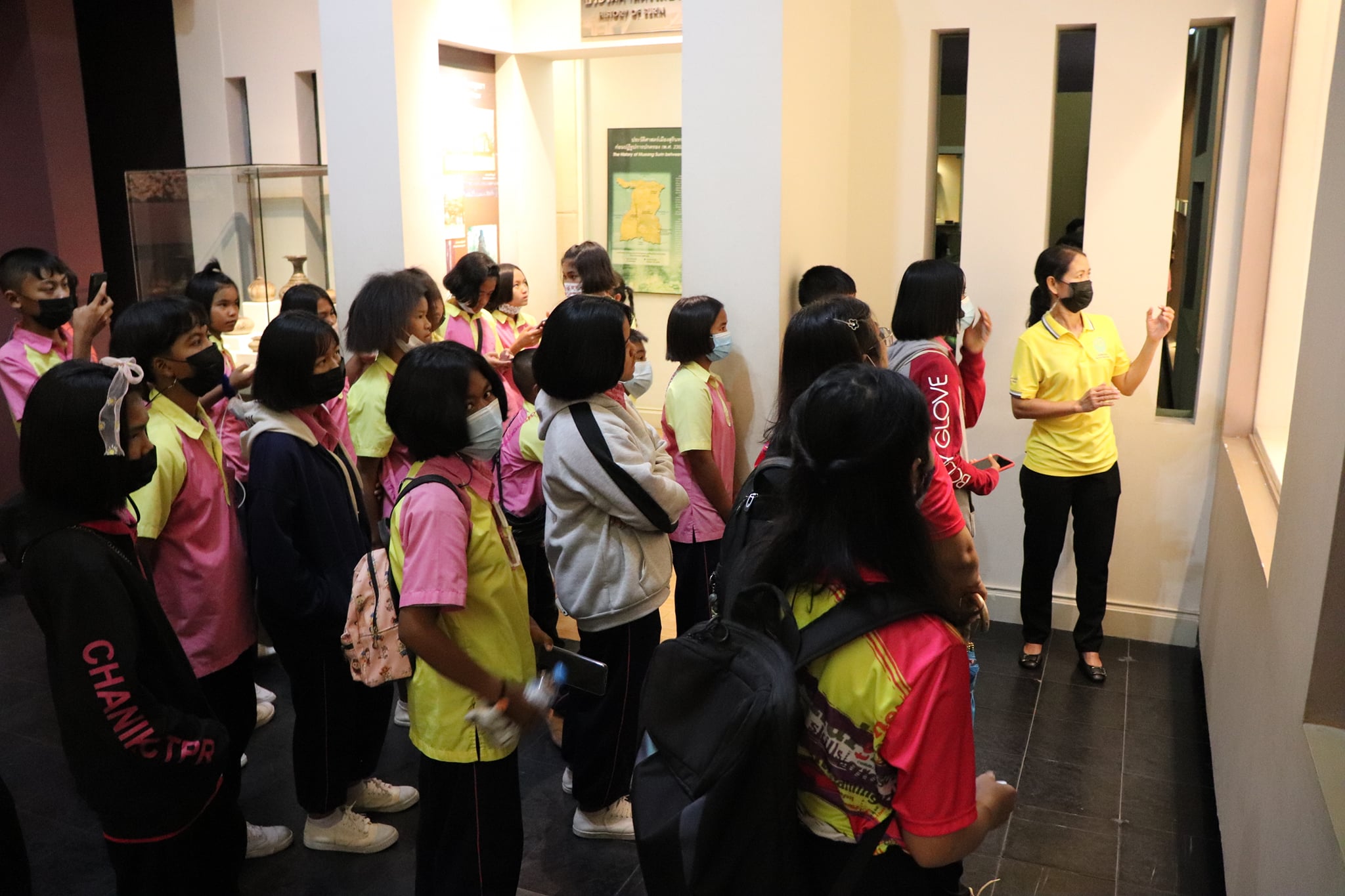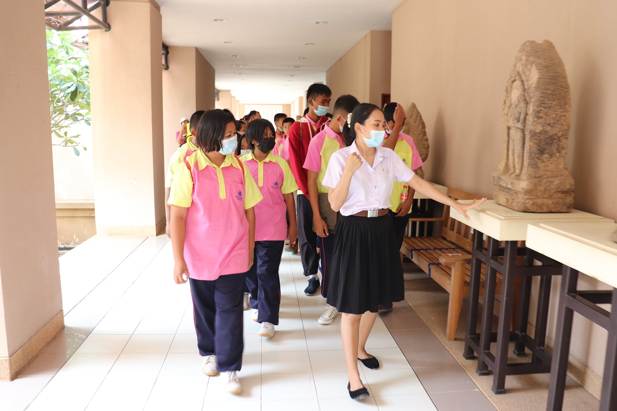 วันพุธที่ ๑๗ มีนาคม พ.ศ. ๒๕๖๔ เวลา ๑๐.๐๐ น. นักเรียนชั้นประถมศึกษาที่ ๔ ถึงชั้นมัธยมศึกษาที่ ๓ โรงเรียนบ้านนารุ่ง (ญาณมุนีราษฎร์สามัคคี) ตำบลนารุ่ง อำเภอศีขรภูมิ จังหวัดสุรินทร์ จำนวนนักเรียน ๑๖๐ คน คุณครู ๒๑ คน เข้าเยี่ยมชมพิพิธภัณฑสถานแห่งชาติ สุรินทร์ โดยแบ่งการบรรยายนำชมออกเป็น ๕ กลุ่มย่อย เพื่อป้องกันการแพร่ระบาดของเชื้อโควิด - ๑๙ โดยมีนางถนอม หลวงกลาง นางศรีสุดา ศรีสด นางสาวอภิญญา สุขใหญ่ พนักงานประจำพิพิธภัณฑ์ และนางสาวอนงค์พร หอมไสย์ นางสาวอรปรียา แสงหัวช้าง นักศึกษาฝึกประสบการณ์วิชาชีพ ให้การต้อนรับและบรรยายนำชม