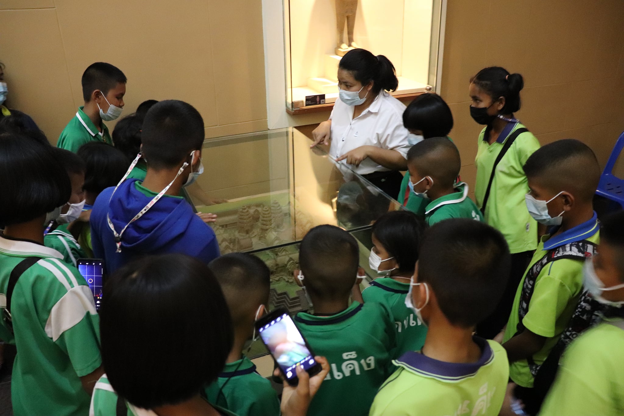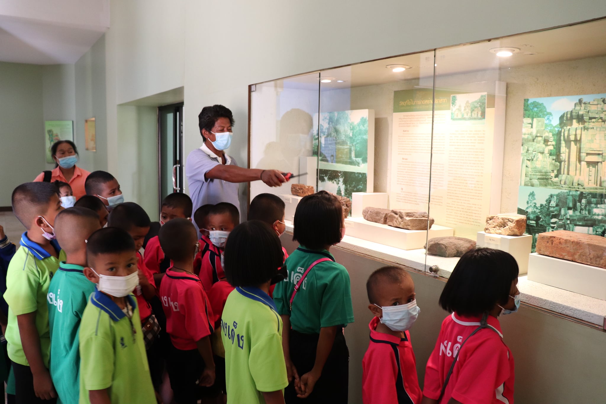 วันพฤหัสบดีที่ ๒๕ มีนาคม พ.ศ. ๒๕๖๔ เวลา ๑๔.๓๐ น. นักเรียนชั้นอนุบาล ๑ ถึงชั้นประถมศึกษาที่ ๖ โรงเรียนบ้านดงเค็ง ตำบลกุดขาคีม อำเภอรัตนบุรี จังหวัดสุรินทร์ จำนวนนักเรียน ๗๐ คน คุณครู ๑๐ คน เข้าเยี่ยมชมพิพิธภัณฑสถานแห่งชาติ สุรินทร์ โดยแบ่งการบรรยายนำชมออกเป็น ๓ กลุ่มย่อย เพื่อป้องกันการแพร่ระบาดของเชื้อโควิด - ๑๙ โดยมีนายแก่นแก้ว หอมนวล พนักงานประจำพิพิธภัณฑ์ และน้องๆนักศึกษาฝึกประสบการณ์วิชาชีพ ให้การต้อนรับและบรรยายนำชม