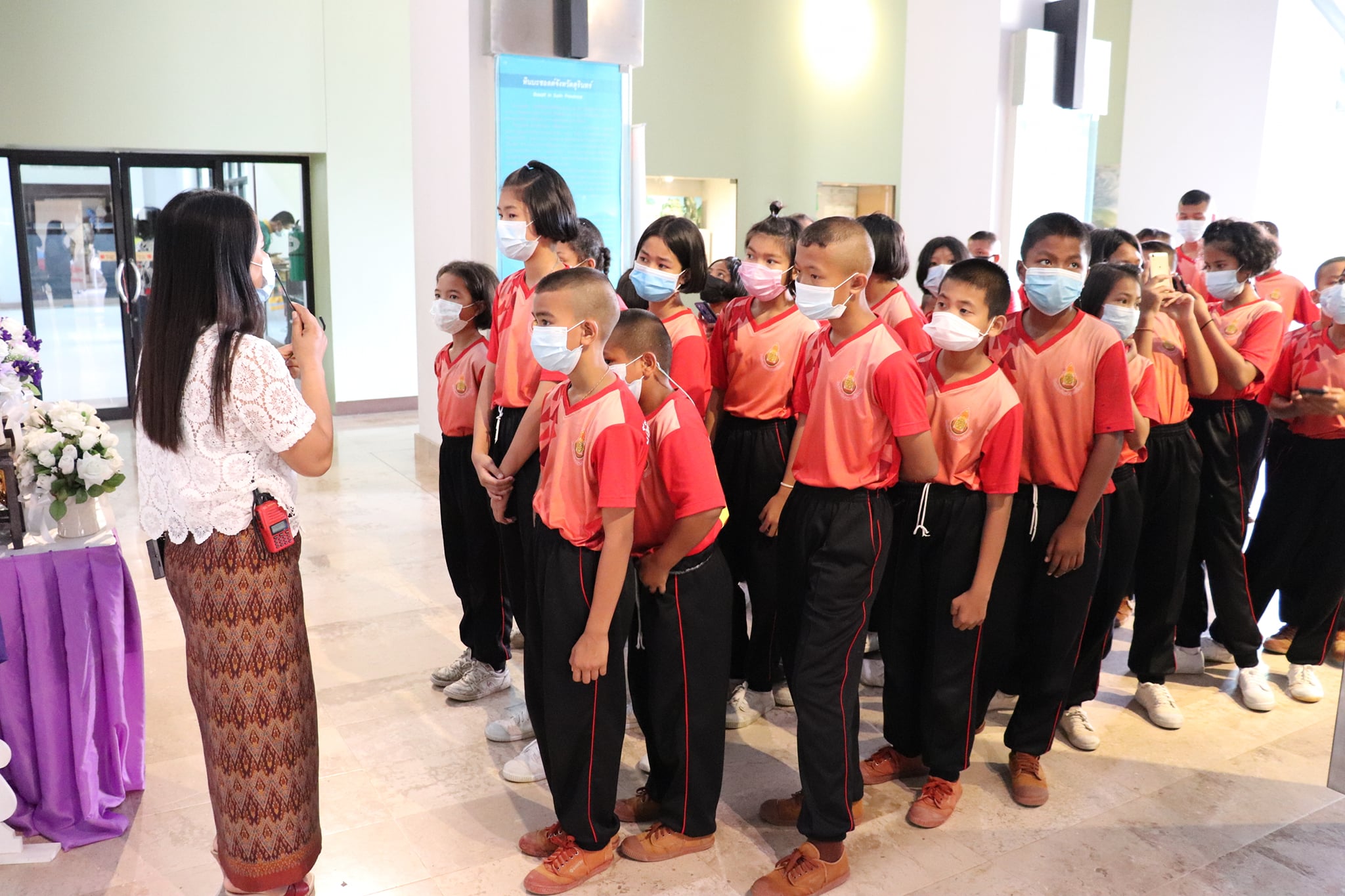 วันพุธที่ ๓๑ มีนาคม พ.ศ. ๒๕๖๔ เวลา ๑๐.๐๐ น. นักเรียนชั้นประถมศึกษาที่ ๑ - ๖ โรงเรียนบ้านหนองบัวแดง ตำบลโพนโก อำเภอสนม จังหวัดสุรินทร์ จำนวนนักเรียน ๙๖ คน คุณครู ๑๐ คน เข้าเยี่ยมชมพิพิธภัณฑสถานแห่งชาติ สุรินทร์ โดยแบ่งการบรรยายนำชมออกเป็น ๒ กลุ่มย่อย เพื่อป้องกันการแพร่ระบาดของเชื้อโควิด - ๑๙ โดยมีนางถนอม หลวงกลาง และนางศรีสุดา ศรีสด พนักงานประจำพิพิธภัณฑ์ ให้การต้อนรับและบรรยายนำชม