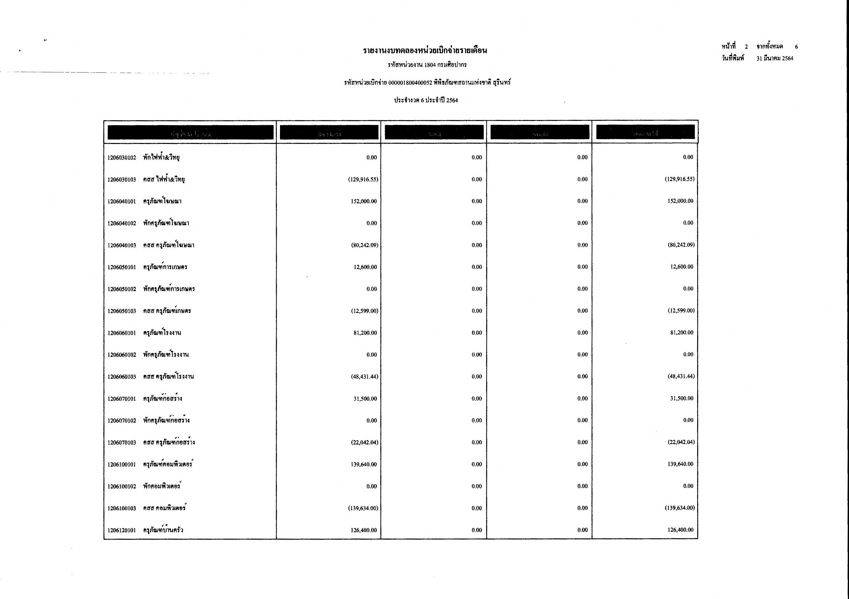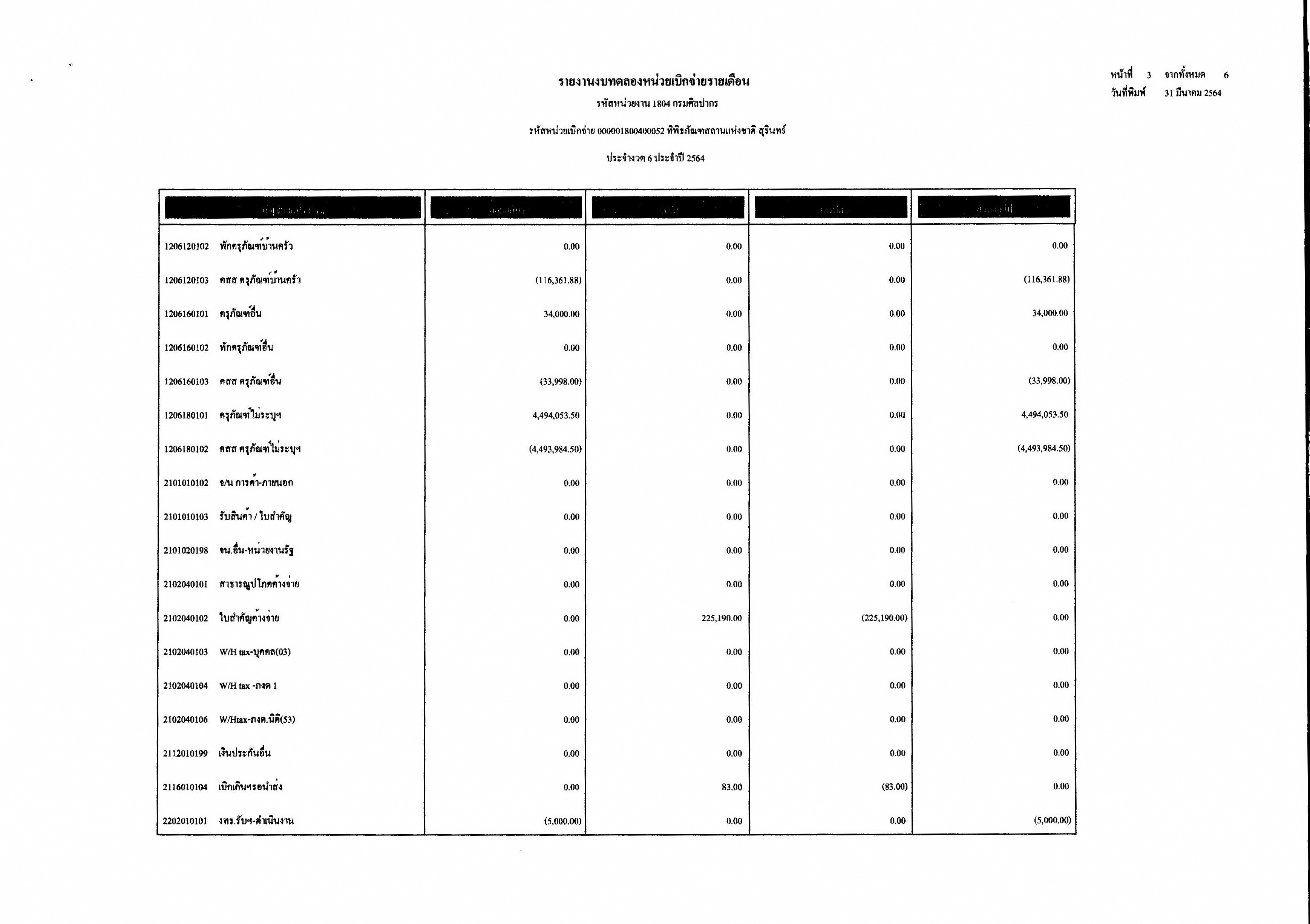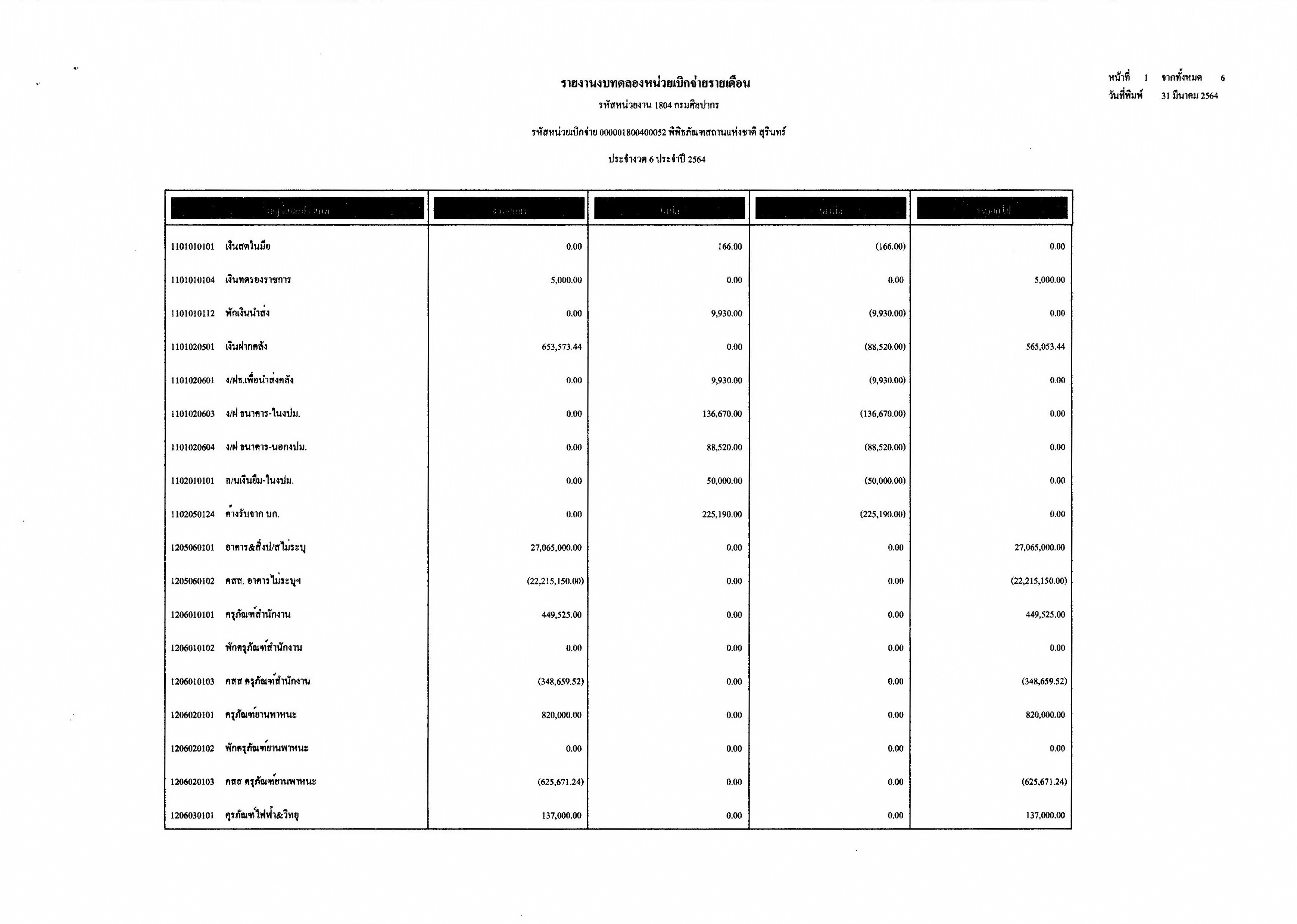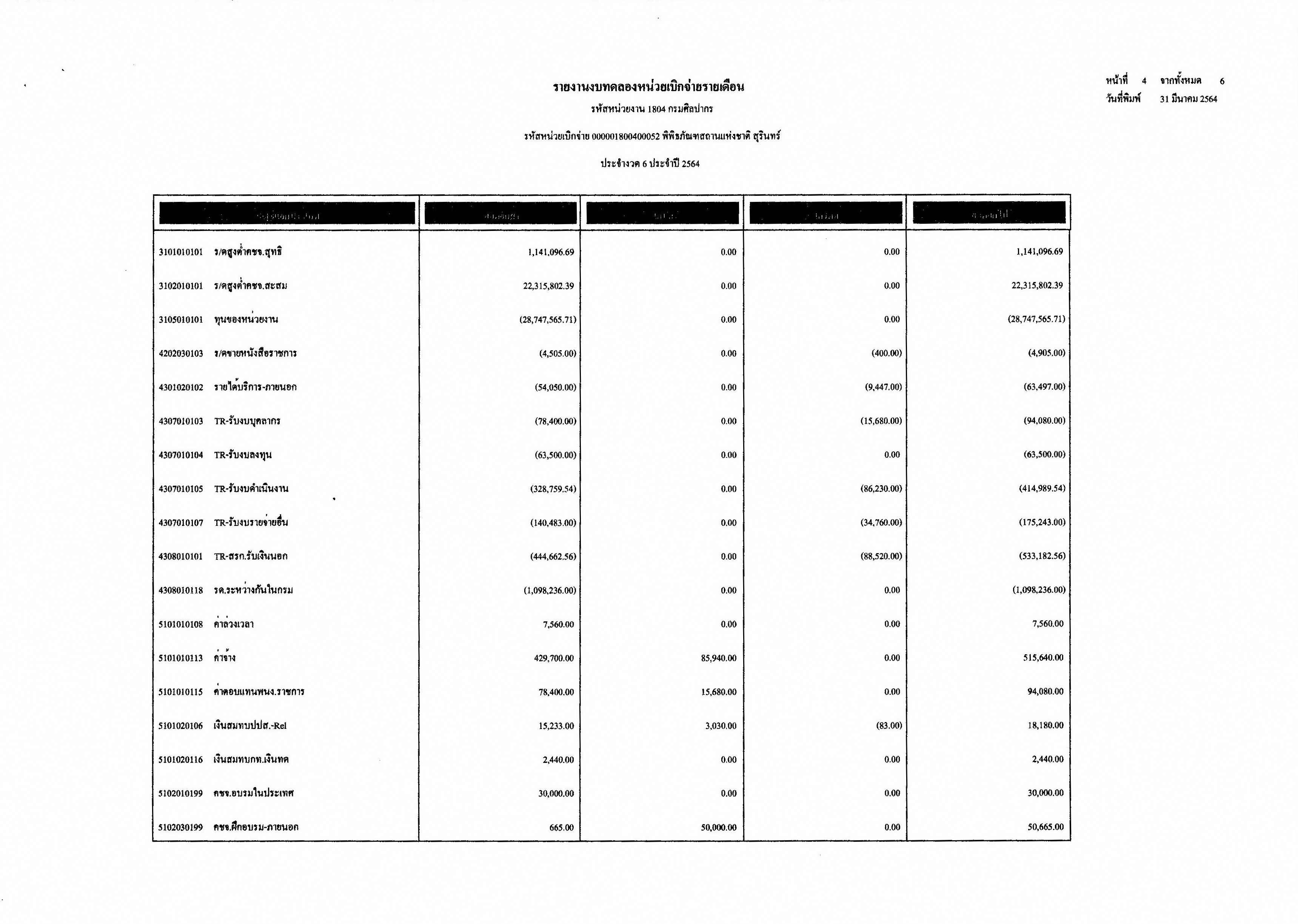 งบทดลองประจำเดือนมีนาคม พ.ศ. ๒๕๖๔