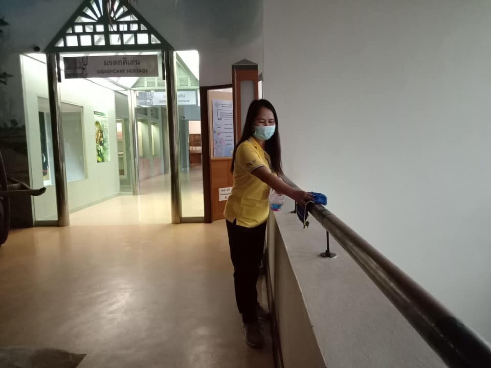 พิพิธภัณฑสถานแห่งชาติ สุรินทร์ จัดกิจกรรม " Big Cleaning Day " ประจำวันอาทิตย์ที่ ๑๑ เมษายน ๒๕๖๔ โดยการทำความสะอาดด้วยน้ำยาฆ่าเชื้อภายในห้องจัดแสดง สำนักงาน และบริเวณโดยรอบ เพื่อป้องกันการแพร่ระบาดของโรคโควิด - ๑๙
