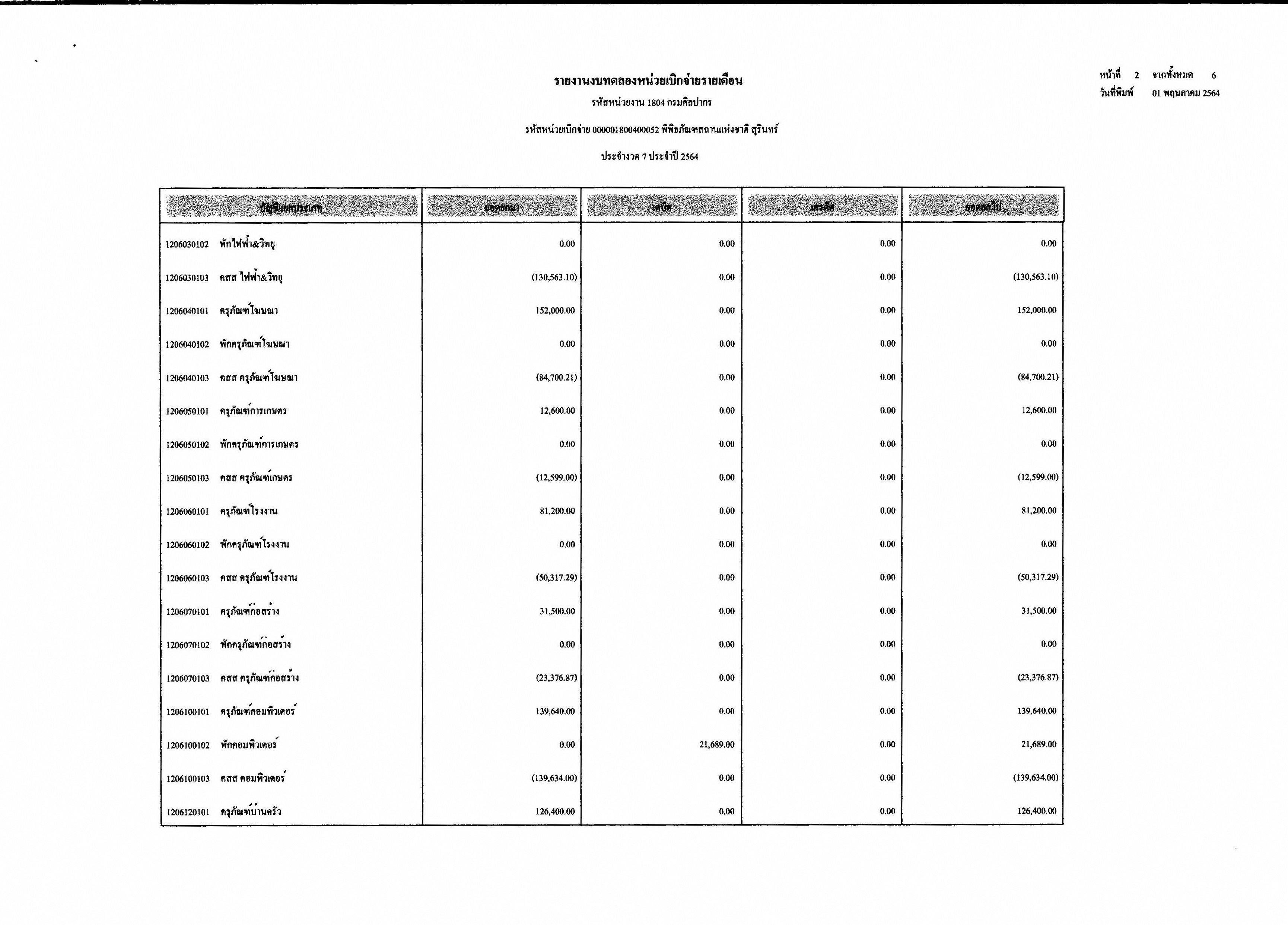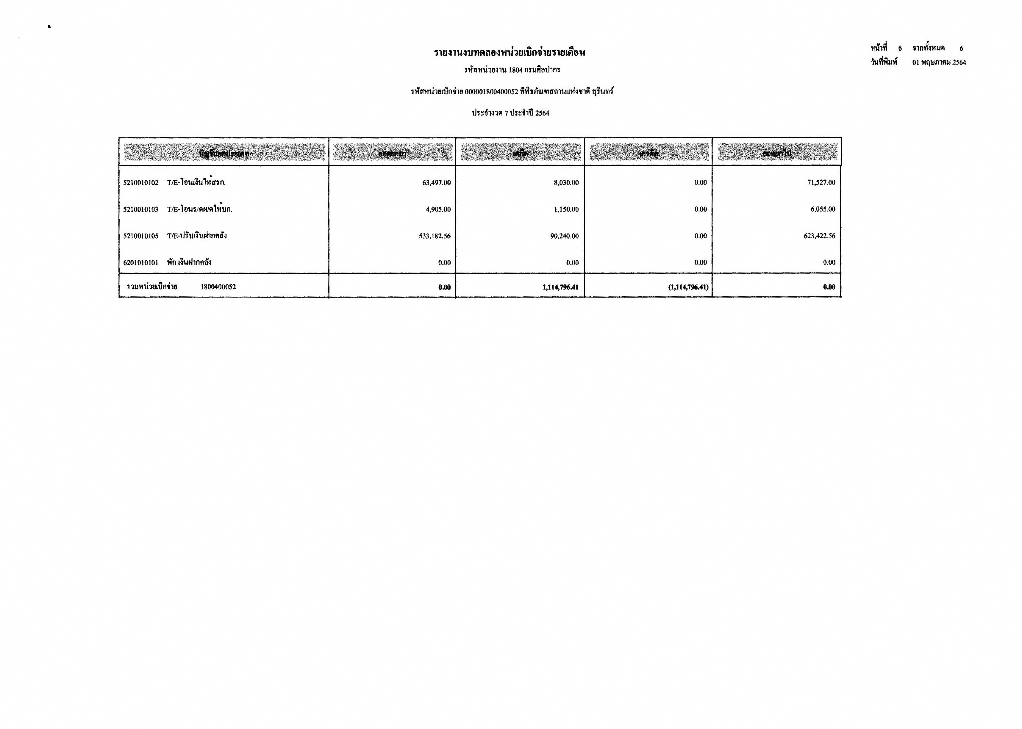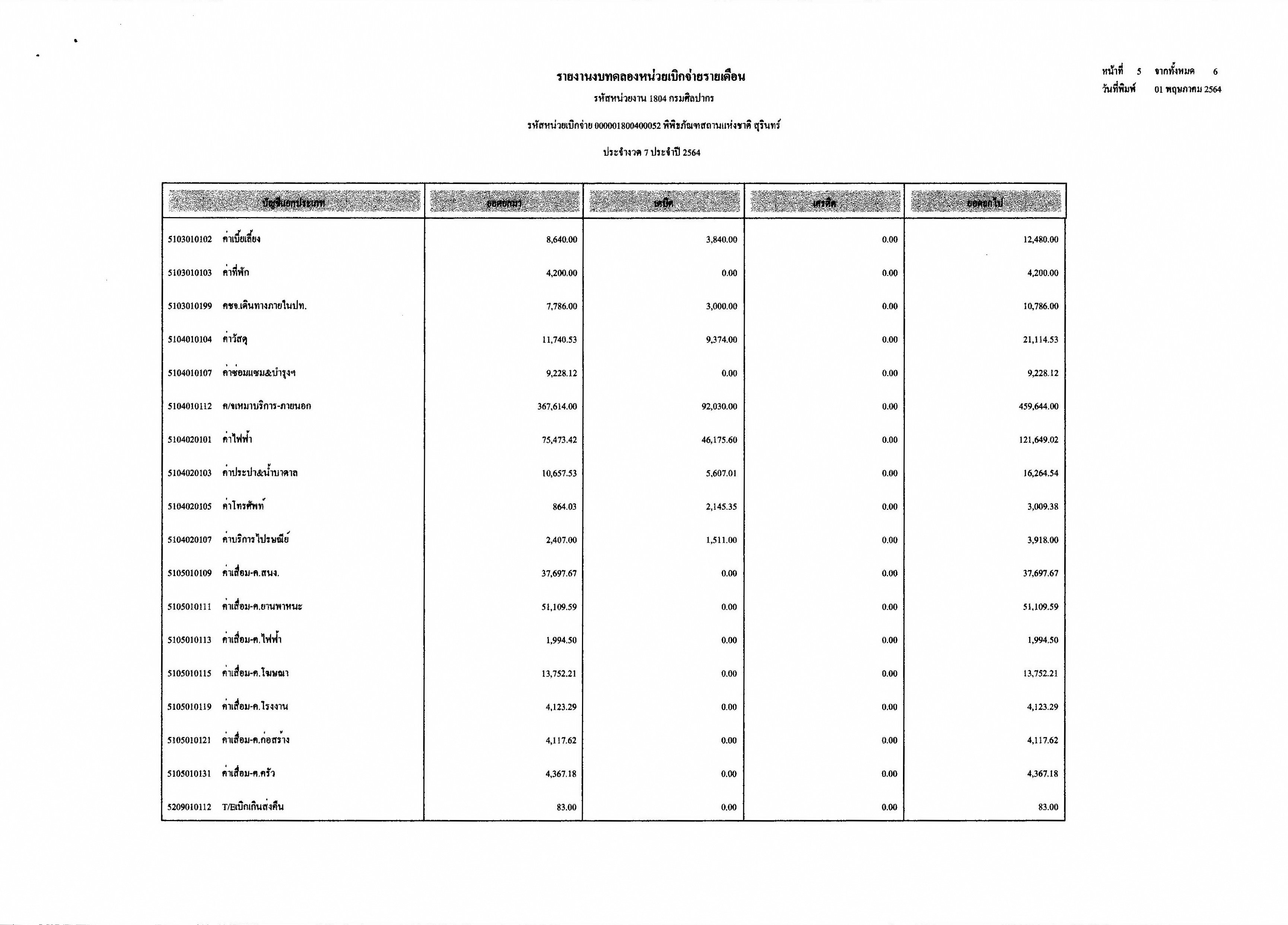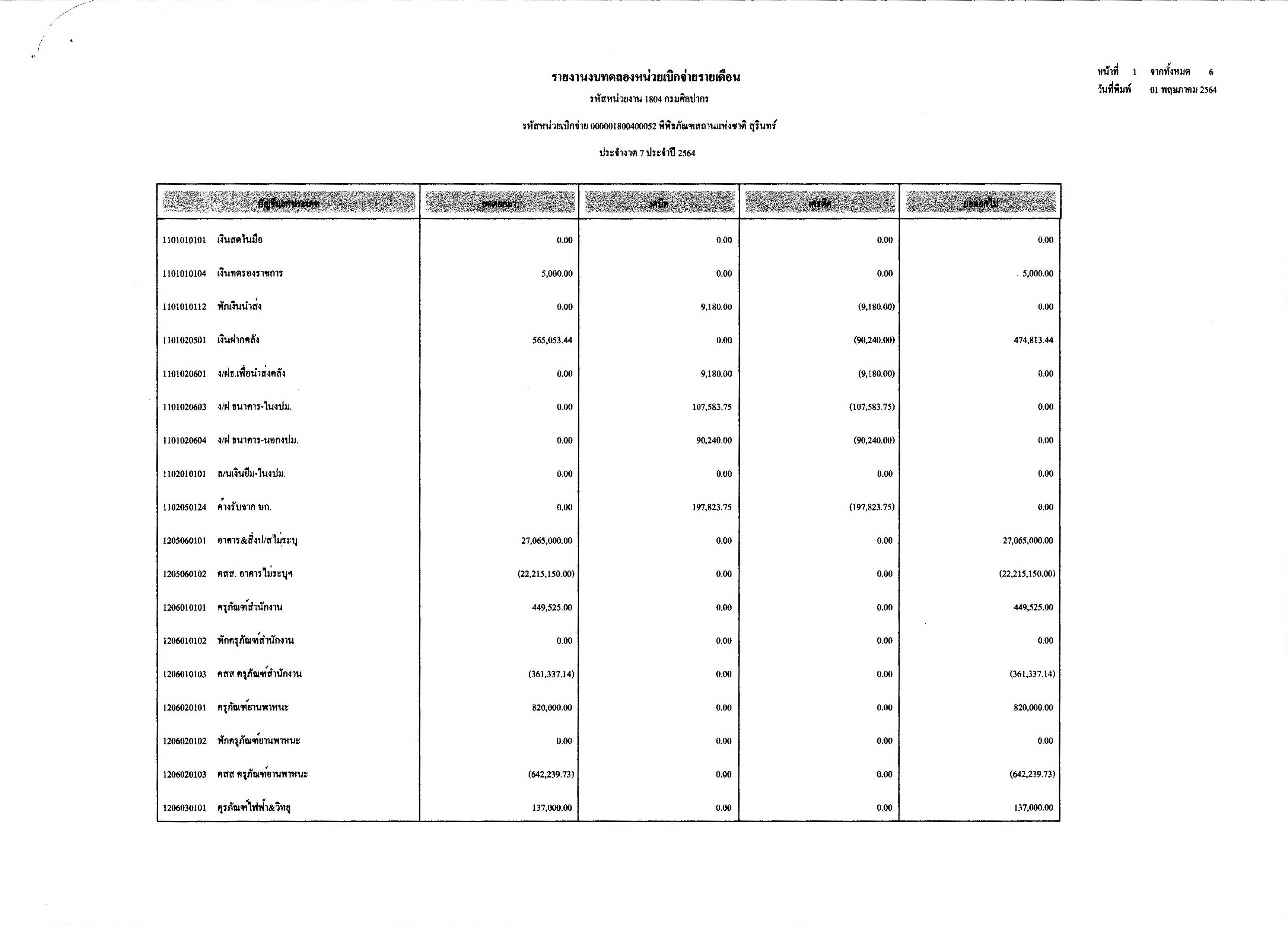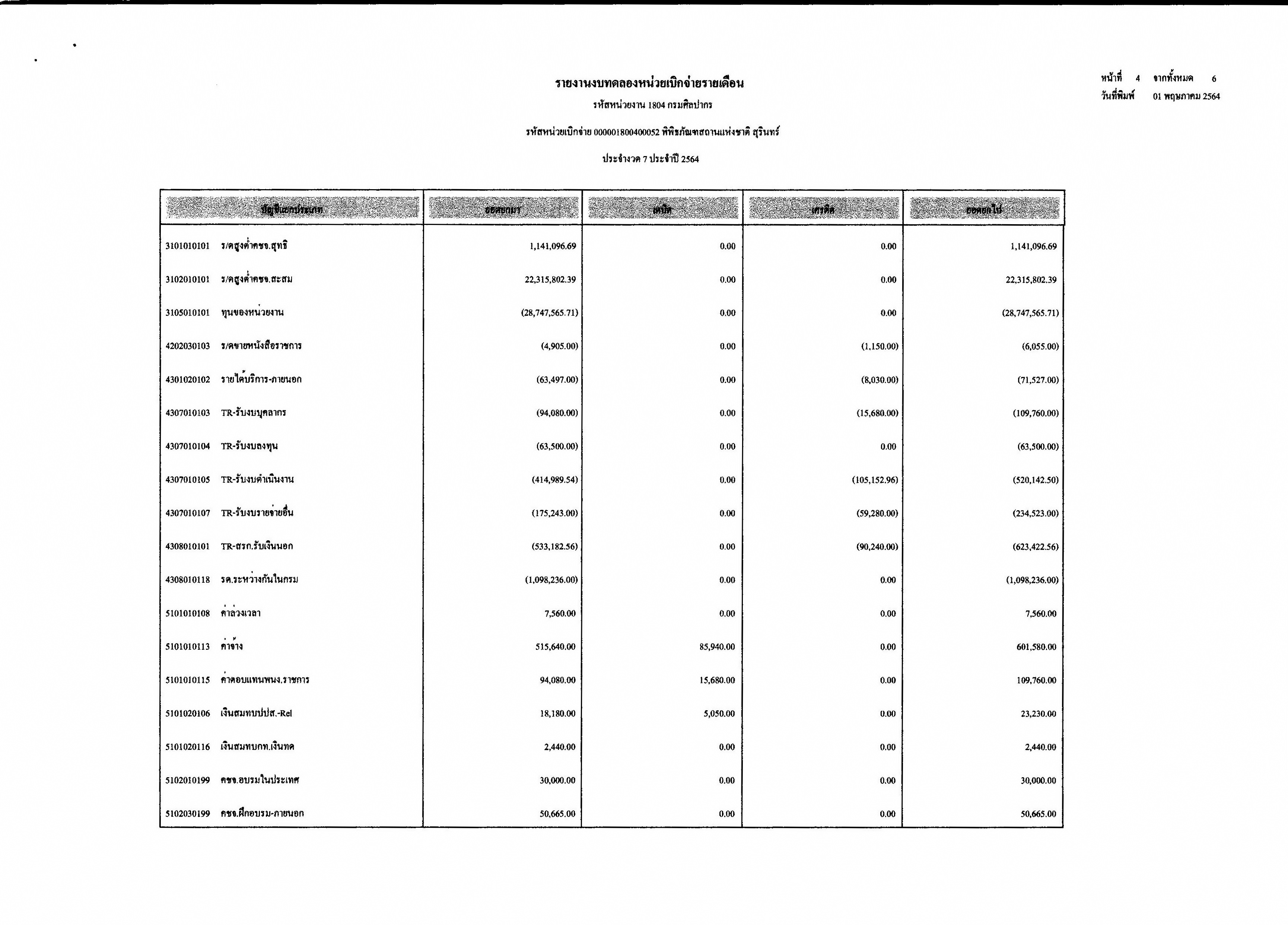 รายงานงบทดลองประจำเดือนเมษายน ๒๕๖๔