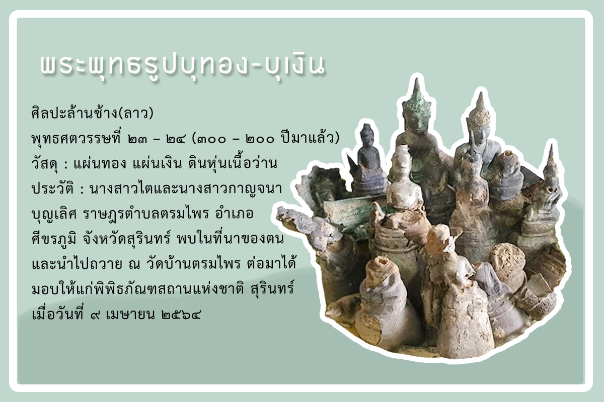 เรื่อง พระพุทธรูปบุทอง-บุเงิน : โบราณวัตถุค้นพบใหม่ของจังหวัดสุรินทร์