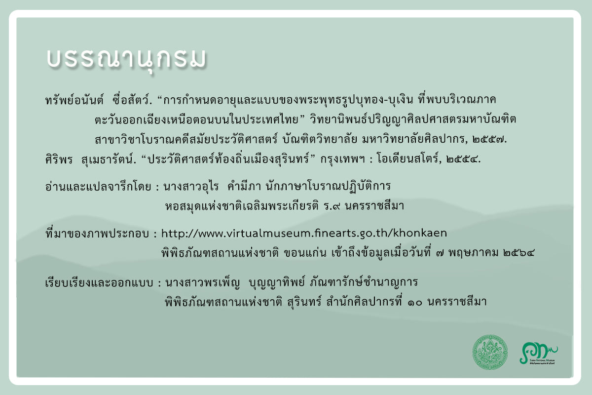 อ่านและแปลจารึกโดย : นางสาวอุไร คำมีภา นักภาษาโบราณปฏิบัติการ หอสมุดแห่งชาติเฉลิมพระเกียรติ ร.๙ นครราชสีมา