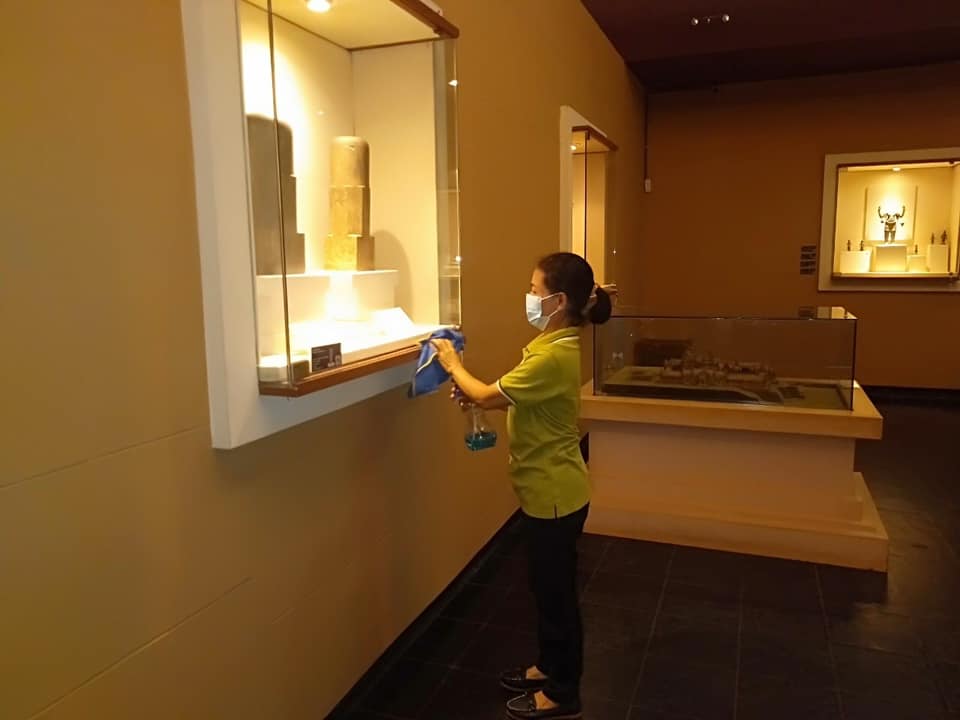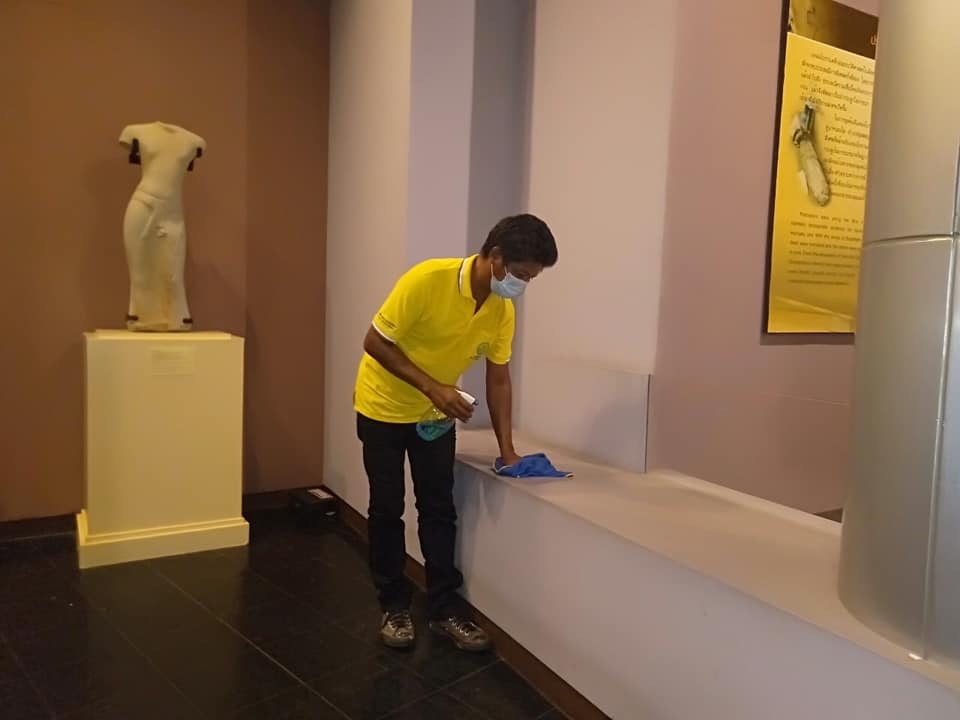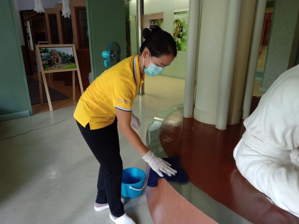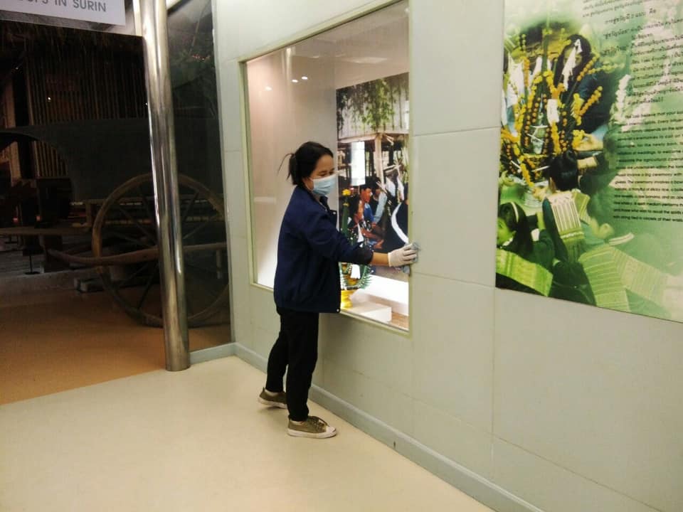 วันอาทิตย์ที่ ๖ มิถุนายน พ.ศ. ๒๕๖๔ เจ้าหน้าที่พิพิธภัณฑสถานแห่งชาติ สุรินทร์ ได้จัดกิจกรรมทำความสะอาดหลังจากเปิดให้บริการประชาชนและนักท่องเที่ยว ในส่วนบริการข้อมูลข่าวสารสำนักงาน ห้องจัดแสดงนิทรรศการ และบริเวณของพิพิธภัณฑสถานแห่งชาติ สุรินทร์ เพื่อฆ่าเชื้อและป้องกันการแพร่ระบาดของเชื้อไวรัสโคโรน่า - ๒๐๑๙