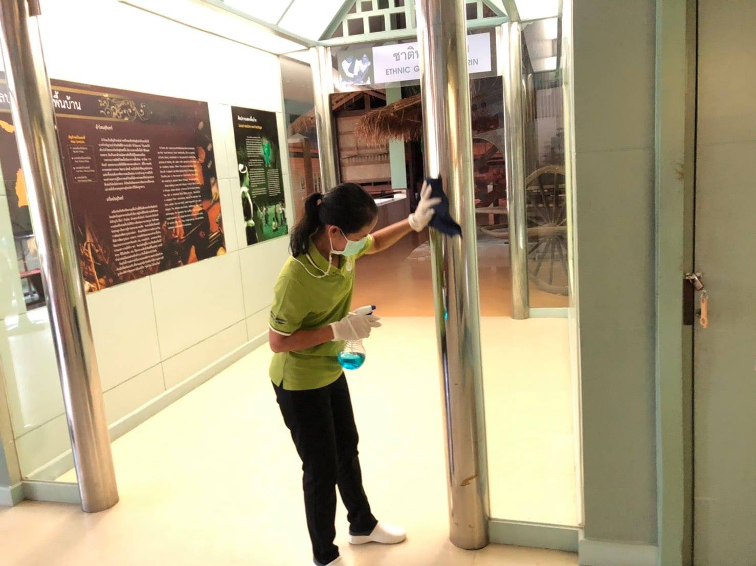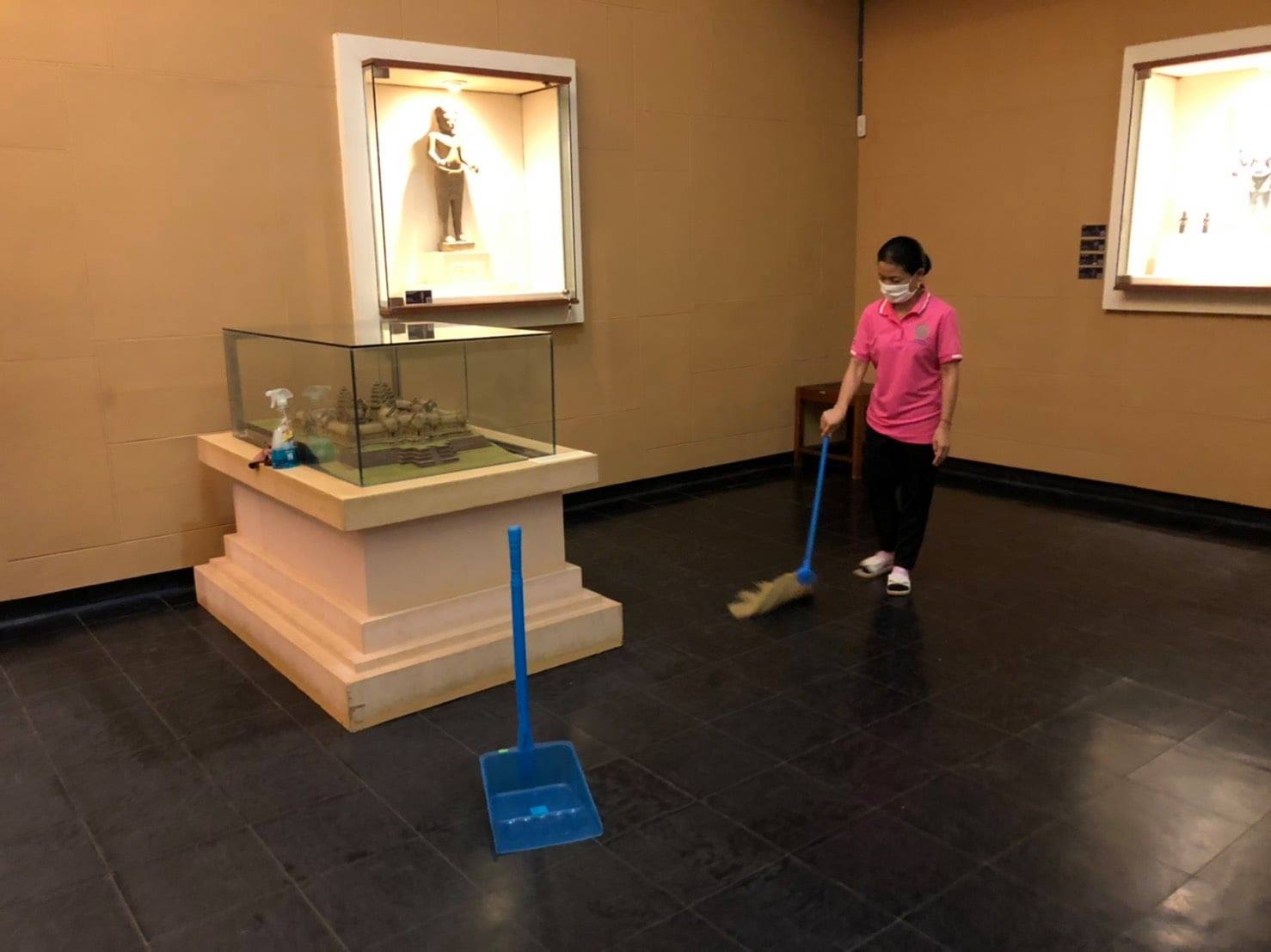 กิจกรรม " Cleaning Day " ประจำวันอาทิตย์ที่ ๒๗ มิถุนายน พ.ศ. ๒๕๖๔ เจ้าหน้าที่พิพิธภัณฑสถานแห่งชาติ สุรินทร์ ร่วมกันทำความสะอาดเพื่อป้องกันการแพร่ระบาดของเชื้อโควิด - ๑๙ หลังปิดบริการให้ประชาชนและนักท่องเที่ยวเข้าชมนิทรรศการ