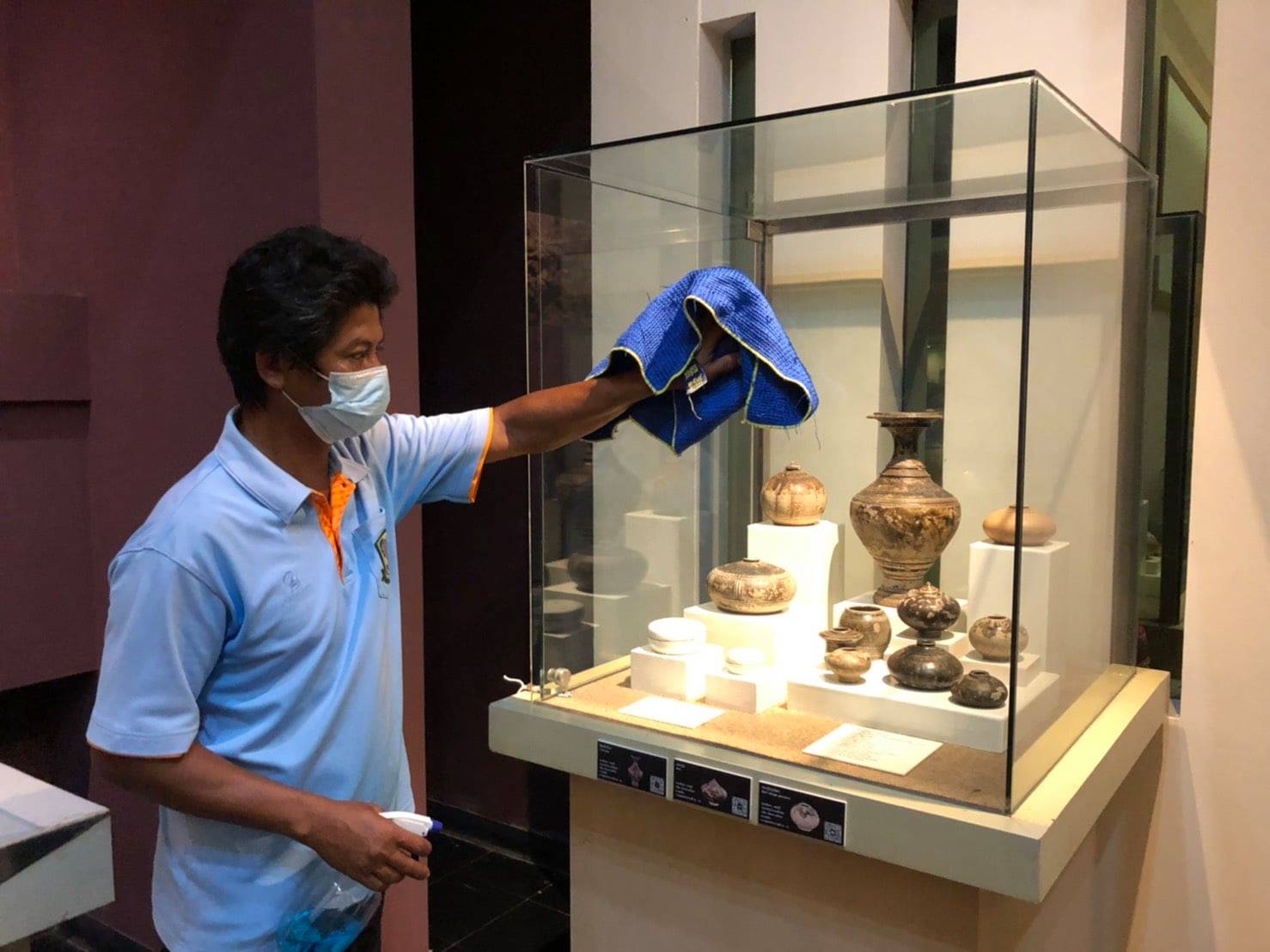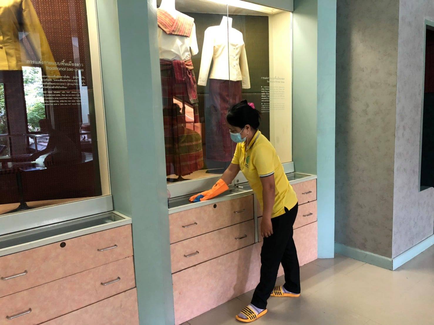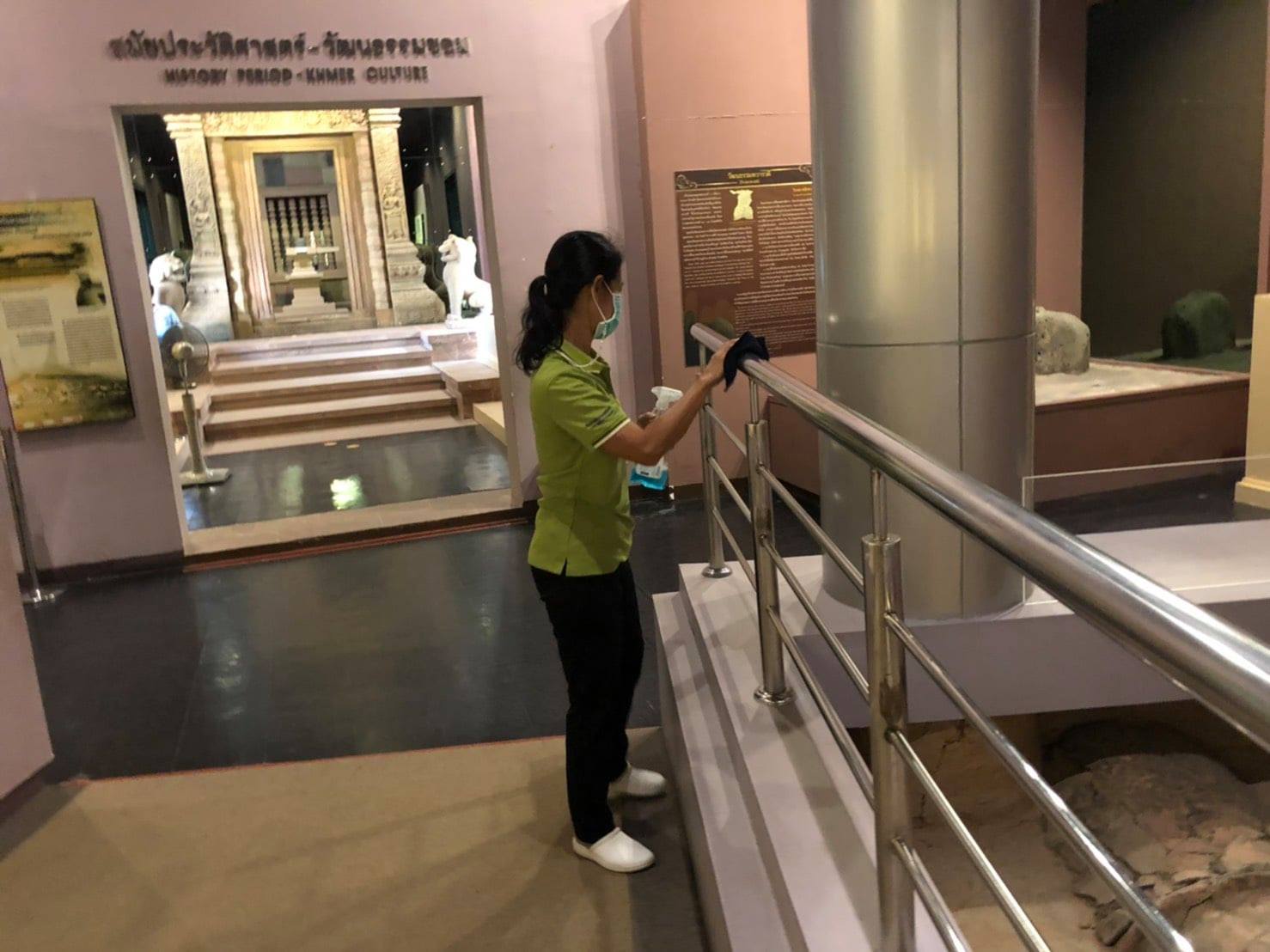 กิจกรรม " Cleaning Day " ประจำวันอาทิตย์ที่ ๑๑ กรกฎาคม พ.ศ. ๒๕๖๔ เจ้าหน้าที่พิพิธภัณฑสถานแห่งชาติ สุรินทร์ ร่วมกันทำความสะอาดเพื่อป้องกันการแพร่ระบาดของเชื้อโควิด - ๑๙ หลังปิดบริการให้ประชาชนและนักท่องเที่ยวเข้าชมนิทรรศการ