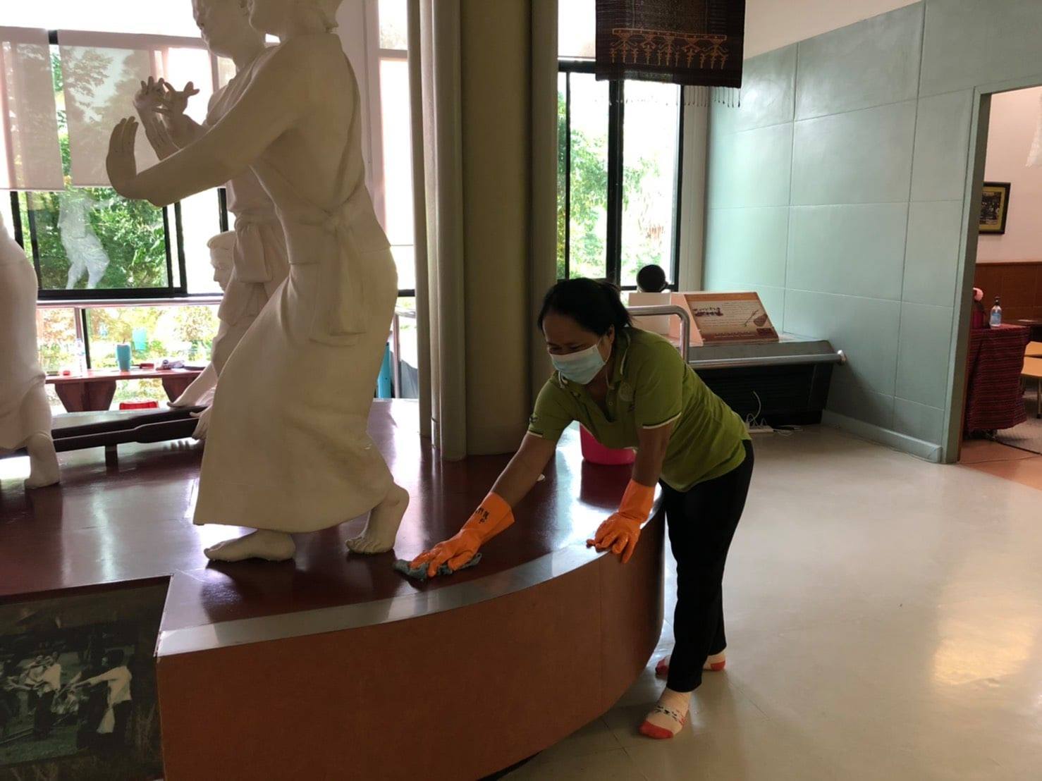 กิจกรรม " Cleaning Day " ประจำวันอาทิตย์ที่ ๑ สิงหาคม พ.ศ. ๒๕๖๔ เจ้าหน้าที่พิพิธภัณฑสถานแห่งชาติ สุรินทร์ ทำความสะอาดห้องจัดแสดงนิทรรศการและบริเวณโดยรอบพิพิธภัณฑสถานแห่งชาติ สุรินทร์ เพื่อป้องกันการแพร่ระบาดของเชื้อโควิด - ๑๙ ตามมาตรการของกรมศิลปากร