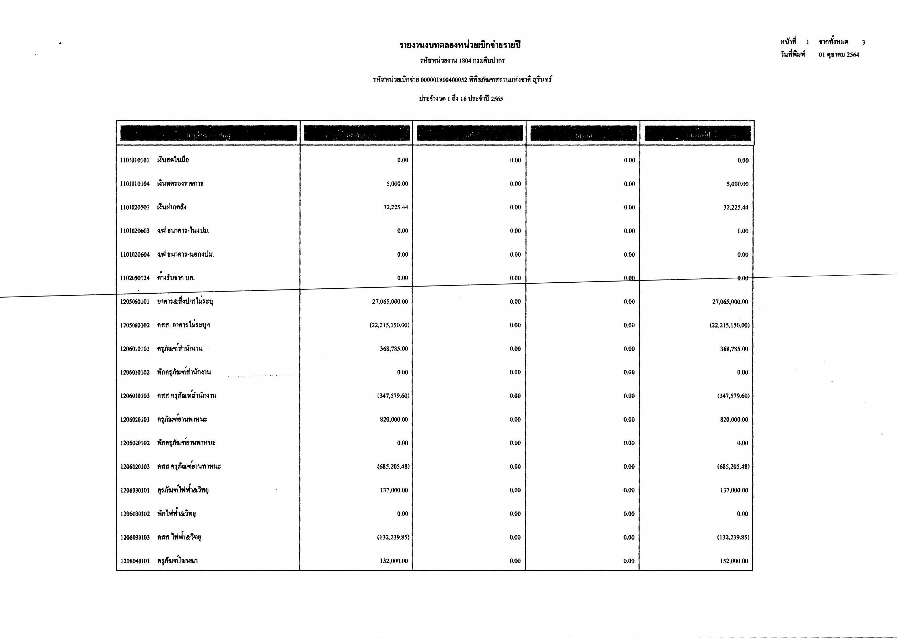 รายงานงบทดลองประจำเดือนกันยายน พ.ศ. ๒๕๖๔