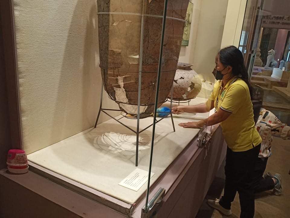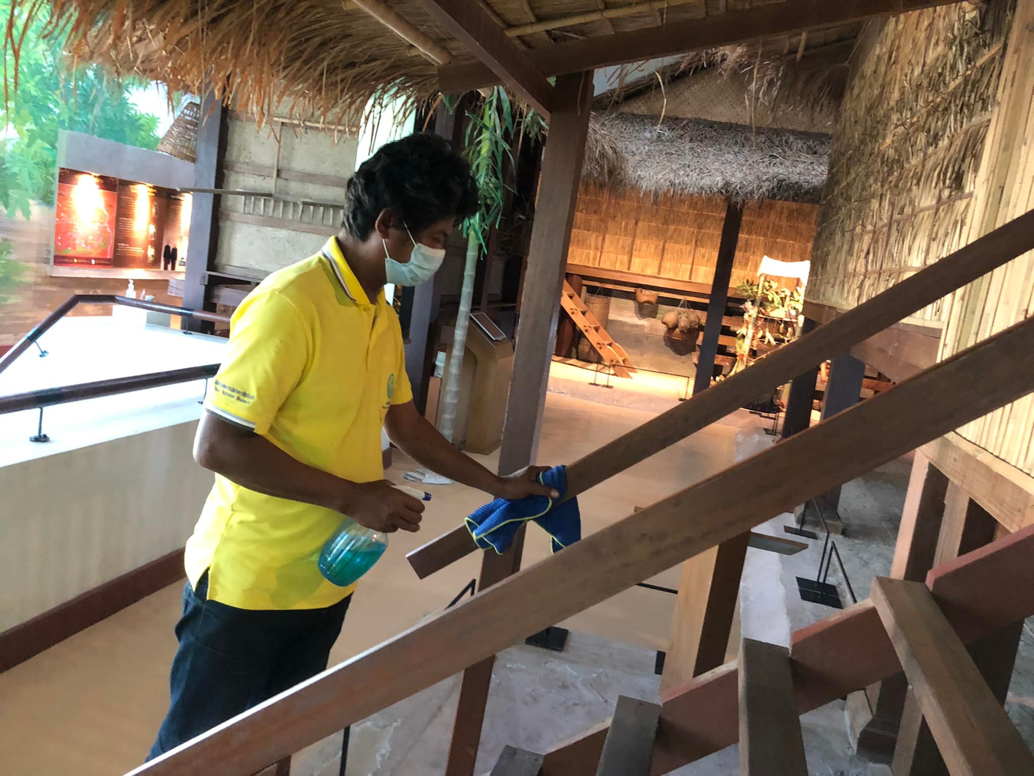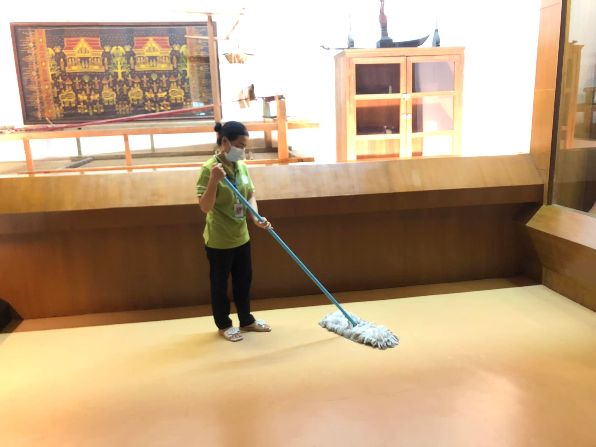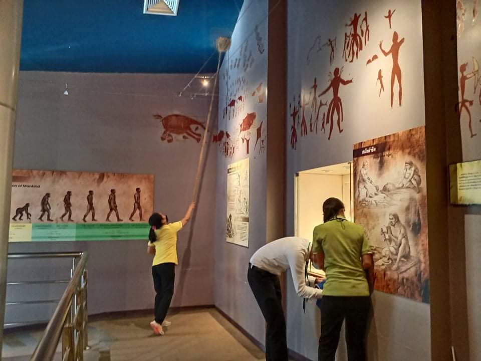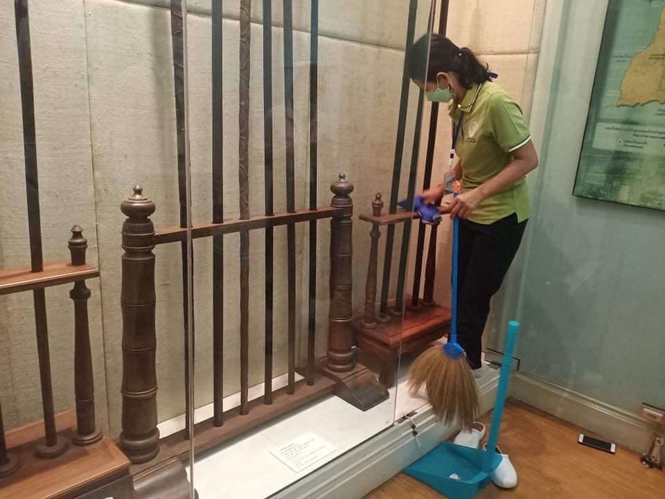 วันอาทิตย์ที่ ๒๑ พฤศจิกายน พ.ศ. ๒๕๖๔ เจ้าหน้าที่พิพิธภัณฑสถานแห่งชาติ สุรินทร์ ร่วมกันทำความสะอาดห้องจัดแสดงพิพิธภัณฑ์ เพื่อฆ่าเชื้อไวรัสโคโรน่า ๒๐๑๙ หลังปิดบริการตามมาตรการป้องกันการแพร่ระบาดของโควิด ๑๙ และเตรียมความพร้อมบริการนักท่องเที่ยวต่อไป