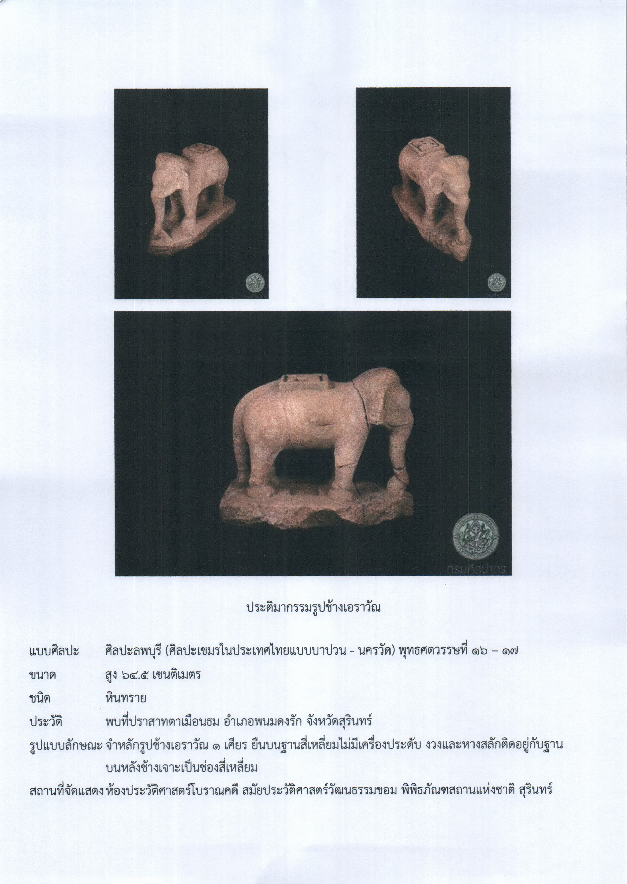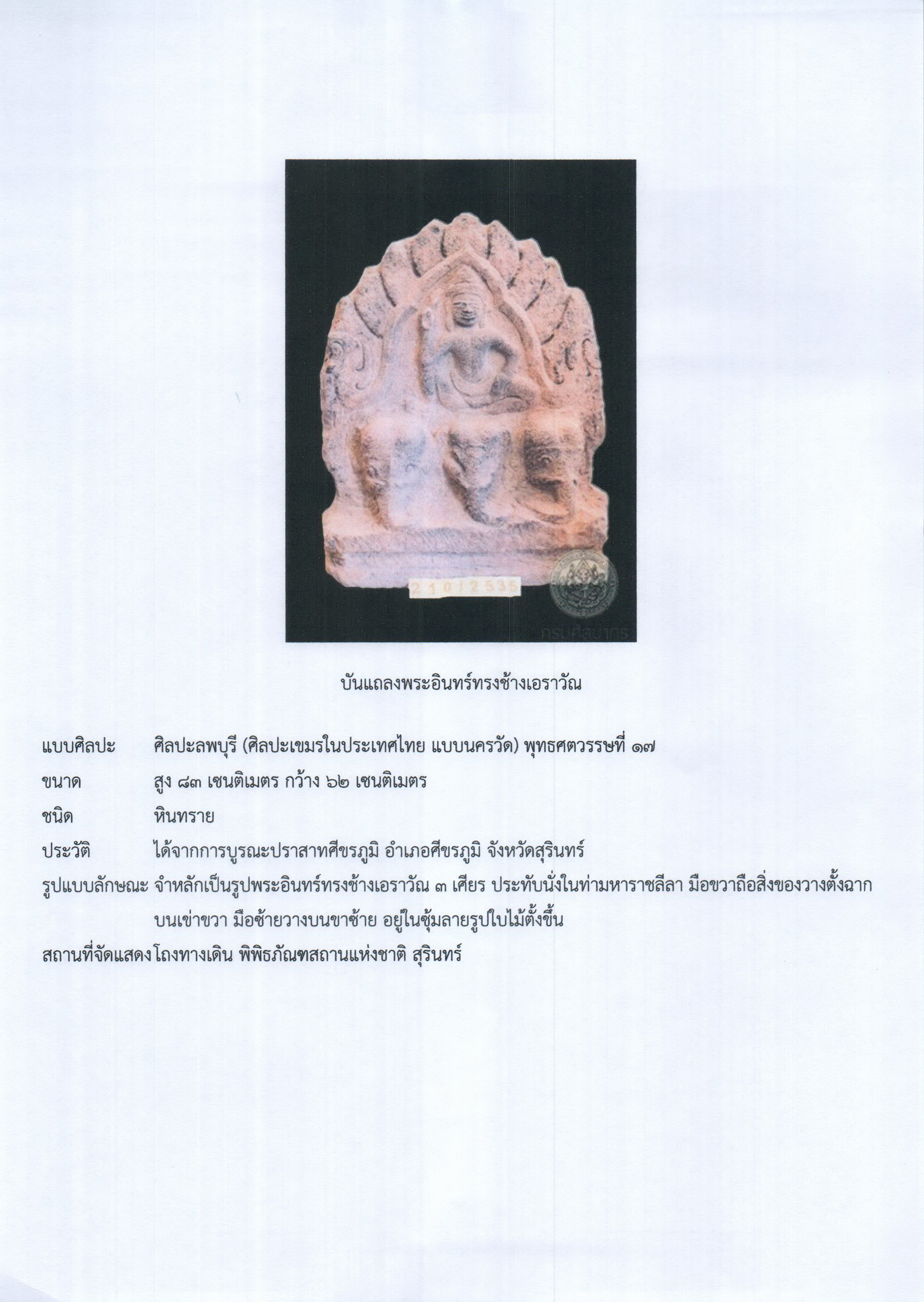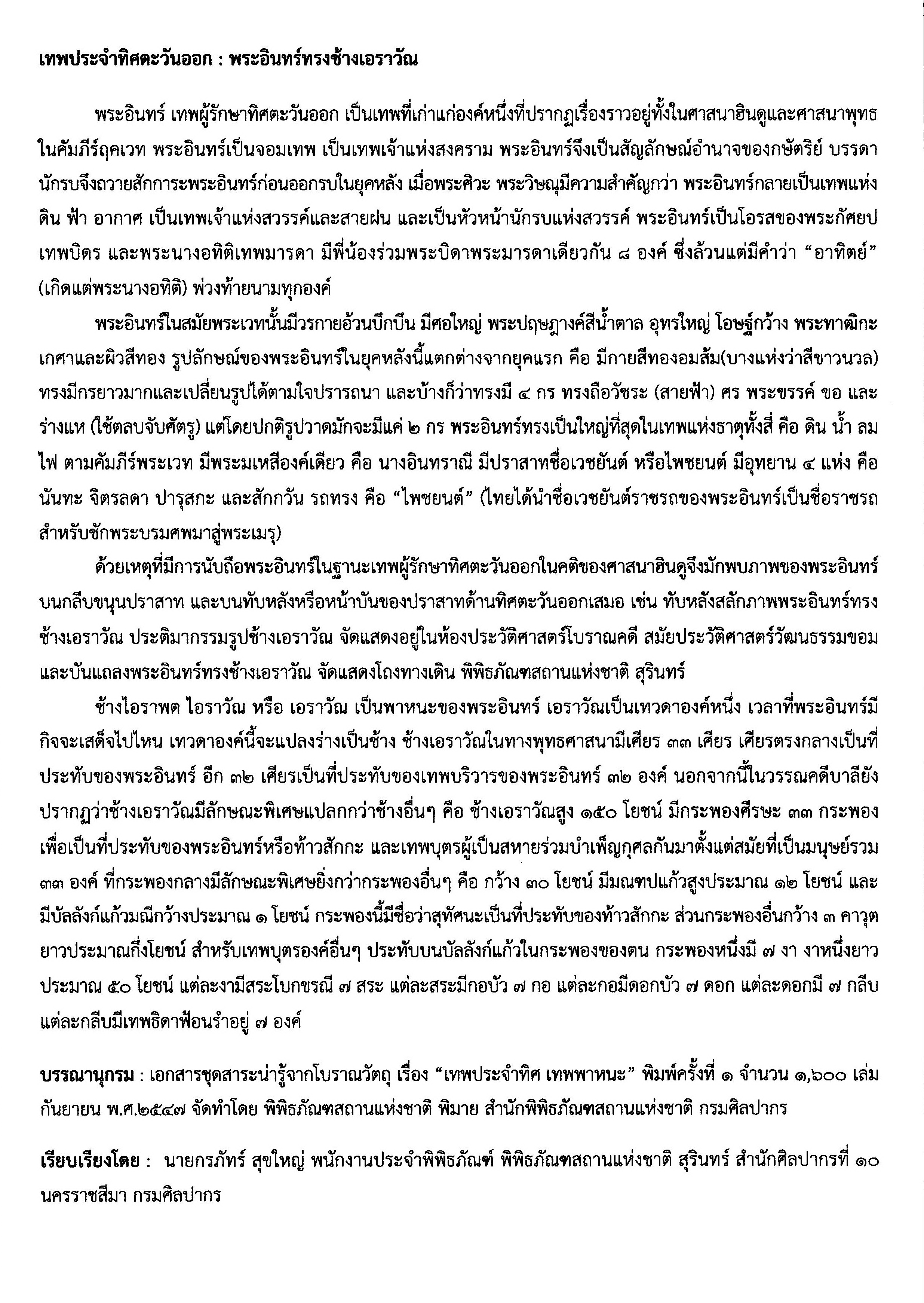พิพิธภัณฑสถานแห่งชาติ สุรินทร์ขอนำเสนอองค์ความรู้ประจำเดือนพฤศจิกายน ๒๕๖๔เรื่อง "เทพประจำทิศตะวันออก : พระอินทร์ทรงช้างเอราวัณ"