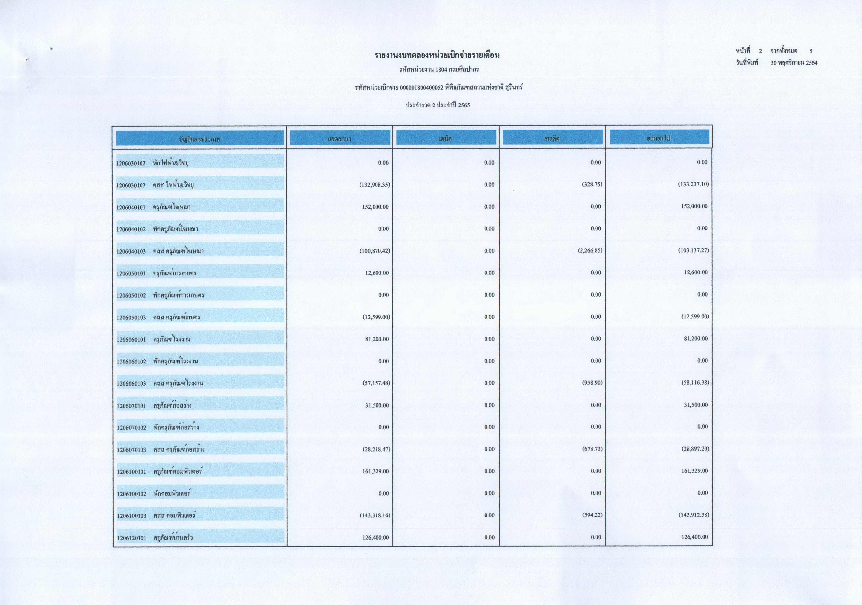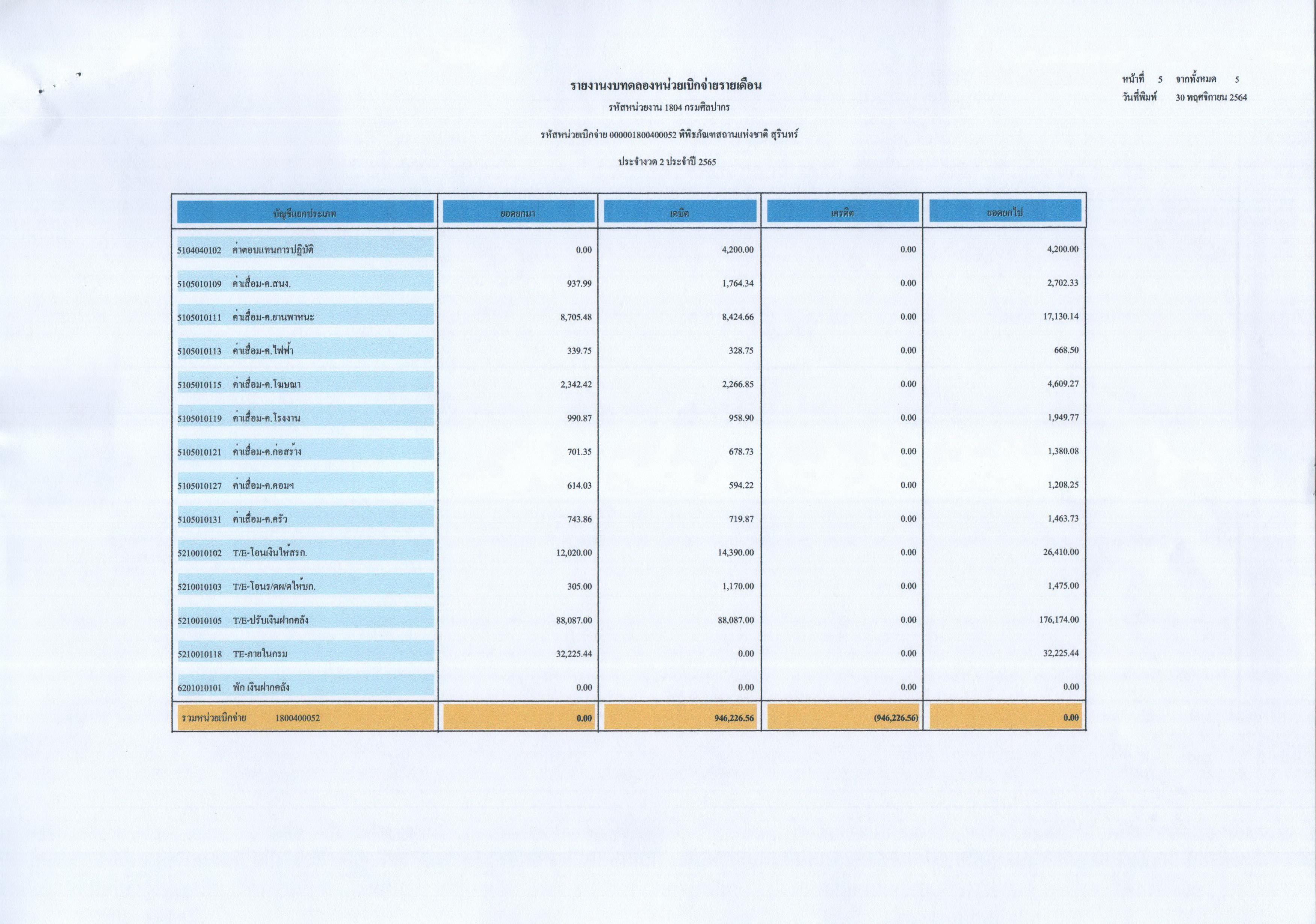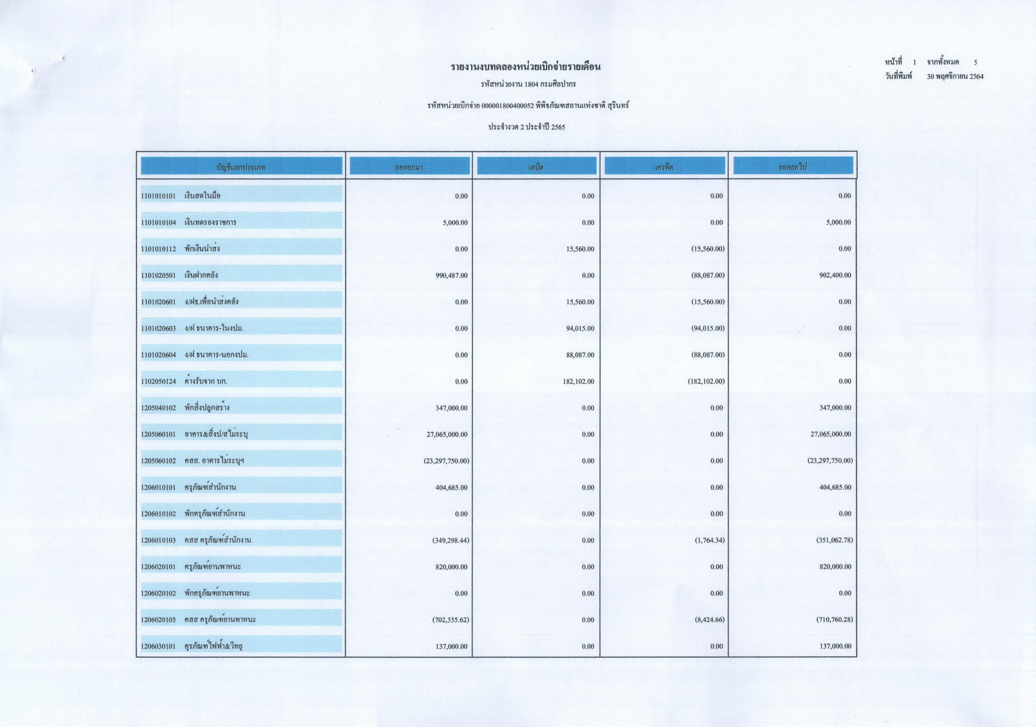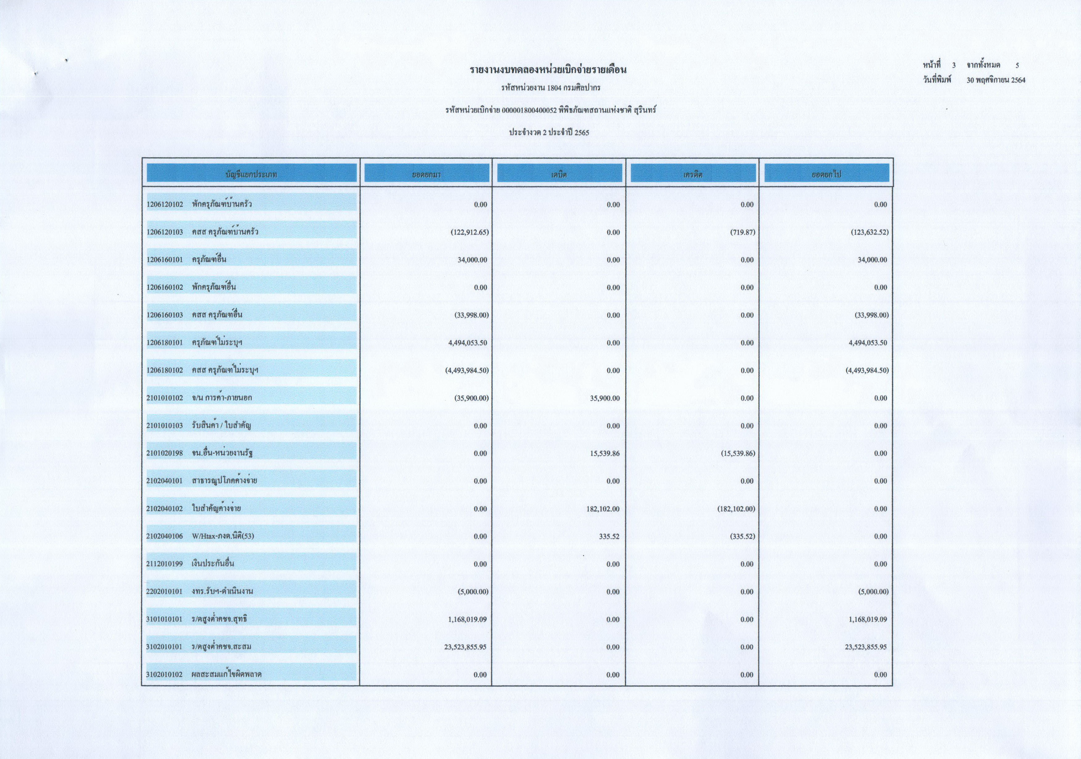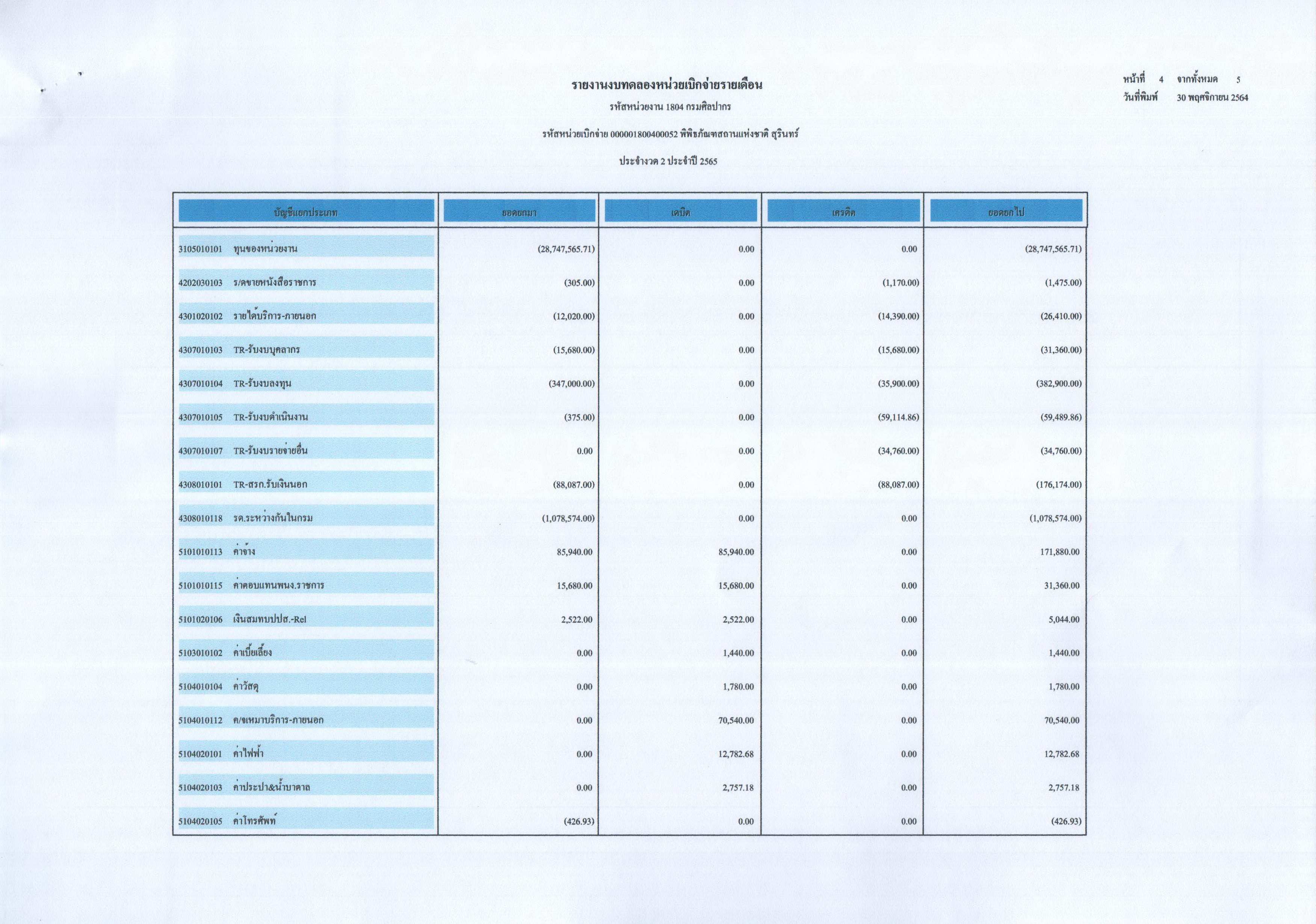 งบทดลองประจำเดือน ธันวาคม ๒๕๖๔