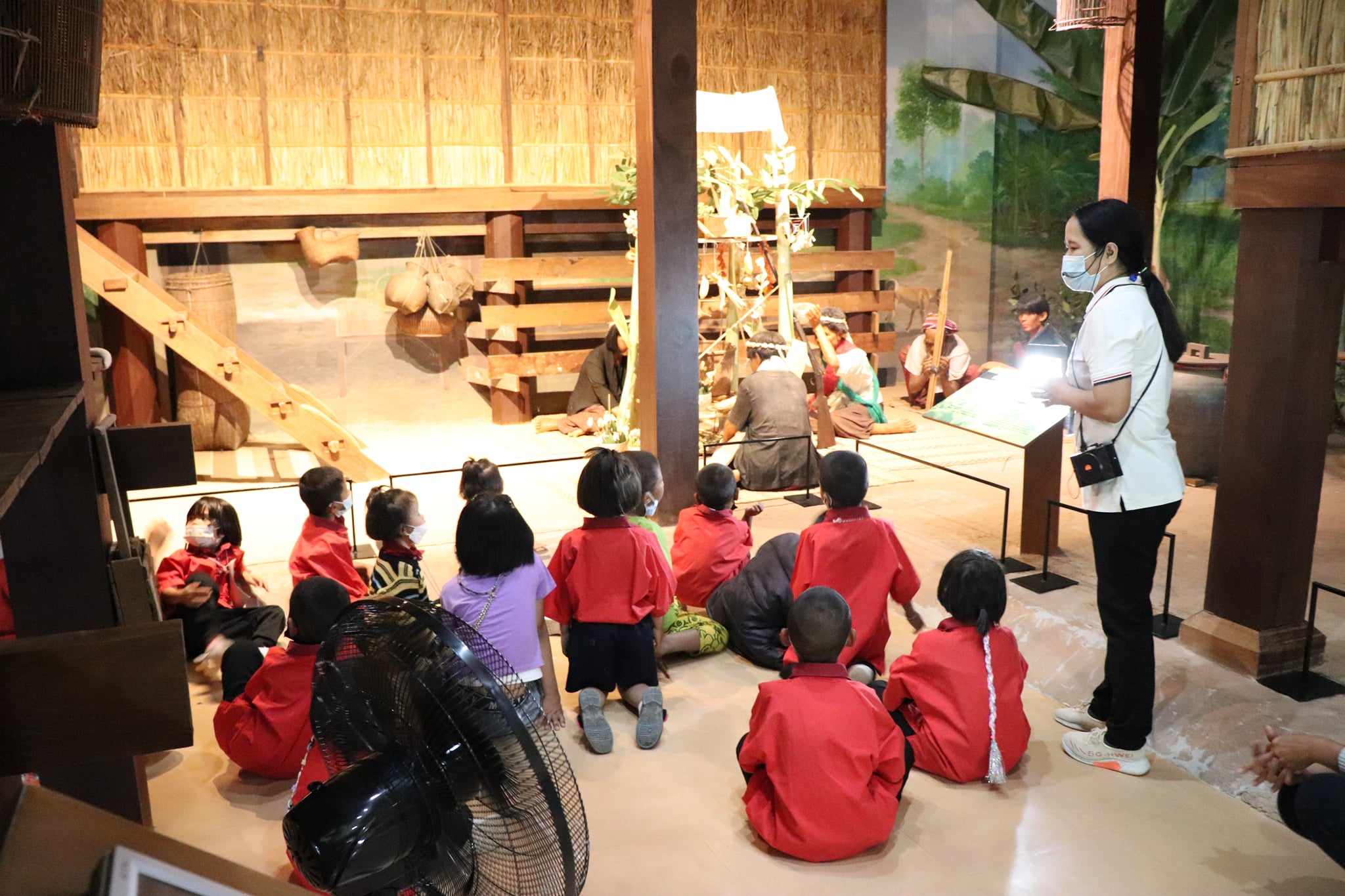 วันพฤหัสบดีที่ ๑๖ ธันวาคม พ.ศ. ๒๕๖๔ เวลา ๑๐.๓๐ น. นักเรียนชั้นอนุบาล ๒ ถึงชั้นประถมศึกษาที่ ๓ โรงเรียนบ้านคูขาด ตำบลหนองแวง อำเภอศรีณรงค์ จังหวัดสุรินทร์ จำนวนนักเรียน ๓๒ คน คุณครู ๒๐ คน เข้าเยี่ยมชมพิพิธภัณฑสถานแห่งชาติ สุรินทร์ โดยแบ่งการบรรยายนำชมออกเป็น ๒ กลุ่มย่อย เพื่อป้องกันการแพร่ระบาดของเชื้อโควิด - ๑๙ โดยมีนายกรภัทร์ สุขใหญ่ และนางศรีสุดา ศรีสด พนักงานประจำพิพิธภัณฑ์ ให้การต้อนรับและบรรยายนำชม