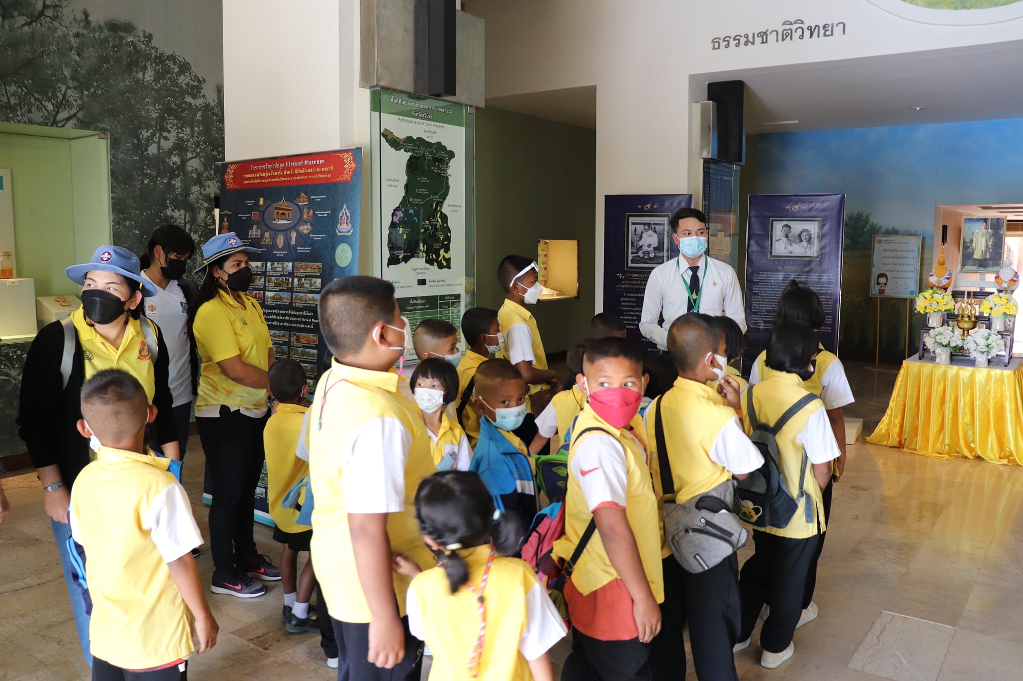 วันพฤหัสบดีที่ ๒๓ ธันวาคม พ.ศ. ๒๕๖๔ เวลา ๑๔.๓๐ น. นักเรียนชั้นอนุบาล ถึงชั้นประถมศึกษาที่ ๖ โรงเรียนบ้านหนองยาว ตำบลสมุด อำเภอปราสาท จังหวัดสุรินทร์ เข้าเยี่ยมชมนิทรรศการถาวรพิพิธภัณฑสถานแห่งชาติ สุรินทร์ โดยแบ่งการเข้าชมเป็นกลุ่มย่อยเพื่อป้องกันการแพร่ระบาดของเชื้อโควิด - ๑๙ มีนายกรภัทร์ สุขใหญ่ พนักงานประจำพิพิธภัณฑ์ และนักศึกษาฝึกประสบการณ์วิชาชีพ เป็นผู้บรรยายนำชม