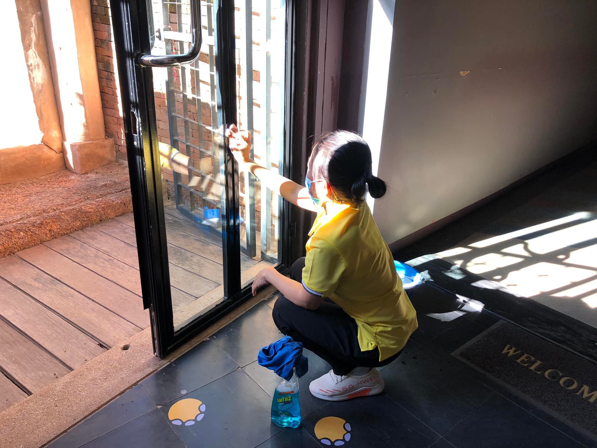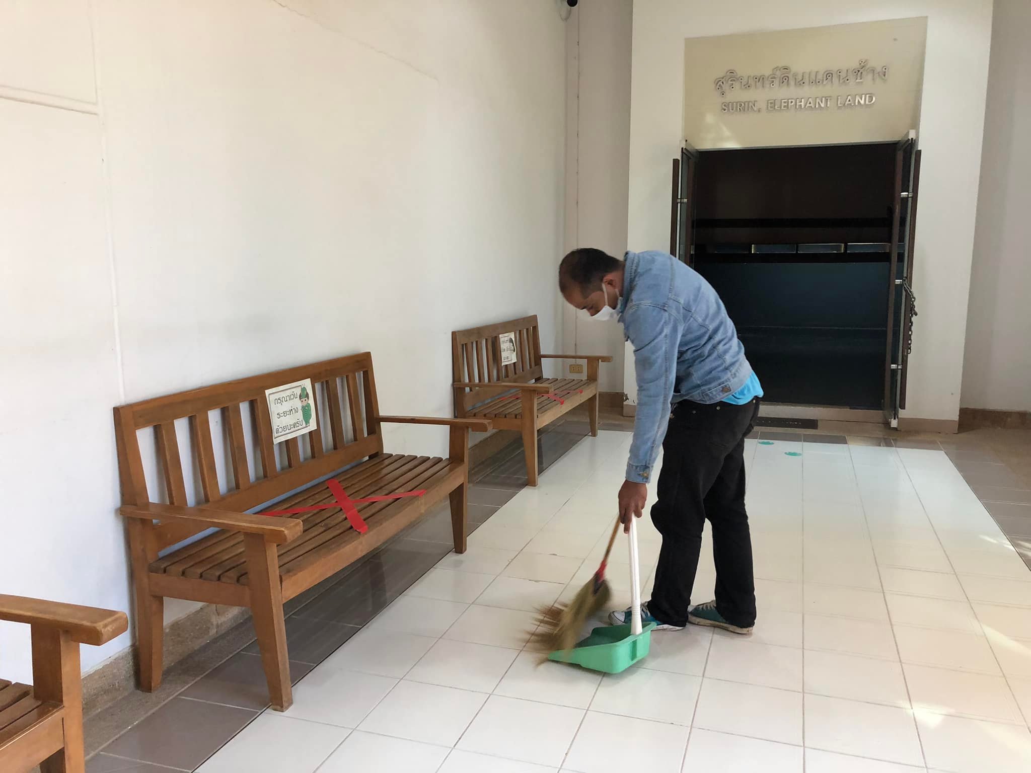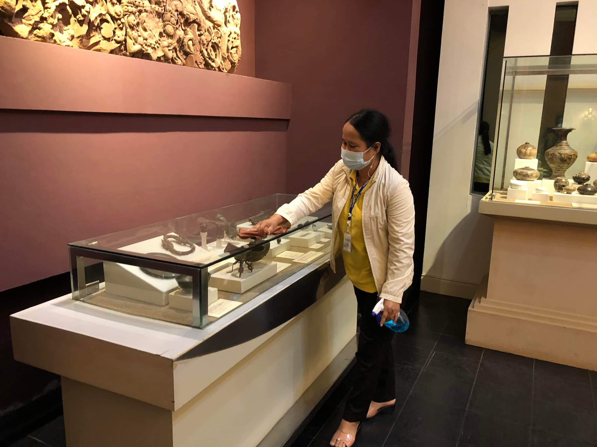 วันอาทิตย์ที่ ๙ มกราคม พ.ศ. ๒๕๖๕ เจ้าหน้าที่พิพิธภัณฑสถานแห่งชาติ สุรินทร์ หลังปิดให้บริการนักท่องเที่ยวได้ทำความสะอาดห้องจัดแสดงเพื่อฆ่าเชื้อ และเพื่อเตรียมความพร้อมบริการนักท่องเที่ยวในวันต่อไป