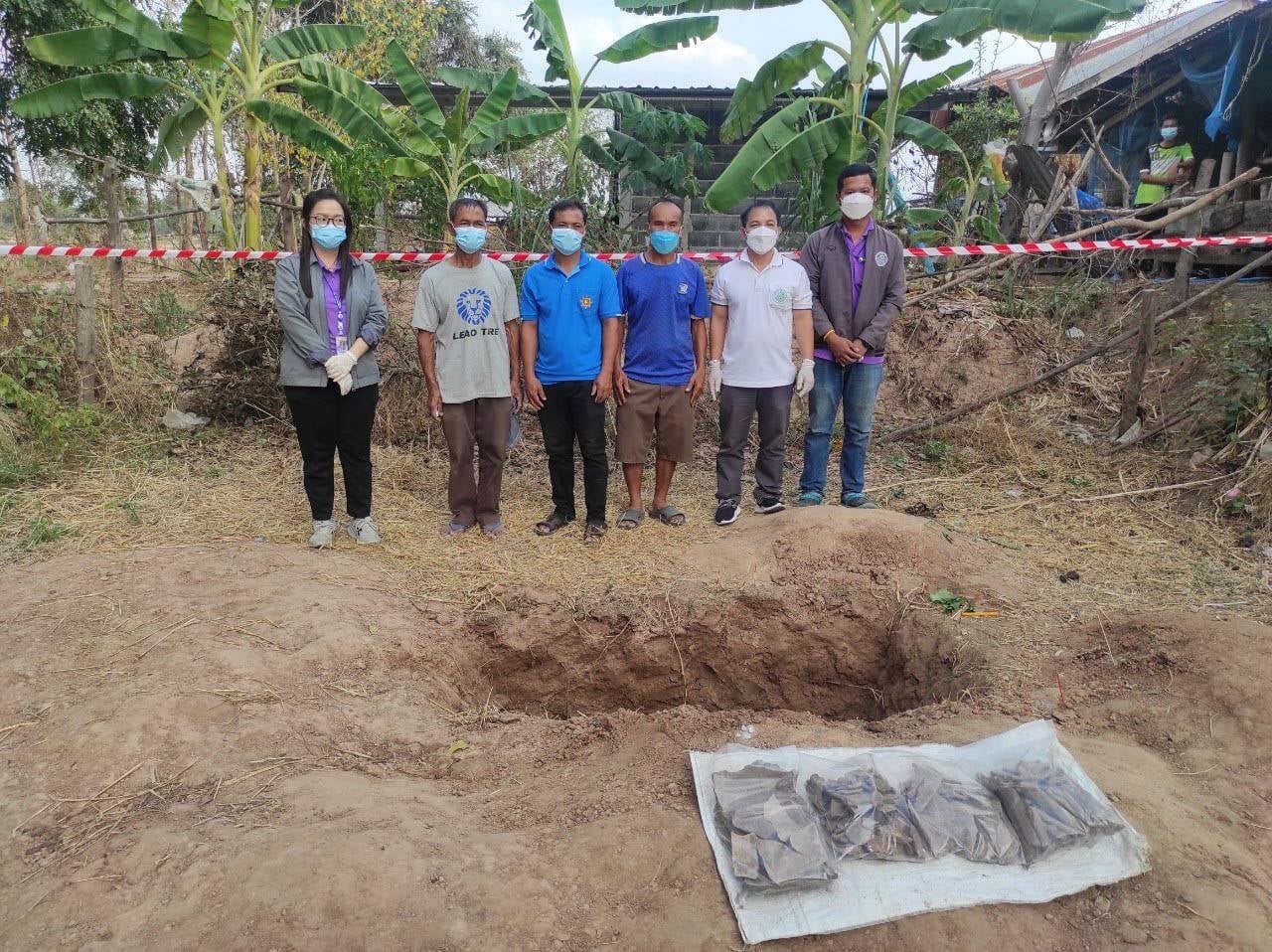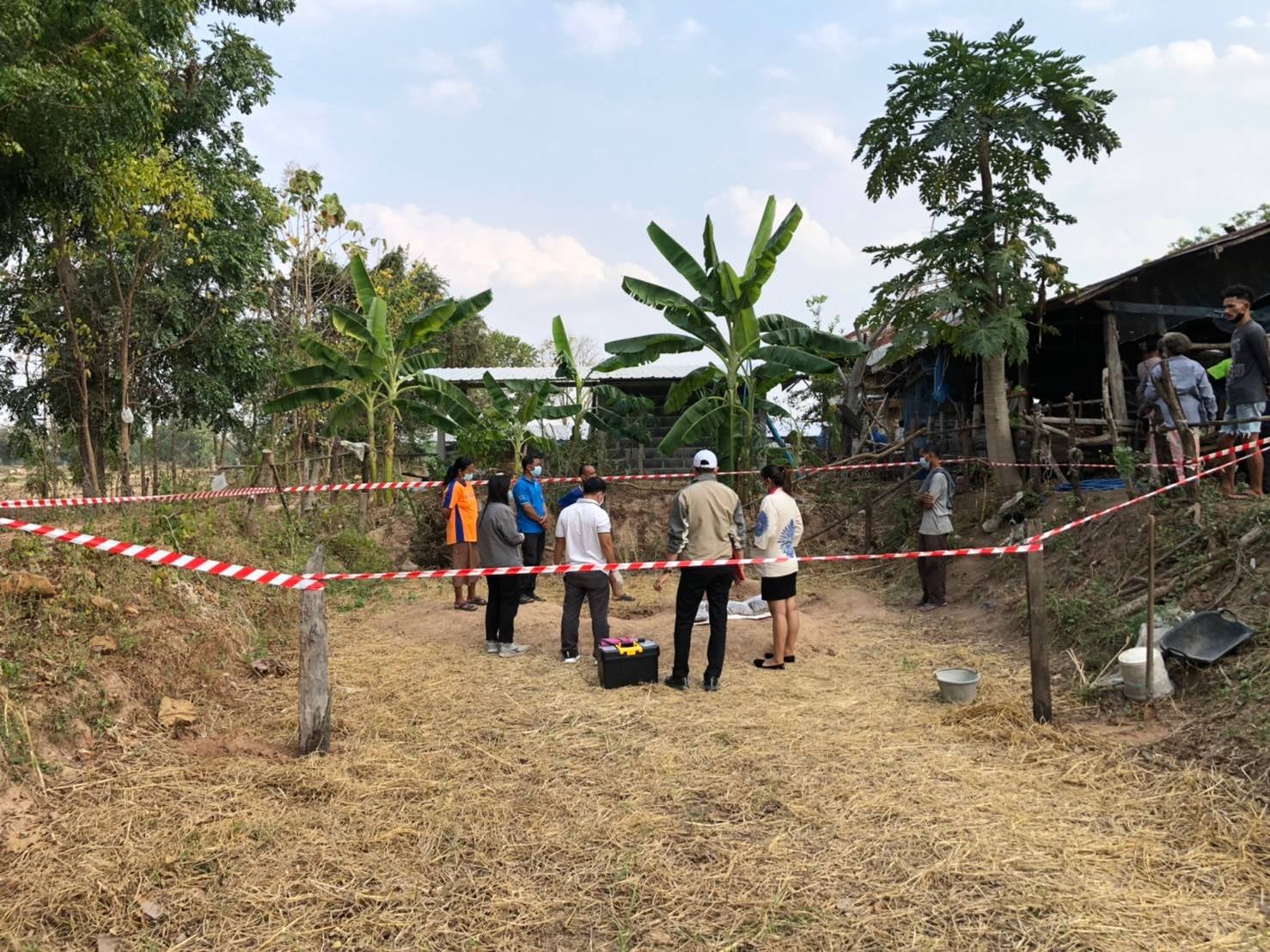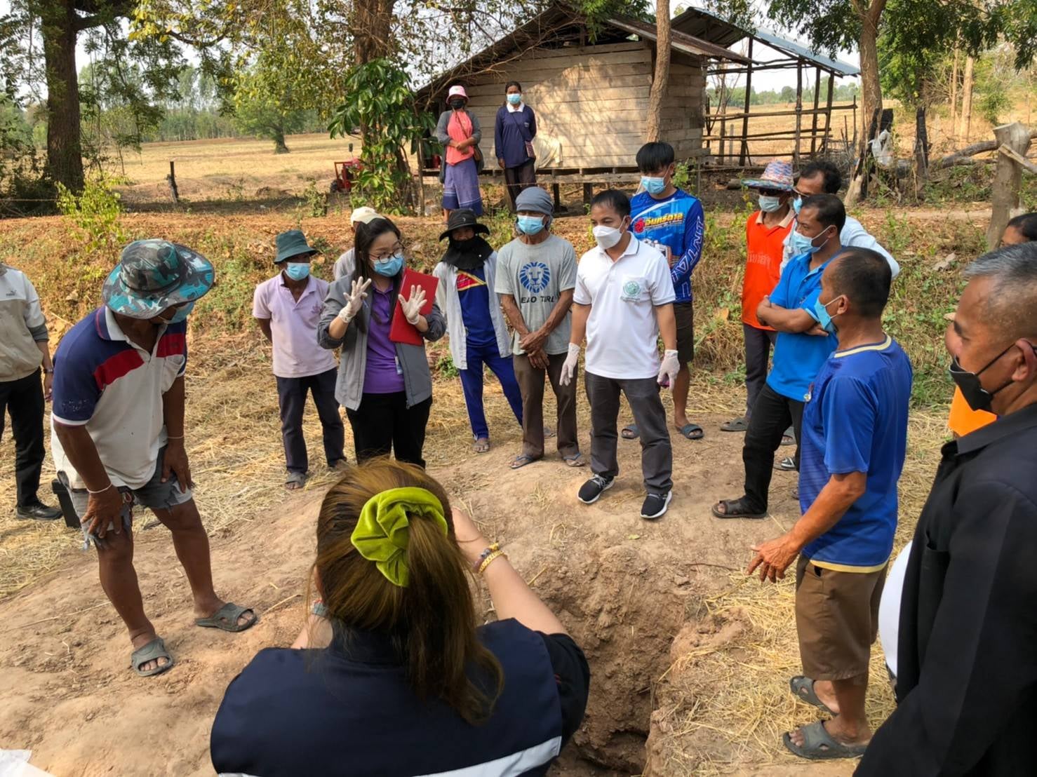 การนี้ พิพิธภัณฑสถานแห่งชาติ สุรินทร์ โดยนางสาวกมลรัตน์ ชวนสบาย ตำแหน่ง ภัณฑารักษ์ปฏิบัติการ และนายกรภัทร์ สุขใหญ่ ตำแหน่ง พนักงานประจำพิพิธภัณฑ์ พร้อมเจ้าหน้าที่ ได้ประสานและเข้าดำเนินการตรวจสอบพื้นที่ดังกล่าว เมื่อวันที่ ๒๙ มกราคม ๒๕๖๕ พบภาชนะดินเผา จำนวน ๓ ใบ สันนิษฐานเบื้องต้นว่าเป็นภาชนะดินเผาเนื้อดิน (Earthen Ware) สมัยก่อนประวัติศาสตร์ตอนปลาย อายุประมาณ ๒,๐๐๐-๑,๕๐๐ ปีมาแล้ว ภายในพบชิ้นส่วนโครงกระดูกและฟัน ทั้งนี้ พิพิธภัณฑสถานแห่งชาติ สุรินทร์ ได้แจ้งระเบียบและขั้นตอนการดำเนินงานทางโบราณคดีเบื้องต้นแก่เจ้าของพื้นที่ ผู้ใหญ่บ้านและประชาชนเพื่อทราบ พร้อมได้กั้นเขตพื้นที่ดังกล่าว และจะดำเนินการประสานกลุ่มโบราณคดี สำนักศิลปากรที่ ๑๐ นครราชสีมา เพื่อตรวจสอบ ต่อไป