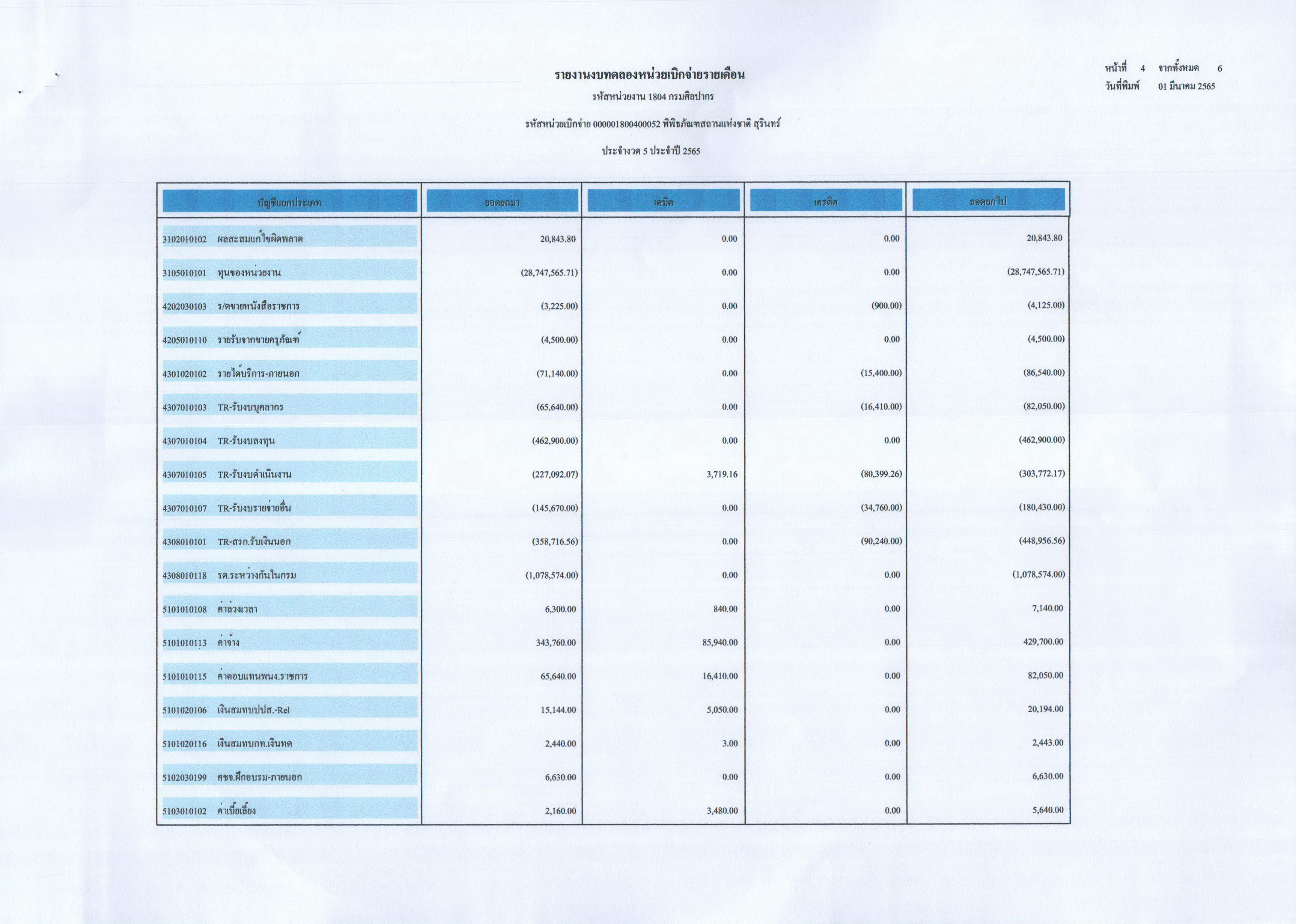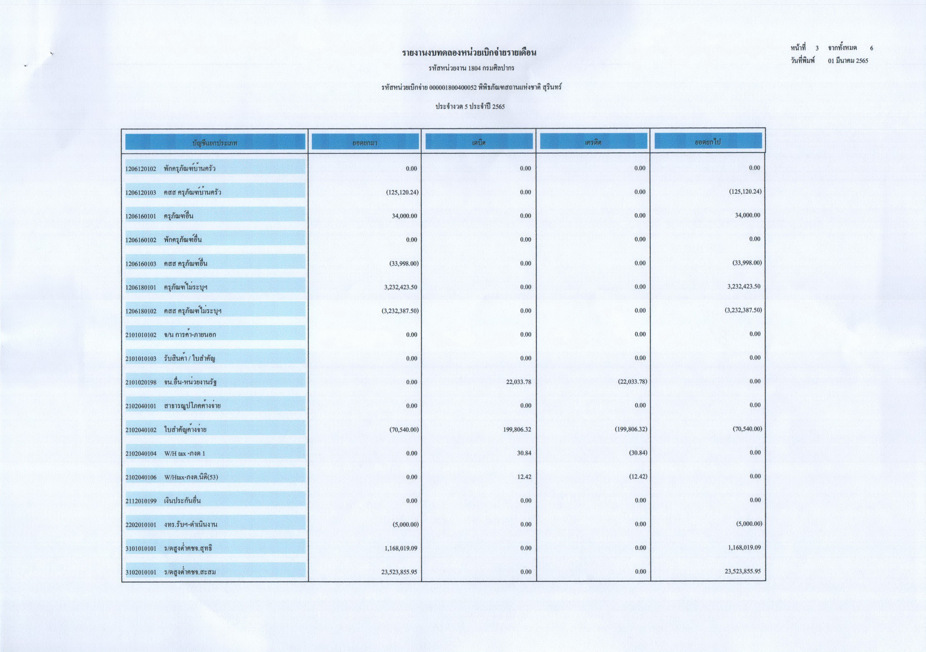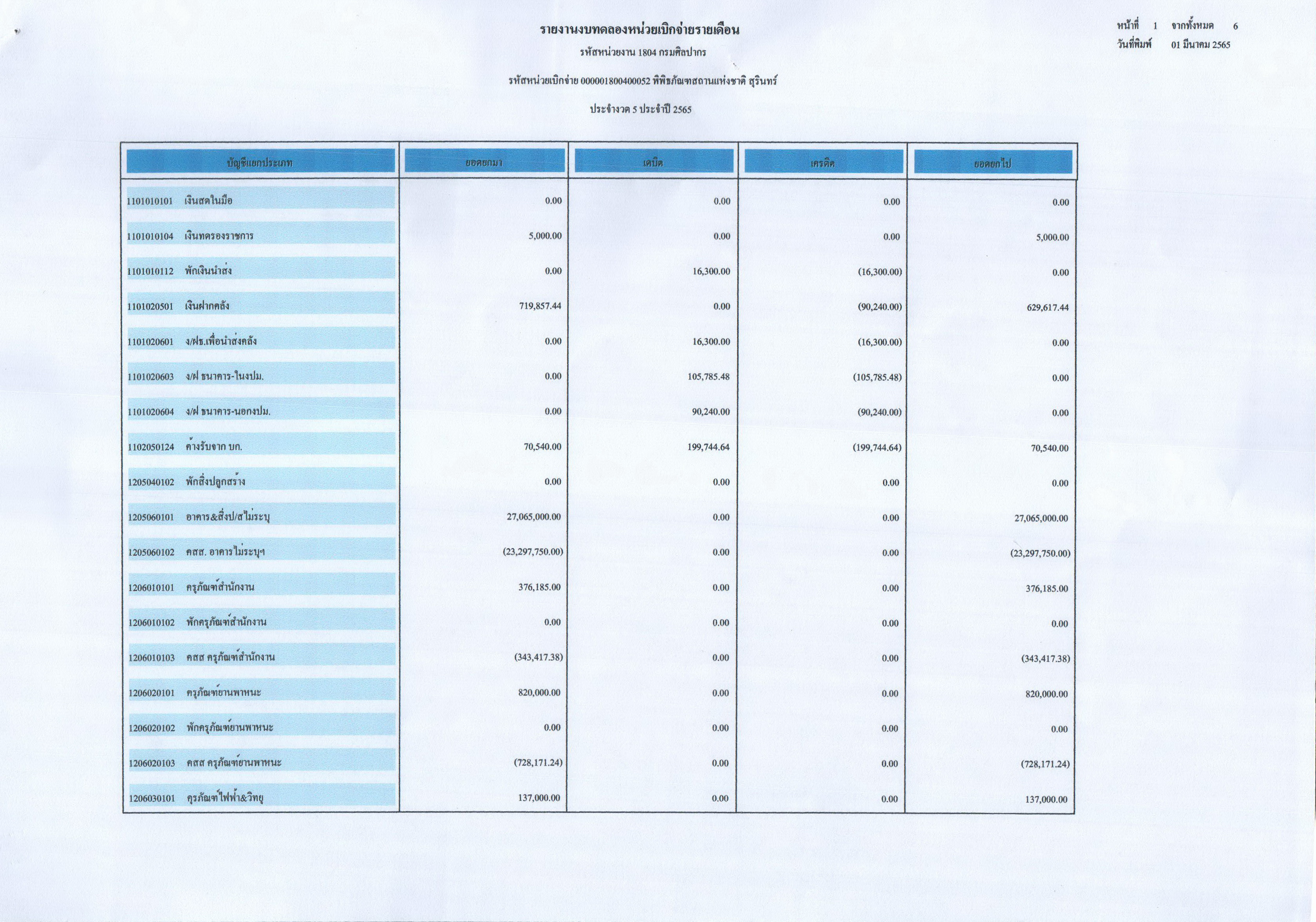 รายงานงบทดลองประจำเดือนกุมภาพันธ์ พ.ศ. ๒๕๖๕