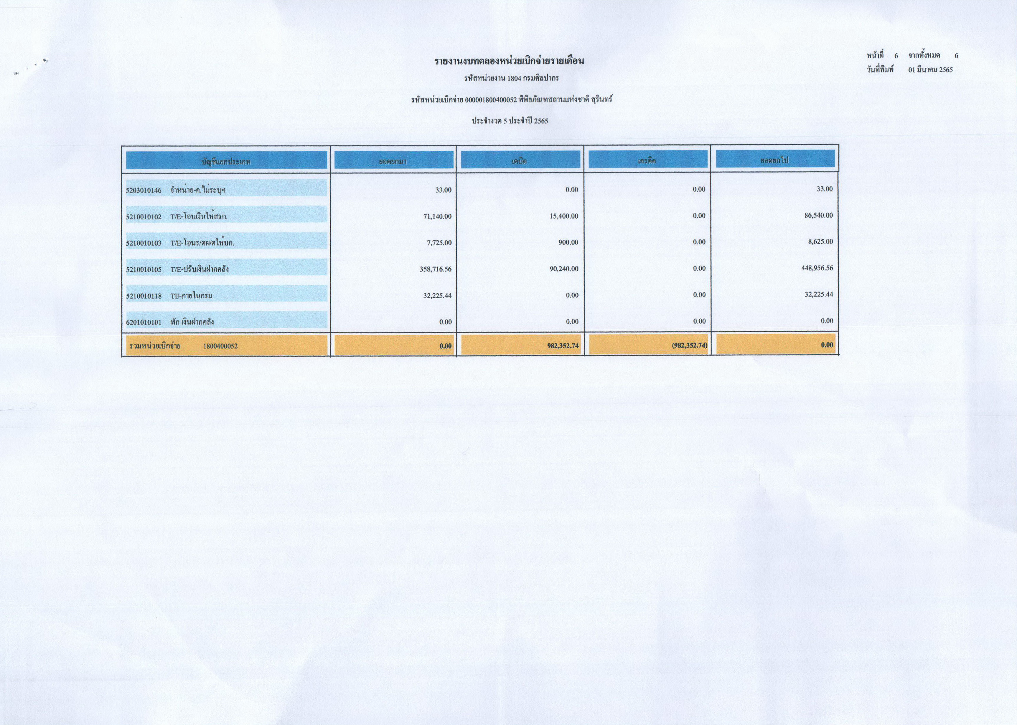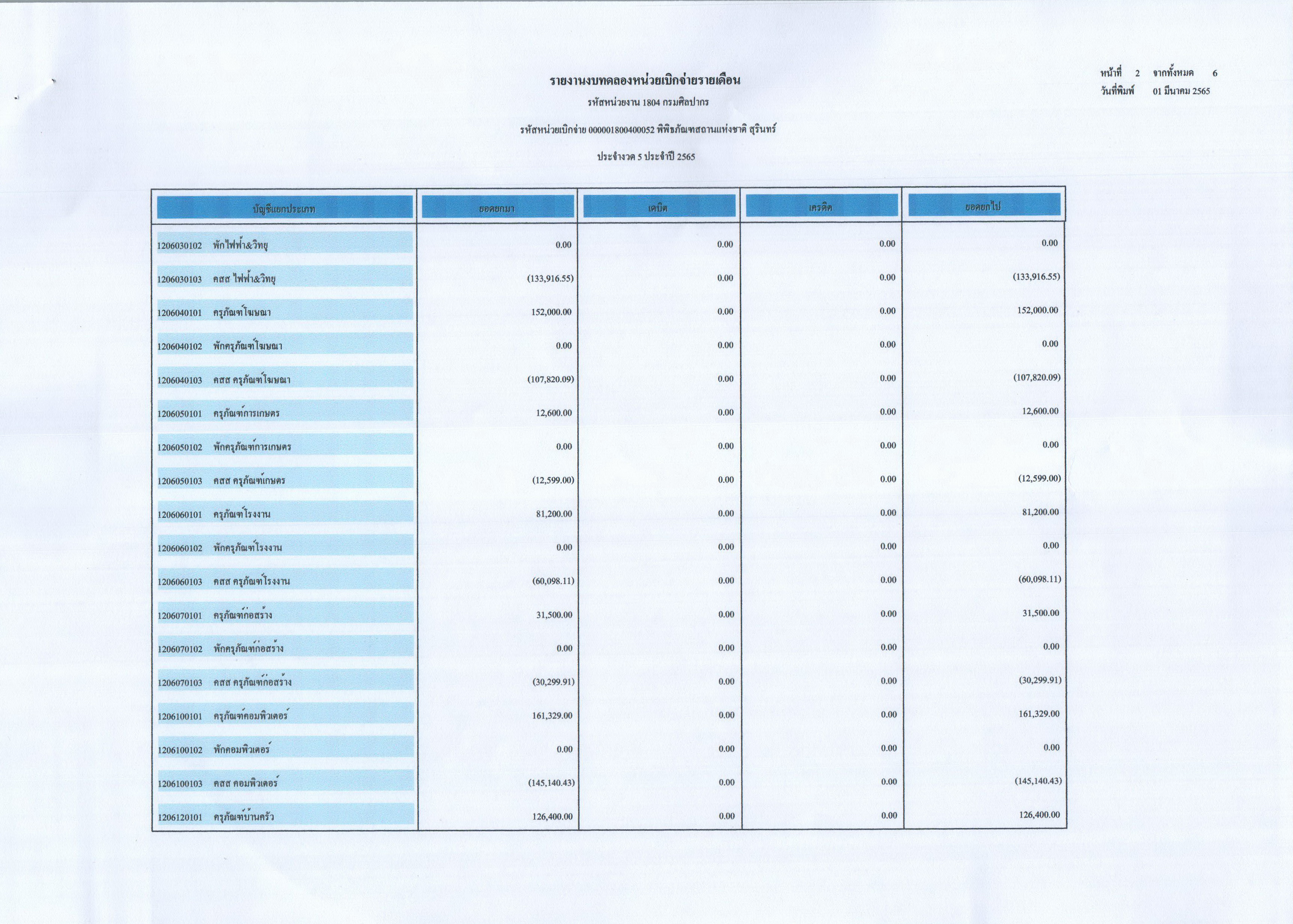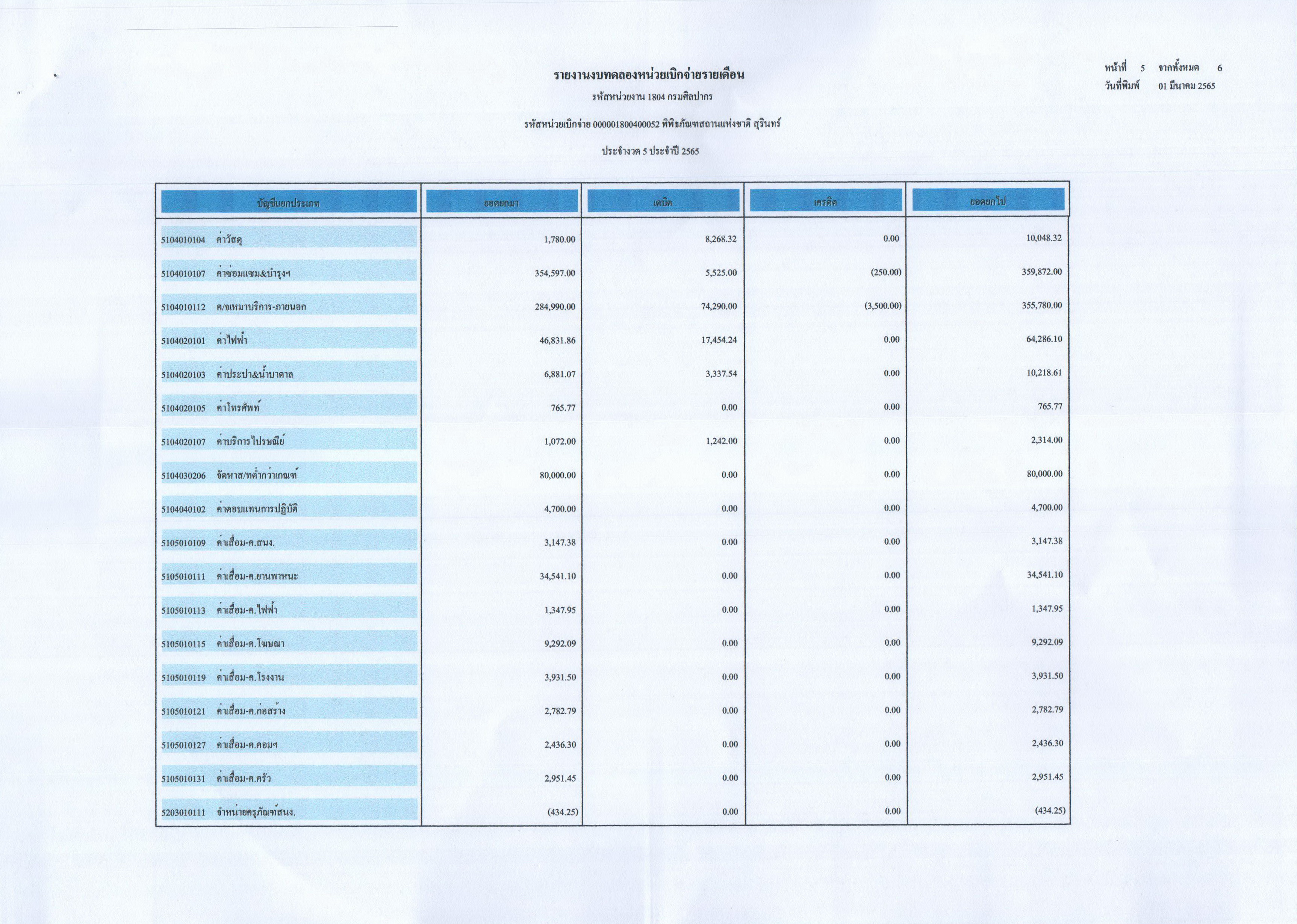 รายงานงบทดลองประจำเดือนกุมภาพันธ์ พ.ศ. ๒๕๖๕