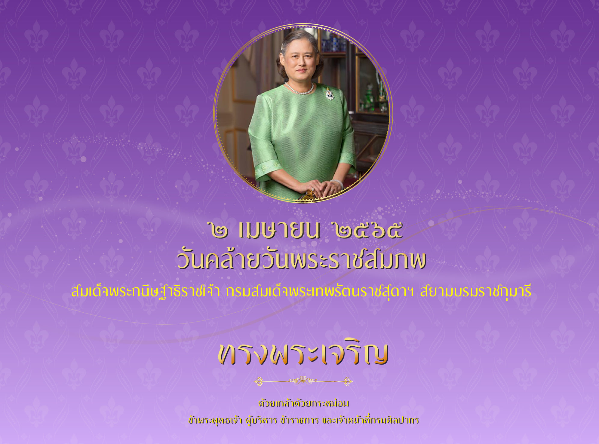 เนื่องในวโรกาสวันคล้ายวันพระราชสมภพ ๒ เมษายน พุทธศักราช ๒๕๖๕ ขอเฉลิมพระเกียรติสมเด็จพระกนิษฐาธิราชเจ้า กรมสมเด็จพระเทพรัตนราชสุดาฯ สยามบรมราชกุมารี องค์เอกอัครราชูปถัมภก มรดกวัฒนธรรมไทย พระผู้ทรงเป็นมิ่งขวัญแห่งกรมศิลปากร