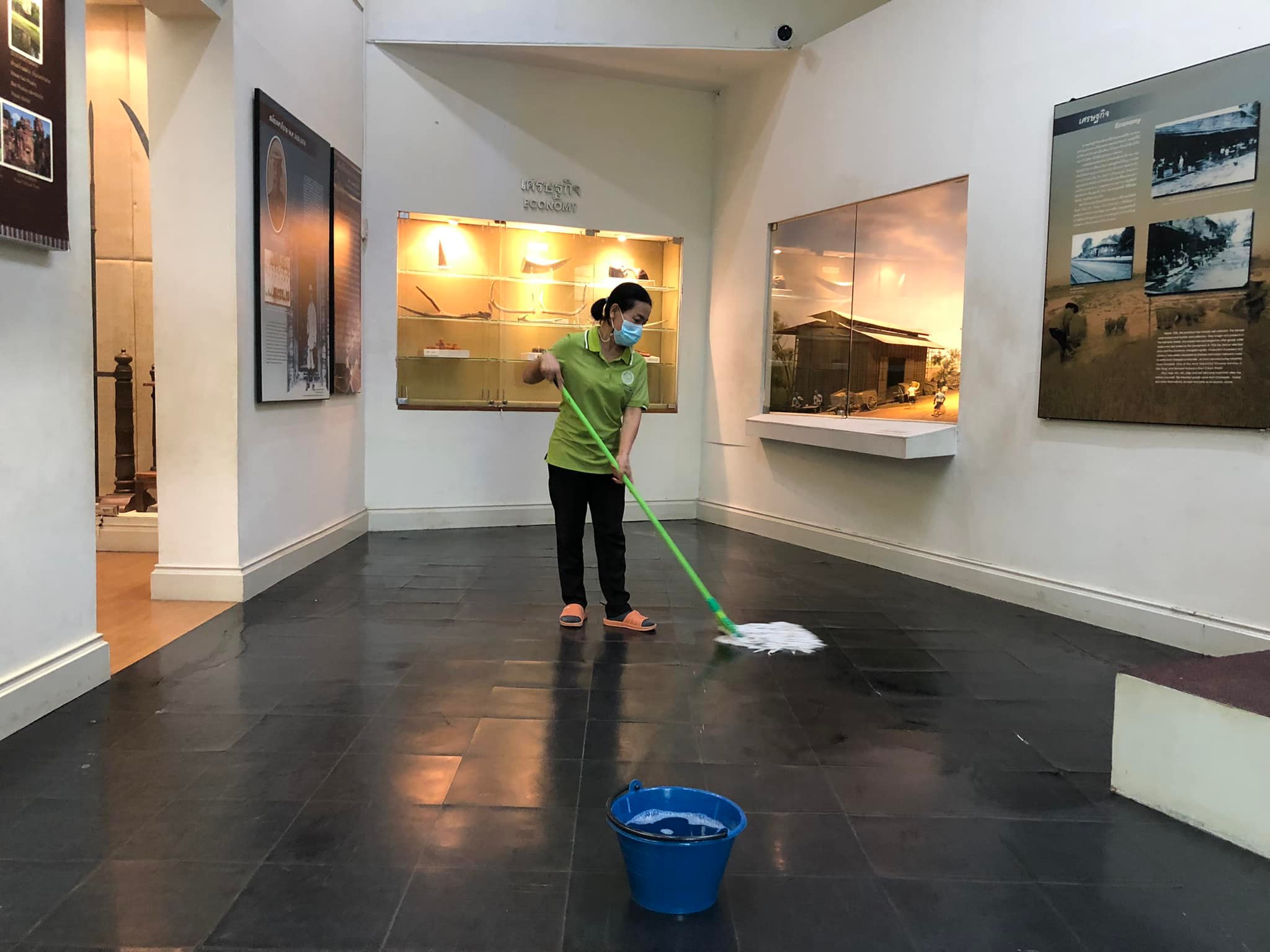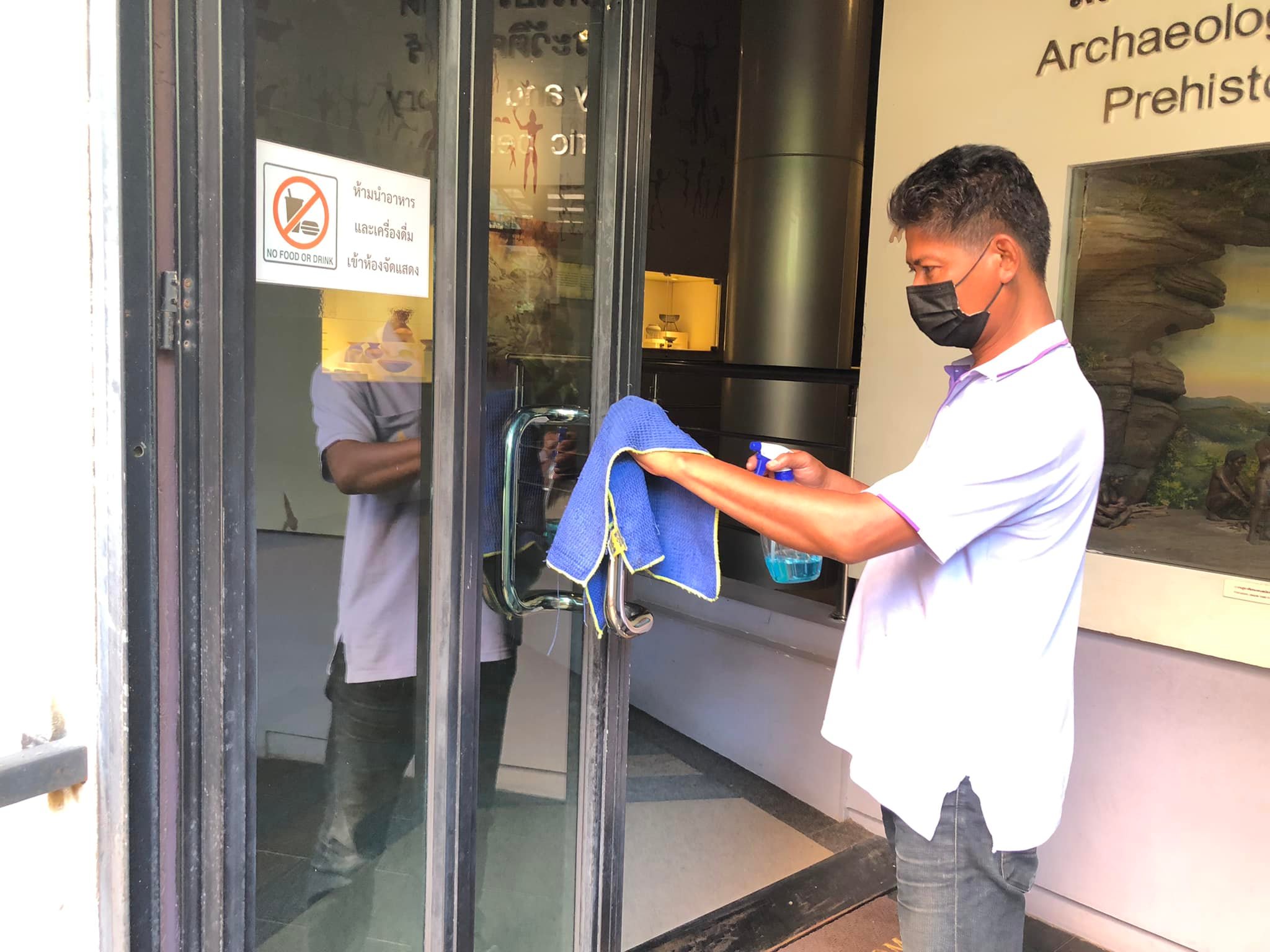 กิจกรรม Cleaning Day ประจำวันอาทิตย์ที่ ๘ พฤษภาคม พ.ศ. ๒๕๖๕ เจ้าหน้าที่พิพิธภัณฑสถานแห่งชาติ สุรินทร์ ร่วมกันทำความสะอาดห้องจัดแสดงนิทรรศการเพื่อฆ่าเชื้อไวรัสและเตรียมความพร้อมให้บริการนักท่องเที่ยวต่อไป