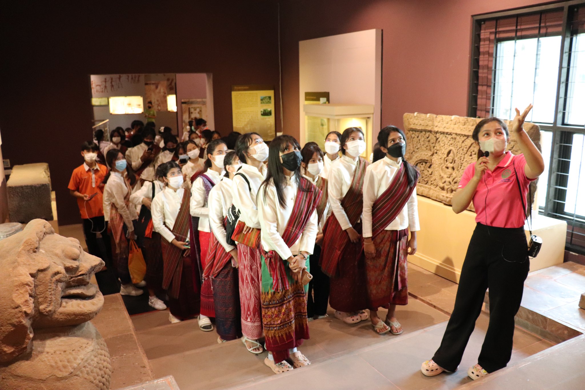 วันอาทิตย์ที่ ๒๖ มิถุนายน พ.ศ. ๒๕๖๕ เวลา ๑๑.๐๐ น. นักเรียนชั้นมัธยมศึกษาปีที่ ๕ โรงเรียนประสาทวิทยาคาร ตำบลกังแอน อำเภอปราสาท จังหวัดสุรินทร์ จำนวน ๘๐ คน คุณครูจำนวน ๑๐ คน เข้าเยี่ยมชมพิพิธภัณฑสถานแห่งชาติ สุรินทร์ โดยแบ่งการบรรยายนำชมออกเป็น ๒ กลุ่มย่อย เพื่อป้องกันการแพร่ระบาดของเชื้อโควิด - ๑๙ อย่างเคร่งครัด โดยมีนางสาวกมลรัตน์ ชวนสบาย ภัณฑารักษ์ปฏิบัติการ และนางสาวอาภาภรณ์ เปล่งปลั่งศรี นักวิชาการวัฒนธรรม ให้การต้อนรับและบรรยายนำชม